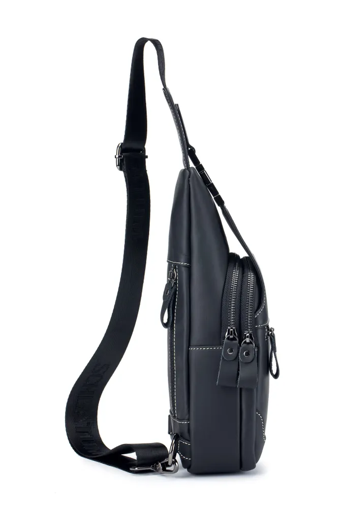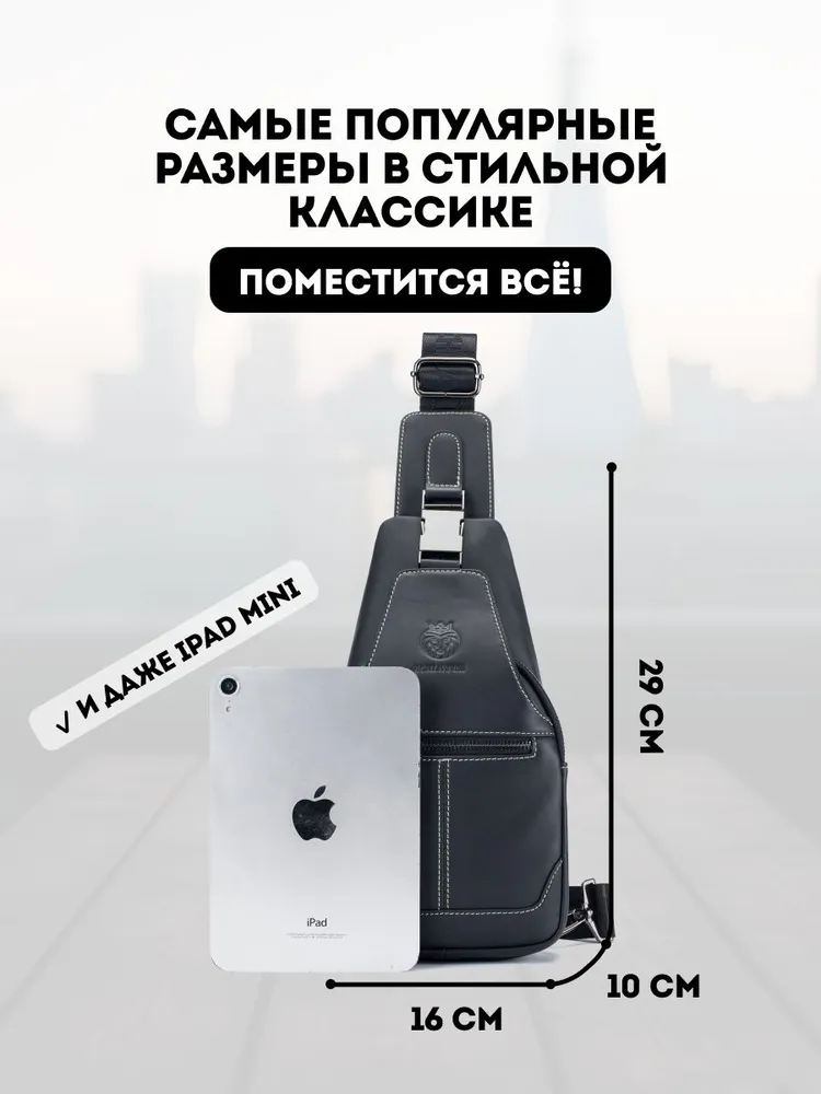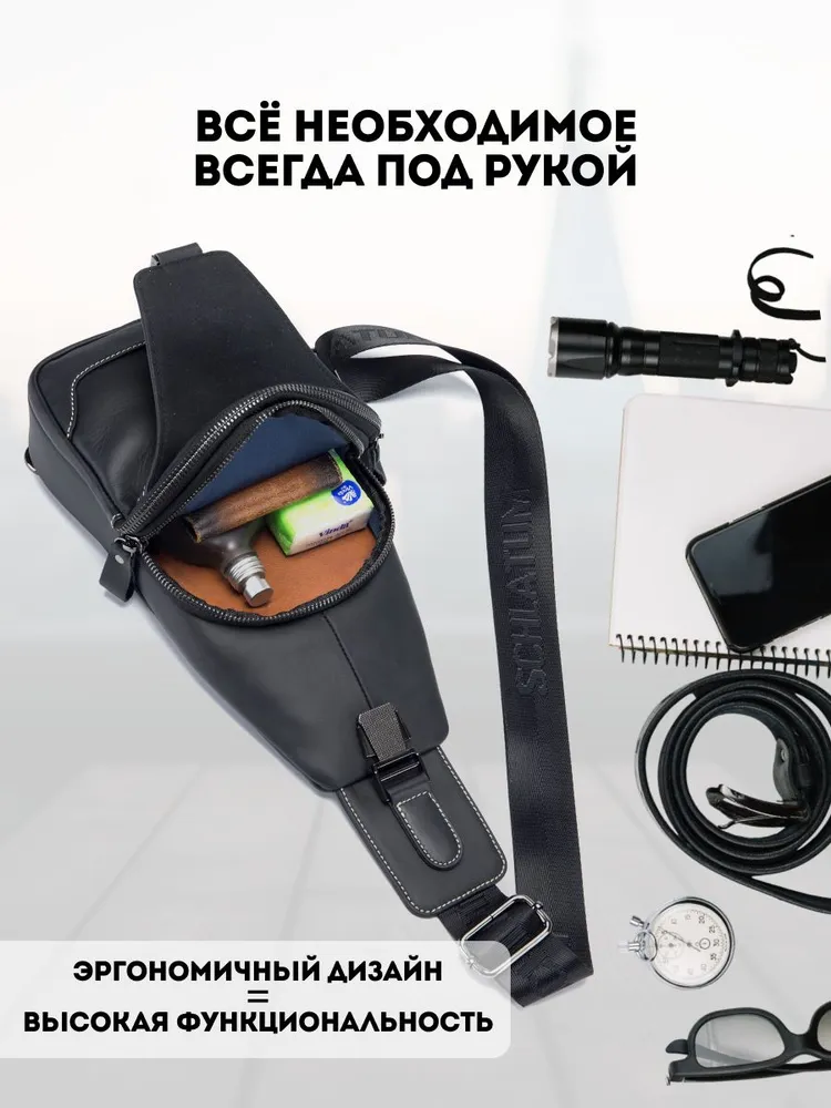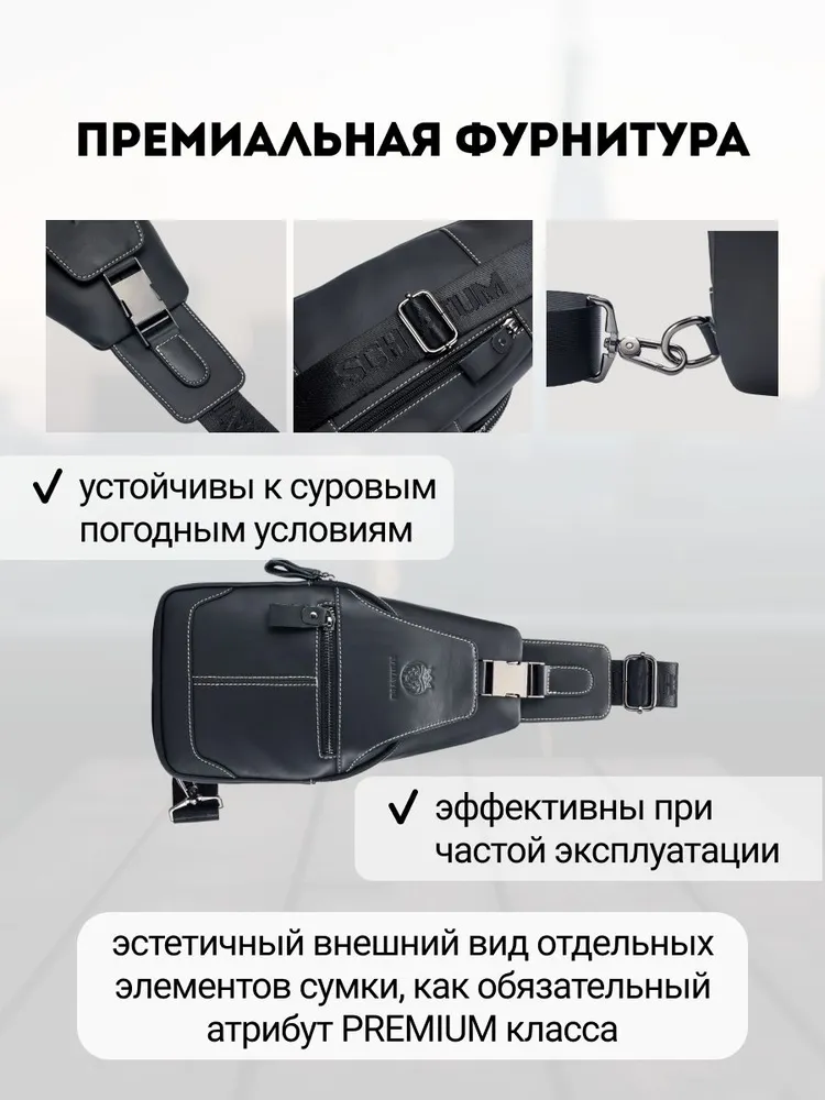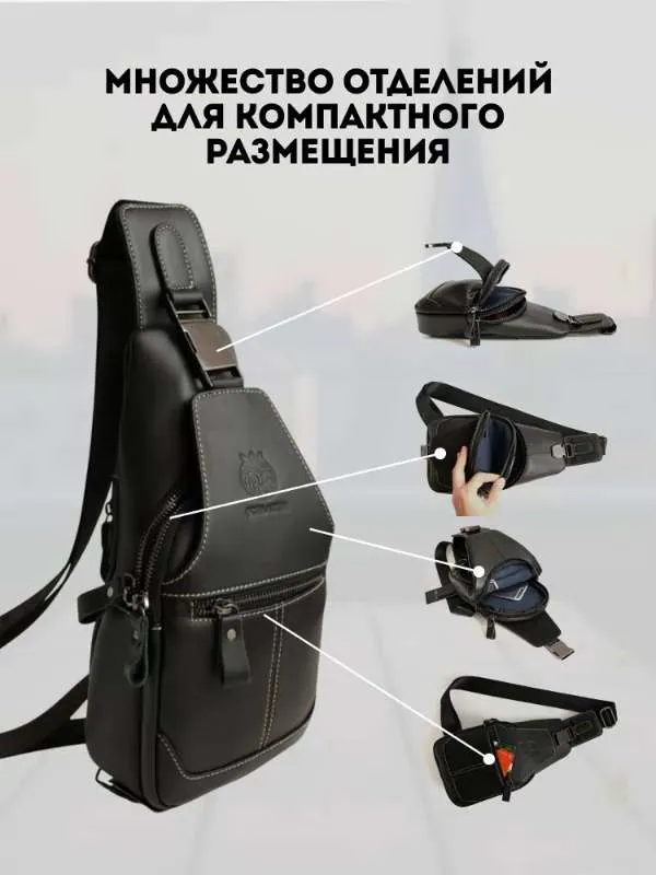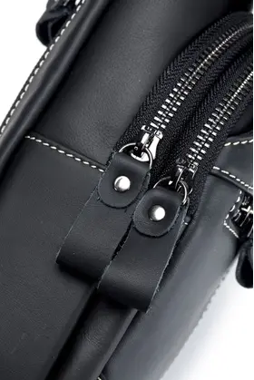 Премиальное качество / Телячья кожа / Сумка выполнена из премиальной телячьей кожи экстра выделки, что обеспечивает: 1. Высокую износостойкость и прочность; 2. Мягкость текстуры и уникальный рисунок зерна; 4. Глубокий и насыщенный цвет; 4. Дышащую поверхность, устойчивую к суровым погодным условиям; 5. Современный и практичный дизайн, максимально функциональный в эксплуатации. Высокая функциональность в классическом исполнении 1. 4е внешних кармана для быстрого доступа во все отделения; 2. Железные молнии и карабины для частой эксплуатации и эстетичного внешнего вида; 3. Длинный (110 см.) ремень для любого роста. Премиальная фурнитура Металлические карабины и железные молнии устойчивы к суровым погодным условиям. Эффективны при частой эксплуатации. Эстетичный внешнего вид отдельных элементов сумки, как обязательный атрибут вещей premium класса. Материал подкладки / Оксфорд / Стильный подклад сумки - как отдельное произведение искусства. Сам "Оксфорд" - это ткань, которая завоевала популярность благодаря своей прочности, долговечности и многофункциональности. Цвет подклада - как стильное продолжение дизайна продуманного до мелочей. Самые популярные размеры в стильной классике Высокую функциональность обеспечивает современный эргономический дизайн. Белая строчка на чёрной коже, акцентирует дорогую поверхность сумки, которая сразу привлекает к себе взгляд. Металлический хромированный карабин, как заметный и дорогой, но в тоже время функциональный атрибут Белая строчка на чёрной коже, акцентирует дорогую поверхность сумки, которая сразу привлекает к себе взгляды. Металлический хромированный карабин, как заметный и дорогой, но в тоже время функциональный атрибут