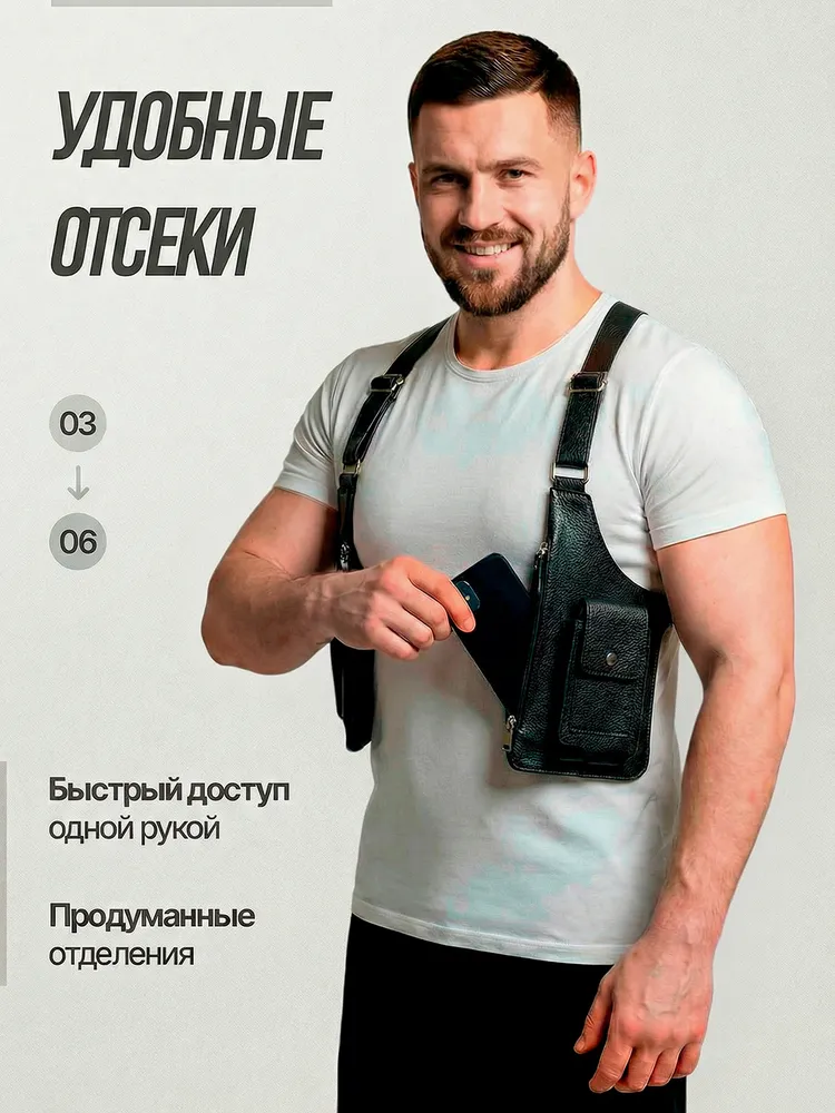 Сумка кобура из фактурной натуральной кожи Флотер Российского производителя "Мастеркожа"- это идеальный аксессуар для документов, смартфона, денег, карт и прекрасное дополнение к вашему гардеробу. Наше производство уже на протяжении 15 лет использует исключительно 100% натуральную кожу высшего качества от лучших кожзаводов России, Италии, Турции, благодаря чему мы можем предложить нашим клиентам изделия, сочетающие в себе эстетику, комфорт и долговечность. Сумка кобура достаточно функциональная и компактная, имеет 1 внешний карман на кнопке и 3 отделения на молнии. Наши аксессуары отлично подойдут в качестве подарка мужчинам, подросткам, друзьям, коллегам и сотрудникам.