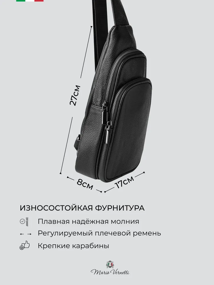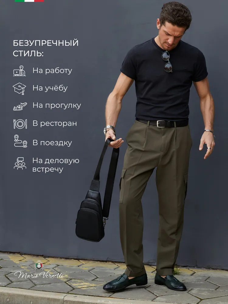 Подарите себе и близким удобство и комфорт, выбрав премиум качество Mario Vernetti Стильные мужские сумки из натуральной кожи и долговечной фурнитуры, продуманные до мелочей. Мужская сумка через плечо от бренда Mario Vernetti Стильная, надежная и изготовлена из высококачественной натуральной кожи. Подойдет для любого мужчины, независимо от возраста, профессии и стиля жизни. Наша сумка сочетает в себе лучшие качества двух популярных моделей - сумка рюкзак и бананка, что делает ее уникальной и максимально удобной. Регулируемый плечевой ремень Выполнен из плотного, износостойкого нейлона, который прослужит долгие годы. Большой диапазон регулировки длины ремня позволит подобрать комфортное положение сумки человеку практически любой комплекции. Вы можете носить сумку как на плече, так и через тело (кросс-боди), в зависимости от ситуации и вашего настроения. Качественная фурнитура Премиального качества, усиленный контроль и тщательная проверка перед отправкой покупателям. Продуманная внутренняя эргономика Несмотря на небольшие размеры (29х17х7 см), сумка имеет множество карманов и основное отделение, что идеально подходит для документов, телефона, планшета и других необходимых вещей. Скрытый карман для самого ценного Можно положить ключи, банковские карты, права, купюры или любую важную мелочь. Качество и текстура Сумка из натуральной кожи высокой выделки станет вашей гордостью и добавит внимания. К ней не просто приятно прикасаться и удобно использовать - каждый её элемент говорит о том, что она была сделана именно для вас. Вы почувствуете нашу любовь в каждом шве. Подарок, который не оставит равнодушным Упакована в пыльник с логотипом бренда, не стыдно подарить. Эмоции от подарка не заставят себя долго ждать! Подойдет под любой образ в одежде Этот аксессуар специально создан для мужчин и имеет дизайн, который подчеркнет стиль и индивидуальность. Возможно Вам понравятся другие модели нашего бренда Mario Vernetti Переходите в карточку, кликнув на понравившийся вам товар БЕСТСЕЛЛЕР! Мужская сумка барсетка, натуральная кожа Вместительная: 2 внутренних отделения, 3 внешних кармана. Размеры 23 х 18 х 6 см. Сейчас в тренде! Мужская сумка кобура, натуральная кожа Тренд сезона весна-лето 2025! 2 внешних кармана, 2 внутренних отделения, размеры 30 х 27 х 6 см. Новинка! Маленькая мужская сумка для самого важного, натуральная кожа. Размеры 21 х 17 х 4 см.