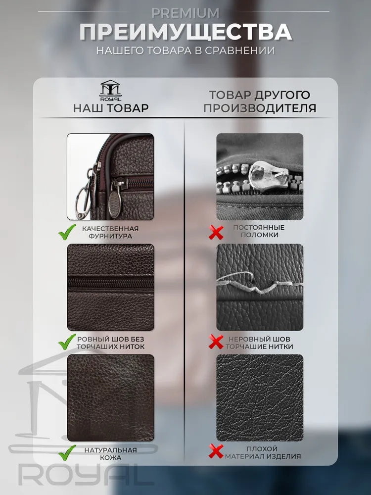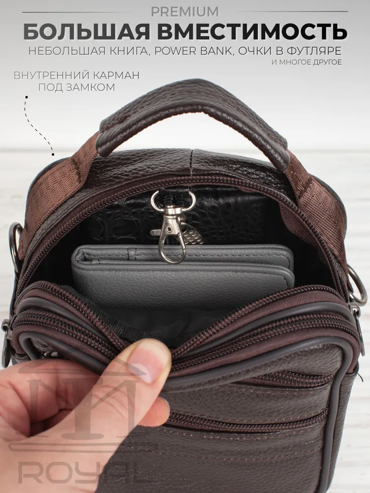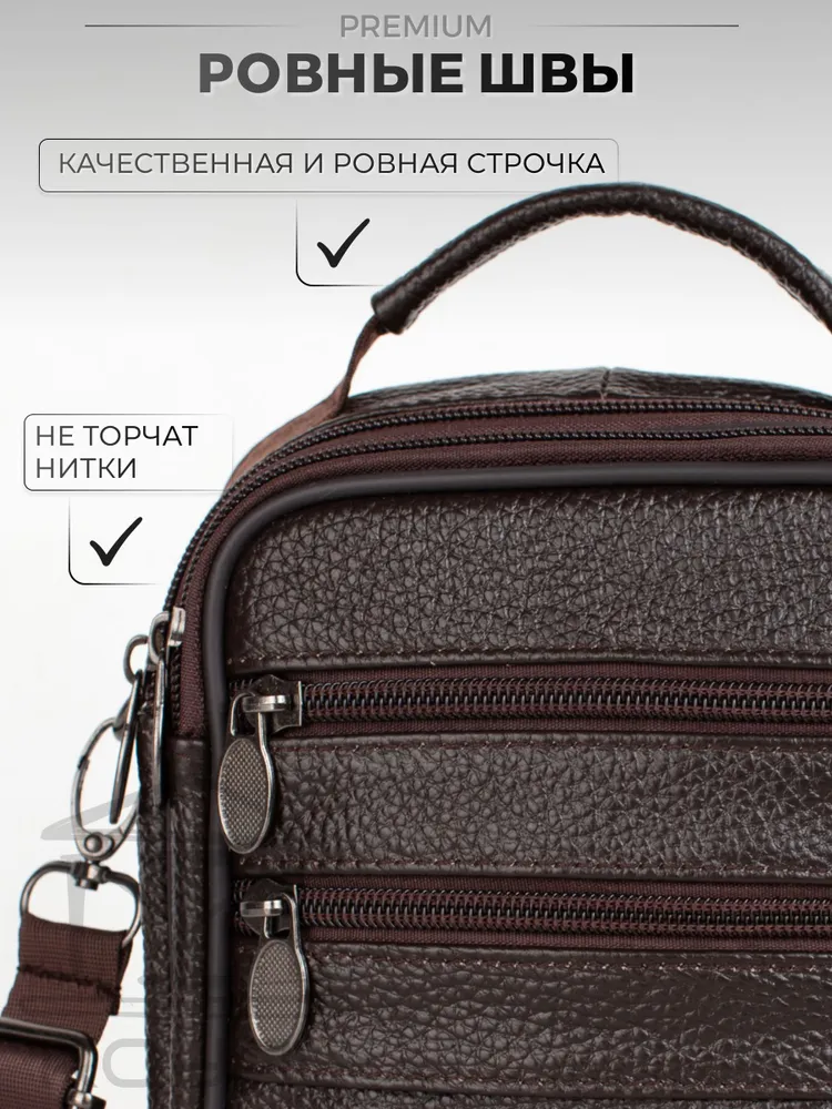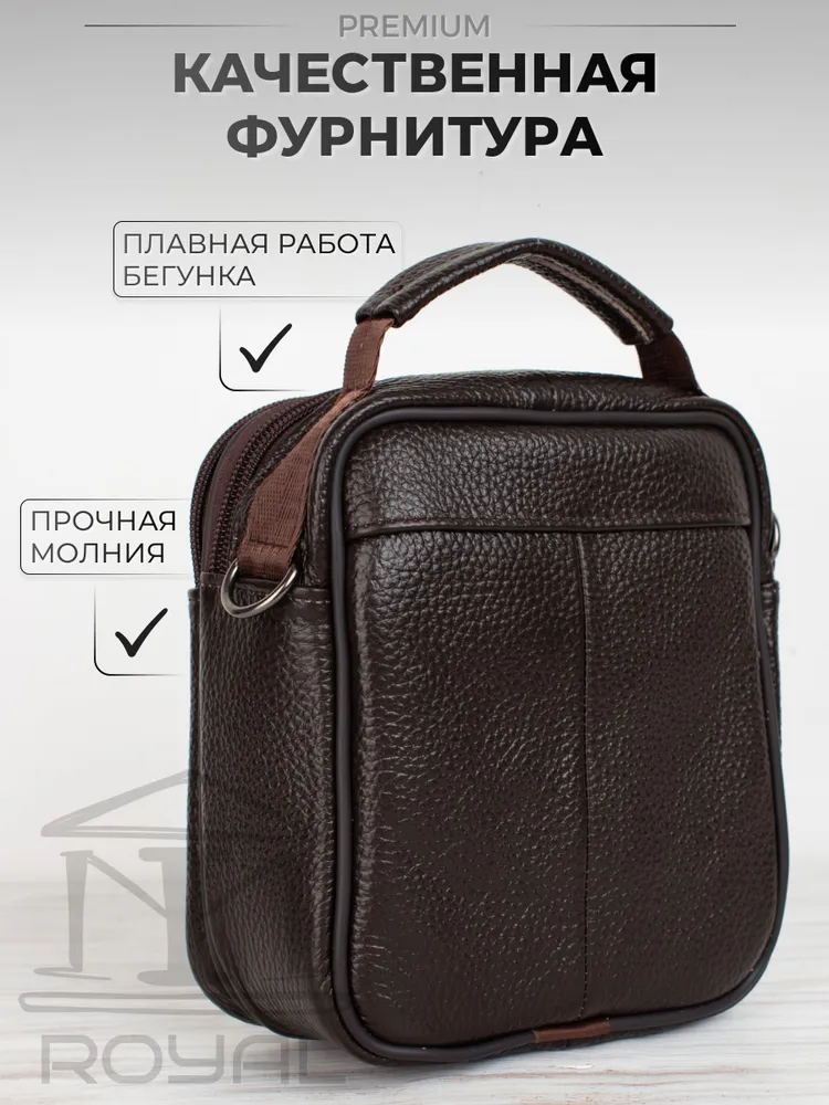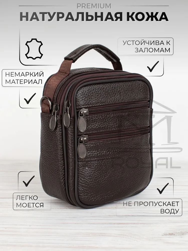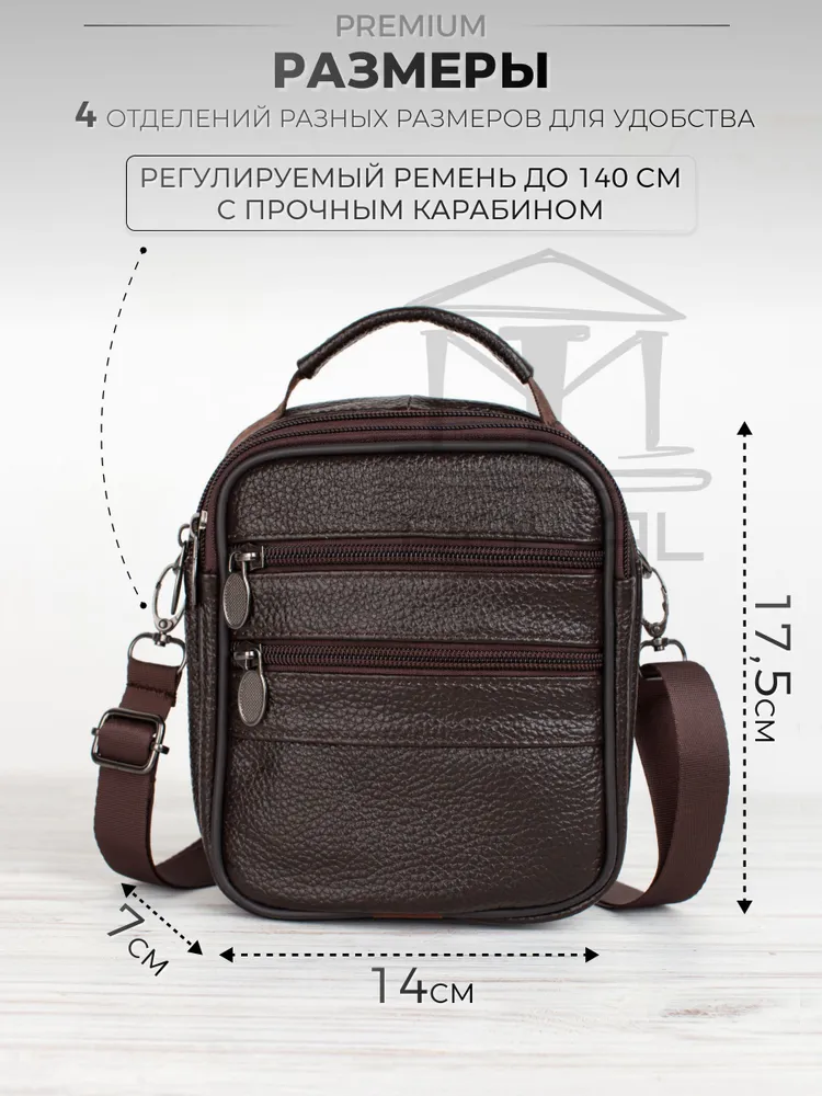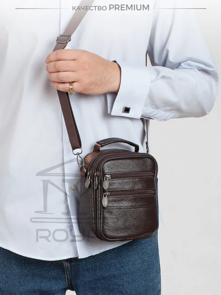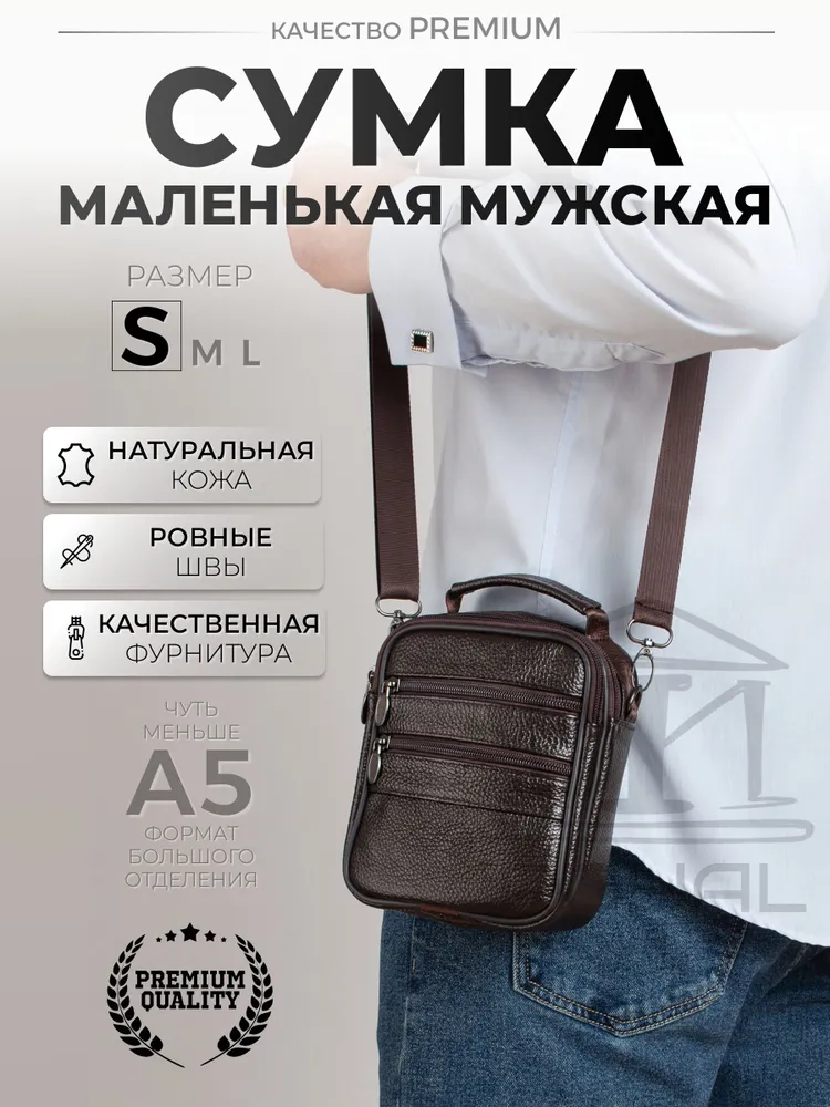 – Размер: 180×140×60 мм – Материал: натуральная кожа – Подкладка: текстиль – Застёжка: молния Мужская сумка на плечо имеет: – два основных отделения – два кармана на молнии на лицевой стороне Эта стильная компактная сумка мужская через плечо кожаная натуральная идеально подойдёт для повседневных дел, поездок или работы. Благодаря удобному прямоугольному формату и классическому дизайну она станет отличным решением как для офиса, так и для прогулок. Сумка под документы выполнена из прочной натуральной кожи флотер. Она подойдёт тем, кто ищет практичную и надёжную сумку кожаную мужскую с лаконичным, но выразительным дизайном. Сумка мужская маленькая, но при этом достаточно вместительная — её можно использовать как сумку для документов мужскую, вмещающую паспорт, телефон, ключи, автодокументы и небольшие аксессуары. Благодаря ремню она носится как сумка кросс-боди мужская. Если вы ищете сумку мужскую для работы, вам подойдёт именно эта модель — в ней сочетаются прочность, функциональность и стильный внешний вид. Сумка мужская кожаная носится через плечо или в руке — благодаря текстильному регулируемому ремню и верхней ручке. Плотная, мягкая кожа, качественная фурнитура и аккуратные швы гарантируют надёжность и долгий срок службы. Современный силуэт делает модель универсальной: подойдёт и как сумка мужская деловая или рабочая, и как сумка мужская для телефона. Если вам нужна барсетка мужская через плечо, сумка мужская на плечо, сумка мужская через плечо кросс-боди, сумка мессенджер мужская, сумка мужская офисная, сумка мужская средняя или сумка мужская через плечо прямоугольная — этот вариант вас не разочарует. Сумка мессенджер мужской - это отличная идея для подарка мужу, папе, любимому, сыну, другу, брату, коллеге. *Внимание: реальные цвета могут отличаться от изображения, это может быть связано с индивидуальными настройками Вашего монитора.