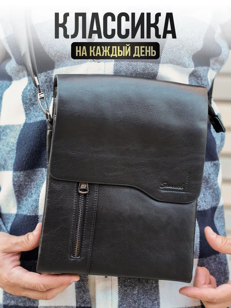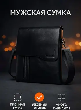 Мужская сумка планшет Это удобный аксессуар для работы и путешествий. Надежность Она выполнена из прочных материалов, таких как натуральная кожа и эко кожа высокого качества. Практичность Сумка оснащена несколькими карманами и отделениями для хранения документов, смартфона, ключей и других мелочей. Сумка мужская через плечо кожаная Арт.1606127839 Сумка мужская через плечо, барсетка мужская Арт.865167595