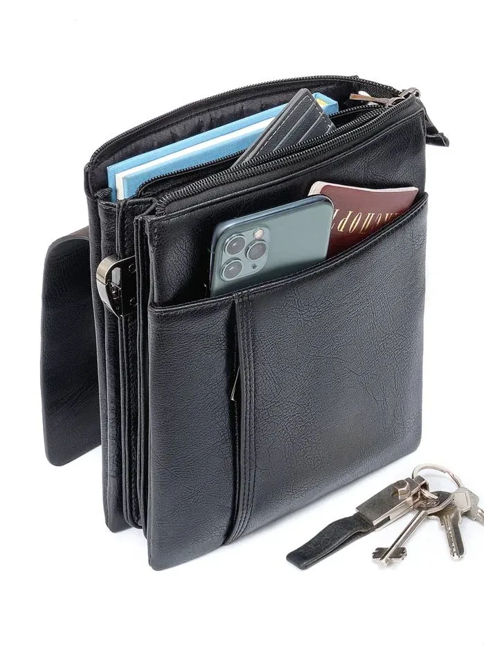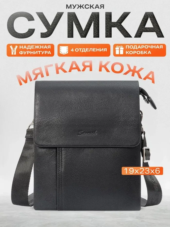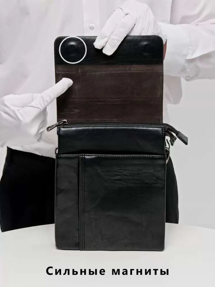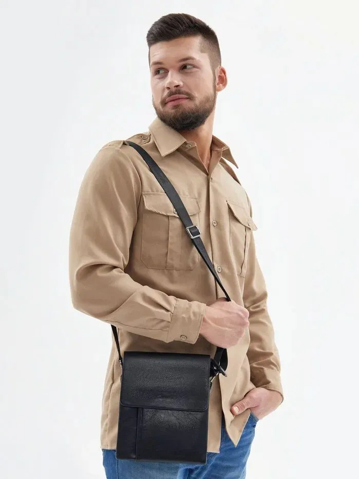 Мужская сумка через плечо из натуральной кожи Стильная мужская сумка - удобный и практичный мужской аксессуар, позволяющий комфортно носить при себе различные гаджеты, ключи, кошелек, документы и другие личные вещи, помимо этого сумка разнообразит и подчеркнет образ Стильная Мужская сумка через плечо обладает универсальным дизайном, который можно совмещать как с деловым стилем одежды, так и с повседневным и одевать как на деловые встречи так и на обычную прогулку Качественные материалы Барсетка выполнена из высококачественной износостойкой натуральной кожи, хорошо держит форму, не заламывается и не истирается Компактность При небольших размерах сумка обладает внушительной вместимостью, сумка имеет большое количество внутренних и внешний карман, позволяет удобно распределить личные вещи по сумке Идеальный подарок Сумку можно использовать для себя или в качестве подарка для мужчины