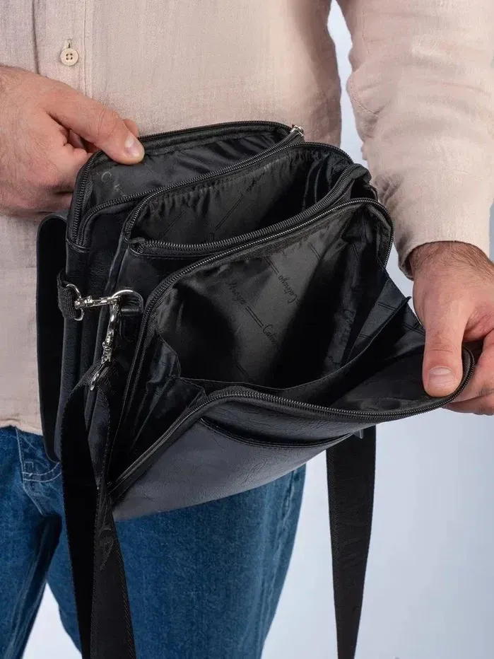 Мужская сумка через плечо из натуральной кожи Стильная мужская сумка - удобный и практичный мужской аксессуар, позволяющий комфортно носить при себе различные гаджеты, ключи, кошелек, документы и другие личные вещи, помимо этого сумка разнообразит и подчеркнет образ Стильная Мужская сумка через плечо обладает универсальным дизайном, который можно совмещать как с деловым стилем одежды, так и с повседневным и одевать как на деловые встречи так и на обычную прогулку Качественные материалы Барсетка выполнена из высококачественной износостойкой натуральной кожи, хорошо держит форму, не заламывается и не истирается Компактность При небольших размерах сумка обладает внушительной вместимостью, сумка имеет большое количество внутренних и внешний карман, позволяет удобно распределить личные вещи по сумке Идеальный подарок Сумку можно использовать для себя или в качестве подарка для мужчины
