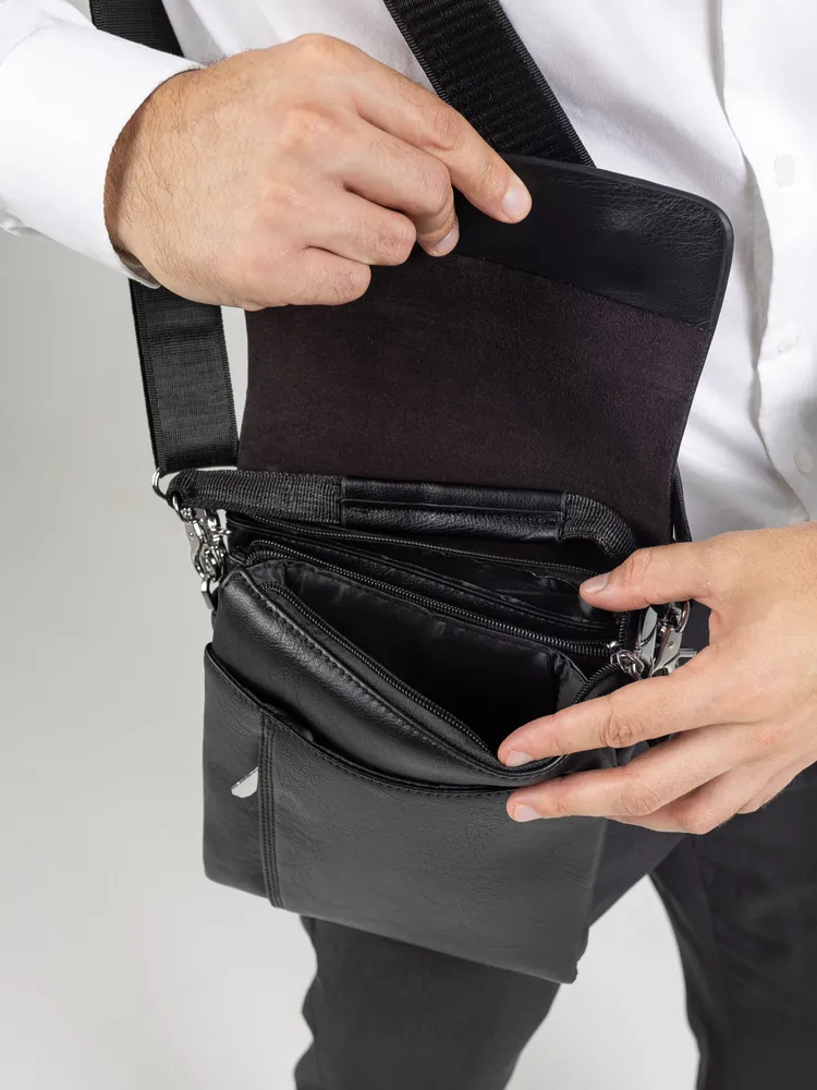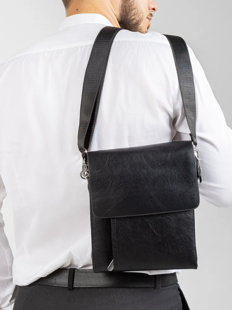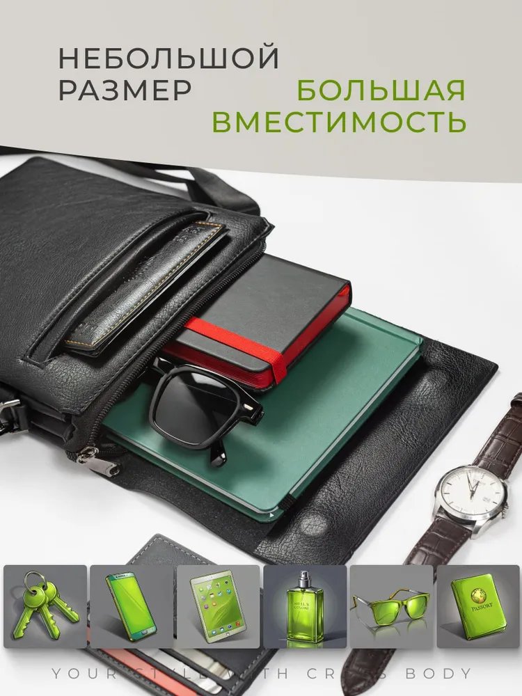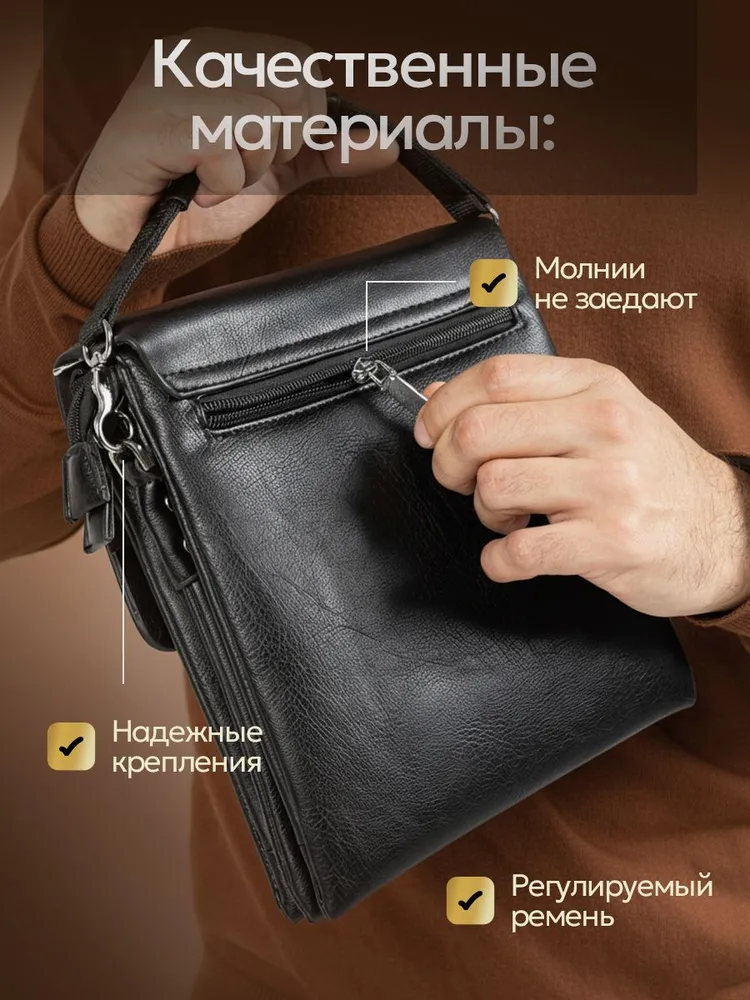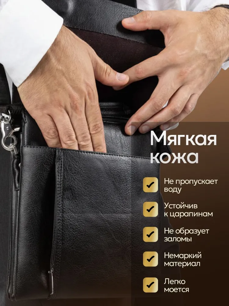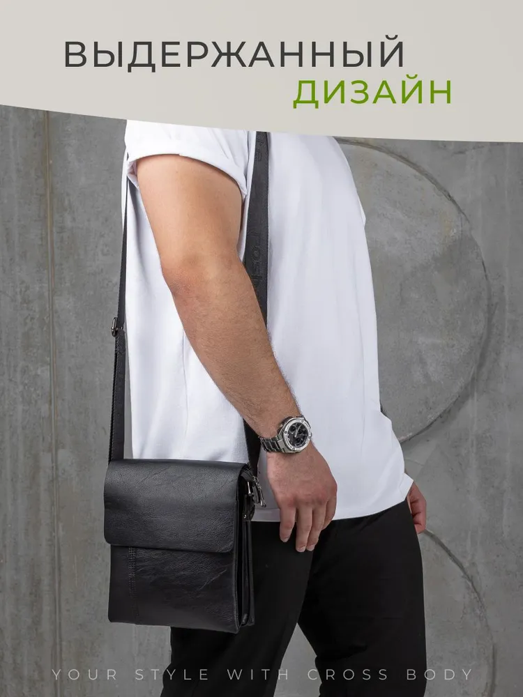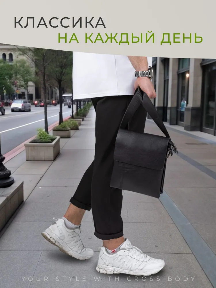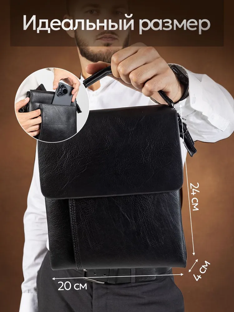 Сумка выполнена из 100% натуральной кожи Стильная, надежная и изготовлена из высококачественной натуральной кожи. Подойдет для любого мужчины, независимо от возраста, профессии и стиля жизни. Надежность, сумка прослужит вам долгие годы Каждому мужчине необходима надежная и стильная сумка для работы или учебы, где он сможет хранить свои документы, телефон и ключи, при этом поддерживая презентабельный и мужественный вид. Вместительность Несмотря на небольшие размеры (25х20 см), сумка имеет множество карманов и три больших отделения, вмещают в себя всё самое важное: документы, ключи, деньги, визитные и кредитные карточки, телефон, паспорт, документы, планшет. А удобный карман на молнии сзади можно положить самое важное и не переживать за его сохранность Вечная классика Сумка мессенджер в компактном размере, стильный и надежный внешний клапан на магнитах, изготовленный из натуральной кожи, обеспечит безопасное хранение ваших ценностей. Износостойкая и надежная фурнитура Кожаная сумка оснащена прочной и качественной металлической фурнитурой Длинный ремень на плечо Удобная регулировка ремня на обе стороны и по длине, что дает возможность носить ее на спине, на груди, на плече и через плечо. Выполнен из плотного, износостойкого нейлона, который прослужит долгие годы. . Удобная коротка ручка Короткая ручка для переноски в руке удобно носить сумку, как барсетка, не нагружая плечо. Идеальный подарок Такая сумка-планшет также станет идеальным подарком для мужчины на любое торжественное мероприятие. Подарок, который не оставит равнодушным Порадовать без повода и на любой праздник: любимому мужчине, парню, мужу, сыну, папе, подростку, коллеге, брату или другу в день рождения или просто так. Не упустите возможность приобрести кросс боди как нужный аксессуар подходящий под любые встречи и стиль в офис, в универ, колледж, на свидание или прогулка по парку в спортивном костюме