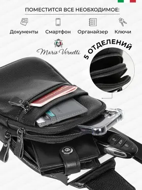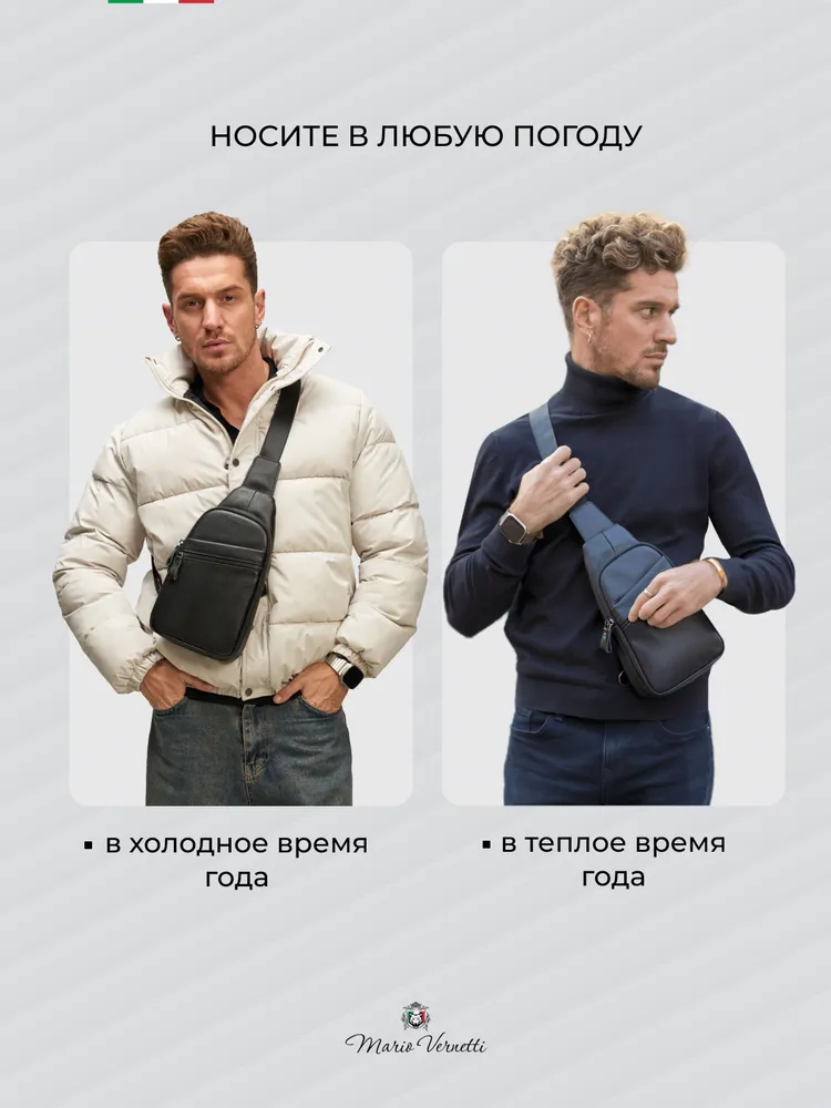 Подарите себе и близким удобство и комфорт, выбрав премиум качество Mario Vernetti Стильные мужские сумки из натуральной кожи и долговечной фурнитуры, продуманные до мелочей. Мужская сумка через плечо от бренда Mario Vernetti Стильная, надежная и изготовлена из высококачественной натуральной кожи. Подойдет для любого мужчины, независимо от возраста, профессии и стиля жизни. Наша сумка сочетает в себе лучшие качества двух популярных моделей - сумка рюкзак и бананка, что делает ее уникальной и максимально удобной. Регулируемый плечевой ремень Выполнен из плотного, износостойкого нейлона, который прослужит долгие годы. Большой диапазон регулировки длины ремня позволит подобрать комфортное положение сумки человеку практически любой комплекции. Вы можете носить сумку как на плече, так и через тело (кросс-боди), в зависимости от ситуации и вашего настроения. Качественная фурнитура Премиального качества, усиленный контроль и тщательная проверка перед отправкой покупателям. Продуманная внутренняя эргономика Несмотря на небольшие размеры (29х17х7 см), сумка имеет множество карманов и два больших отделения, что идеально подходит для документов, телефона, планшета и других необходимых вещей. Скрытый карман для самого ценного Можно положить ключи, банковские карты, права, купюры или любую важную мелочь. Надежное хранение Спереди так же имеется потайной карман на магните. Выбирайте комфорт Можно носить сумку-слинг через правое или левое плечо, для этого нужно лишь перестегнуть карабин ремня. Качество и текстура Сумка из натуральной кожи высокой выделки станет вашей гордостью и добавит внимания. К ней не просто приятно прикасаться и удобно использовать - каждый её элемент говорит о том, что она была сделана именно для вас. Вы почувствуете нашу любовь в каждом шве. Подарок, который не оставит равнодушным Упакована в красный пыльник, не стыдно подарить. Эмоции от подарка не заставят себя долго ждать! Подойдет под любой образ в одежде Этот аксессуар специально создан для мужчин и имеет дизайн, который подчеркнет стиль и индивидуальность. Возможно Вам понравятся другие модели нашего бренда Mario Vernetti Переходите в карточку, кликнув на понравившийся вам товар БЕСТСЕЛЛЕР! Мужская сумка барсетка, натуральная кожа Вместительная: 2 внутренних отделения, 3 внешних кармана. Размеры 23 х 18 х 6 см. Сейчас в тренде! Мужская сумка кобура, натуральная кожа Тренд сезона весна-лето 2025! 2 внешних кармана, 2 внутренних отделения, размеры 30 х 27 х 6 см. Новинка! Маленькая мужская сумка для самого важного, натуральная кожа. Размеры 21 х 17 х 4 см.