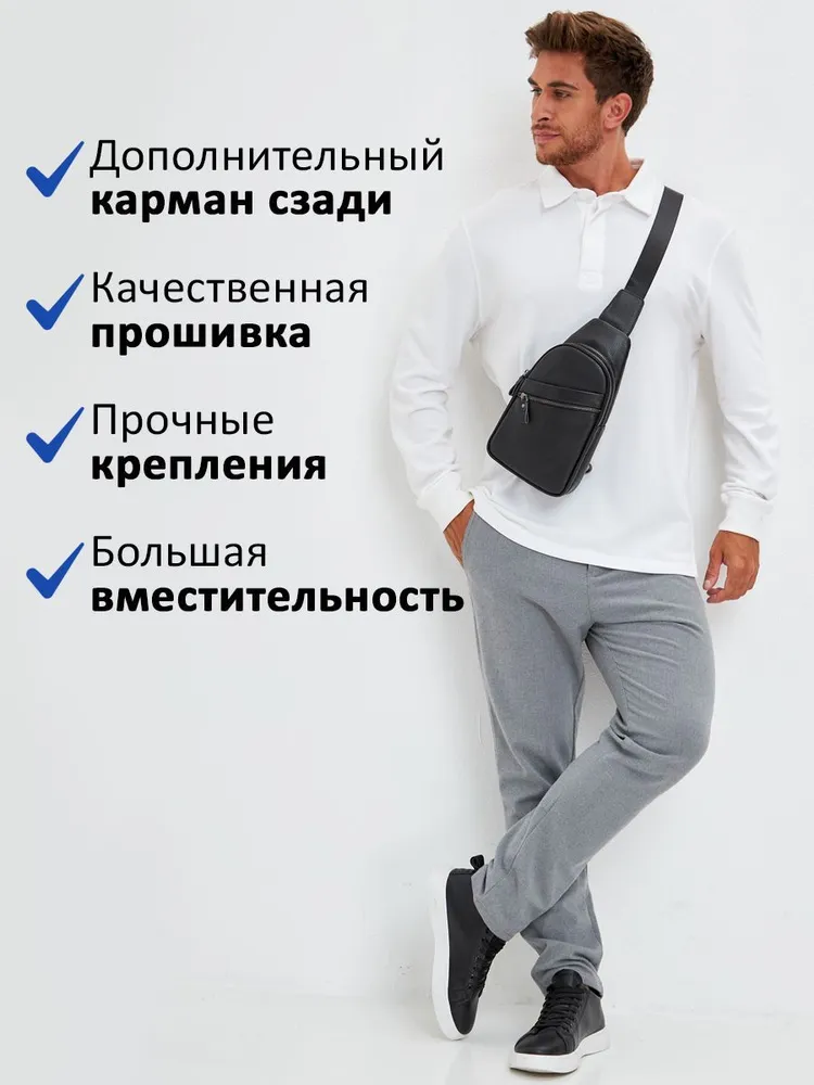 Представляем вашему вниманию стильную мужскую сумку через плечо, выполненную из качественной кожаной ткани. Эта практичная и элегантная сумка является идеальным аксессуаром для повседневного использования, сочетая в себе как функциональность, так и современный дизайн. Сумка на плечо создана с учетом потребностей активного мужчины, который ценит комфорт и стиль. Надежные застежки и прочные швы обеспечивают долговечность, а компактные размеры позволяют легко разместить все необходимые мелочи — документы, телефон, ключи и кошелек. Мужская сумка через плечо отлично подходит для разных поводов — будь то прогулка по городу, поездка на работу или поездка в путешествие. Она просто регулируется по длине ремня, что позволяет вам выбрать наиболее удобный для вас способ ношения. Кожаная текстура добавляет изделию утонченности, делая его подходящим как для делового стиля, так и для повседневной жизни. А благодаря универсальному дизайну, эта сумка станет удачным дополнением к любому образу. Выбирайте качество и стиль с нашей мужской сумкой через плечо и подчеркивайте свою индивидуальность каждый день! Эта сумка станет вашим верным спутником в любых жизненных ситуациях.