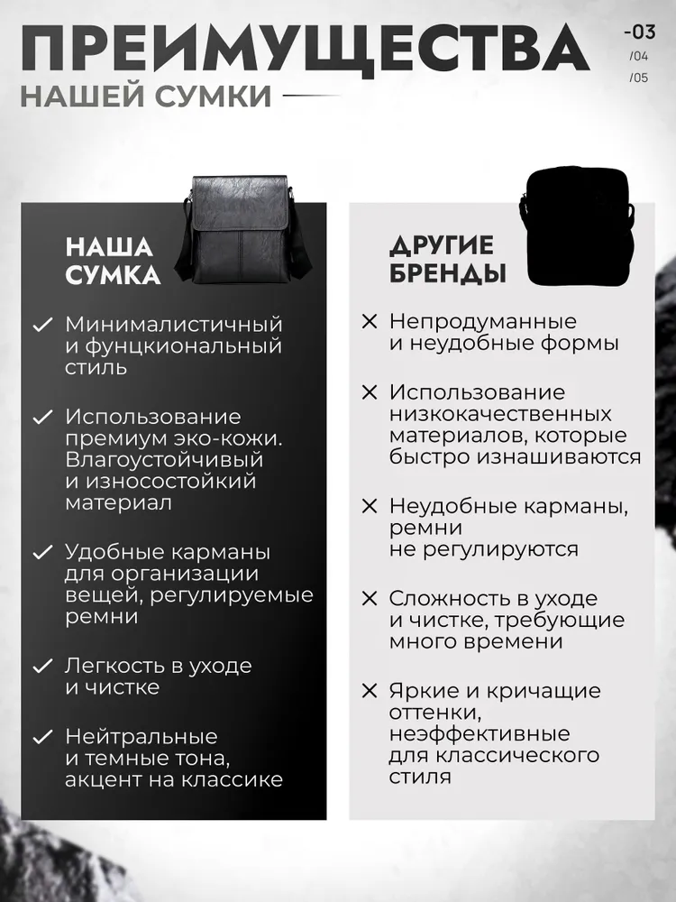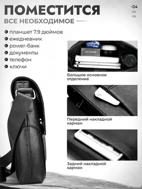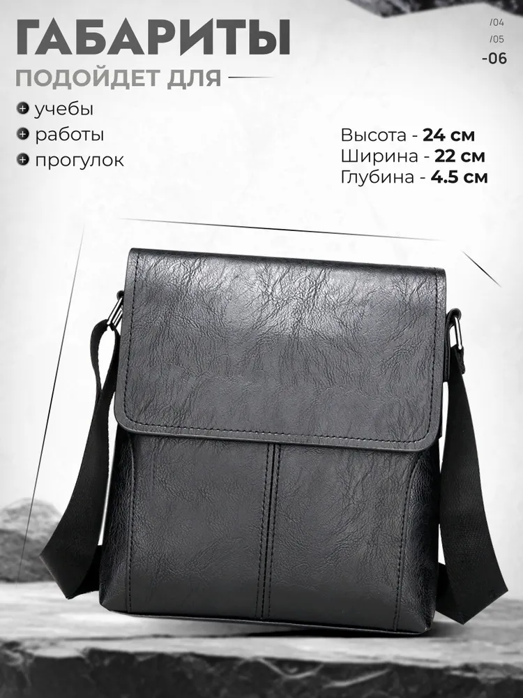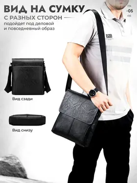 Вместимая сумка Не стоит забывать и о том, что такая сумка станет отличным дополнением к любому образу. Черная кожаная барсетка легко сочетается с различными стилями одежды, будь то спортивный, классический или кэжуал. Она станет не только практичным, но и модным акцентом вашего гардероба. Элегантность и стиль Ищете идеальную сумку, которая сочетает в себе стиль и практичность? Представляем вам мужскую кожаную сумку через плечо — универсальное решение для современных мужчин. Эта вместительная барсетка станет вашим надежным спутником в повседневной жизни, будь то работа, поездка или прогулка по городу. Больше никаких сомнений сомнений Если вы ищете компактную барсетку на одно плечо, которая будет служить вам долго и надежно, эта модель — идеальный выбор. Она отлично подходит как для повседневного использования, так и для путешествий, благодаря своей вместимости и функциональности. Сумка мужская кожаная через плечо — это не просто аксессуар, это ваш стиль жизни.
