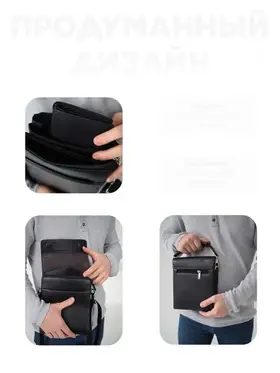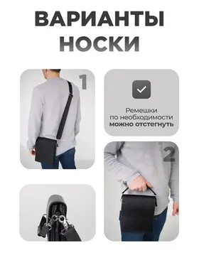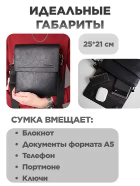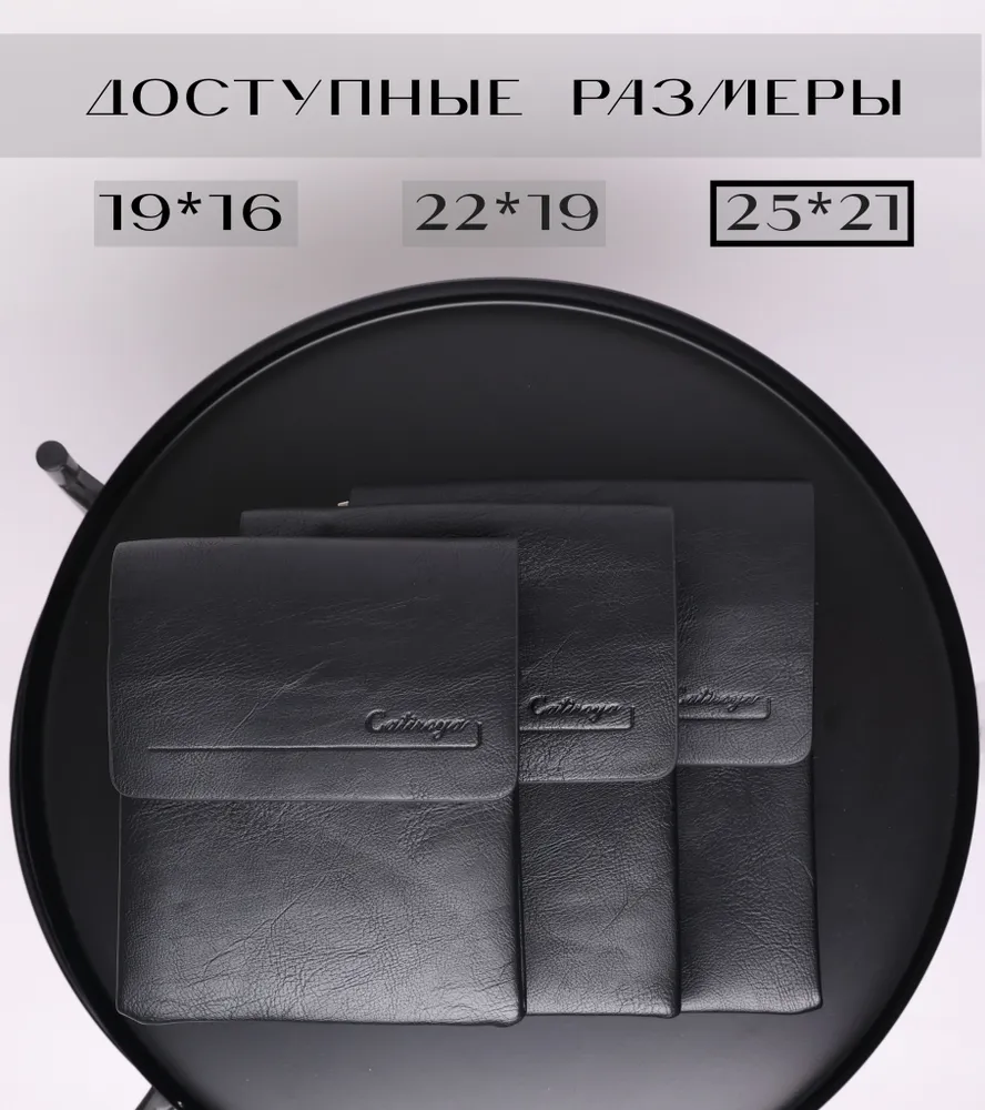 Мужская кожаная сумка через плечо Catiroya (21×25 см) - деловая барсетка из натуральной кожи и экокожи Практичная и стильная мужская сумка через плечо выполнена из комбинации натуральной кожи и экокожи: клапан и крепления ремня из натуральной кожи для высокой прочности, а основная часть - из износостойкой экокожи. Съёмная ручка и регулируемый плечевой ремень (от 90 до 150 см) делают сумку удобной для повседневного использования. Модель сочетает компактность и вместительность: в неё спокойно помещаются повседневные мелочи, документы и планшет, телефон, ключи или небольшой ежедневник. Эргономичный дизайн, внешние карманы на молнии и внутренние отделения обеспечивают быстрый доступ к вещам и удобную организацию. Надёжная фурнитура и качественные материалы гарантируют долговечность и защиту от потертостей. Размеры и варианты: Большая сумка (21×25 см): подходит для ежедневника и документов формата A5, удобно для студентов и работы Средняя кросс-боди (19×22 см): универсальные габариты для повседневного ношения Маленькая сумка-мессенджер (16×19 см): компактная, может заменить кошелек благодаря множеству отделений