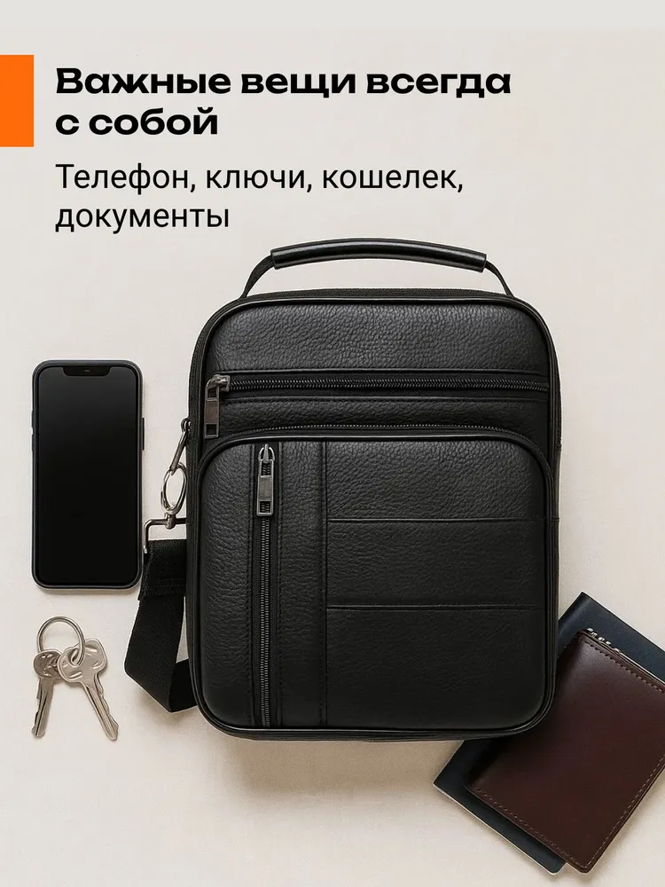 Эта сумка мужская через плечо выполнена из натуральной кожи, что обеспечивает долговечность и стильный внешний вид. Мужская сумочка кросс-боди идеально подходит для хранения документов и телефона, сочетая удобство с классическим дизайном. Благодаря компактным размерам она становится отличным выбором как для работы, так и для путешествий. Одно основное отделение позволяет легко организовать содержимое, а качественные кожаные материалы делают изделие надежным спутником в повседневной жизни.Барсетка обладает продуманной конструкцией, что делает ее удобной для подростков и мужчин разных возрастов. Сумки такого типа востребованы за счет универсальности: они подходят под разные стили одежды и позволяют держать все необходимое под рукой. Эта дорожная модель гармонично впишется в гардероб тех, кто ценит комфорт и практичность.Кожанная барсетка демонстрирует классический подход к мужским аксессуарам, сохраняя при этом современный формат мессенджера. Маленькая сумочка через плечо – оптимальное решение для тех, кто предпочитает минимализм без ущерба функциональности. В ней удобно хранить документы, телефон и другие важные мелочи.Выбирая мужскую сумку маленькую, можно быть уверенным в том, что она станет незаменимым дополнением повседневного образа мужчины. Сумка кожаная всегда выделяется своим качеством и презентабельностью, а вариант кросс-боди добавляет свободы движений и удобства при носке.Этот аксессуар подойдет тем, кто ищет надежную барсету с акцентом на практичность и стиль. Он создан для активных мужчин и подростков, которым важно иметь при себе все необходимое без лишнего объема. Черный цвет сумки подчеркивает ее универсальность и легко сочетается с любым нарядом.Внимание к деталям проявляется в аккуратных швах и прочных застежках — все это гарантирует долгий срок службы изделия. Использование натуральных материалов подтверждает качество изготовления этой модели кожанной барсетки через плечо.Таким образом, этот аксессуар объединяет в себе функции дорожной сумки и стильного мессенджера для документов и телефона. Он станет отличным выбором как для работы, так и для прогулок по городу или поездок. Мужские кожаные сумки такого уровня всегда остаются востребованными благодаря своей надежности и элегантности.Среди преимуществ стоит отметить компактность без потери вместимости — большая часть предметов помещается внутри одного отделения с несколькими карманами для удобства организации пространства. Это позволяет быстро находить нужные вещи во время важных встреч или путешествий.Для подростков эта модель также будет актуальна благодаря своему современному дизайну в стиле боди-кросс — такой вариант отлично подчеркнет индивидуальность молодого человека при сохранении практичности использования аксессуара каждый день.В итоге вы получаете классическую барседку из натуральной кожи с оптимальным сочетанием размеров маленькой сумочки на плечо с функциональностью большой дорожной модели. Это изделие соответствует требованиям современных мужчин к качеству, стилю и комфорту ношения аксессуаров ежедневно.Покупая эту кожаную барсетку , вы выбираете надежность проверенных материалов вместе с продуманным эргономичным дизайном мужских сумок через плечо под документы и телефон — решение продуманн