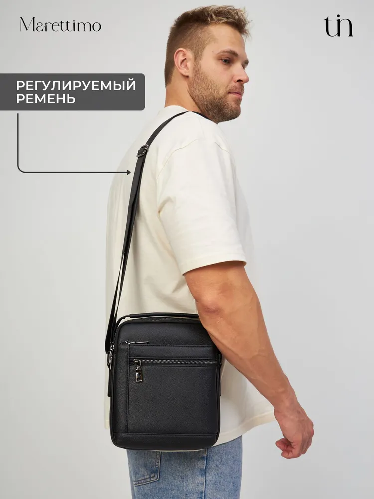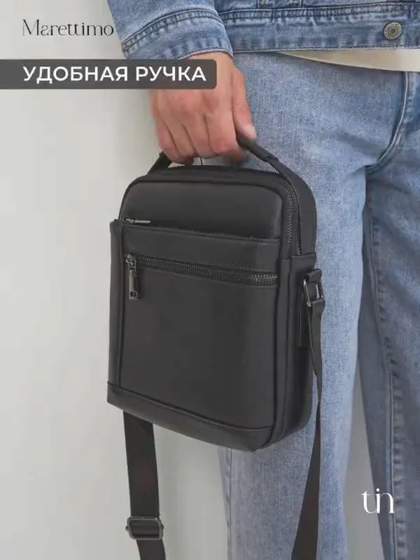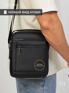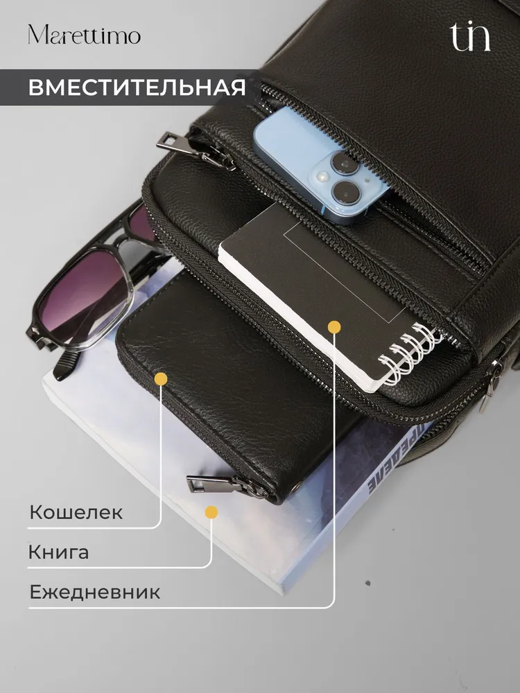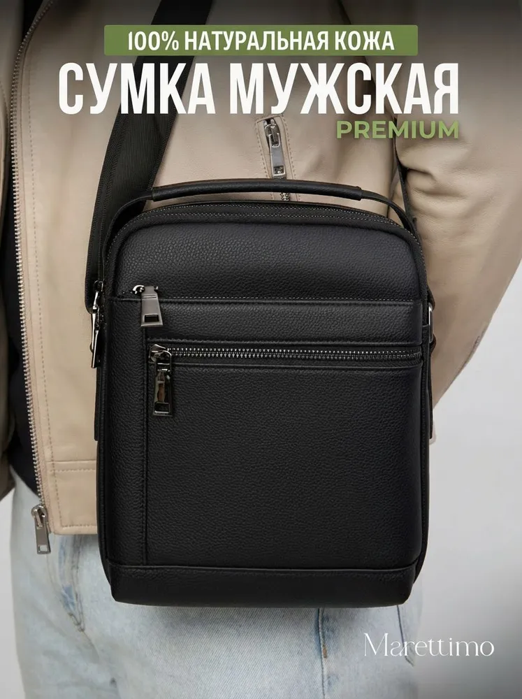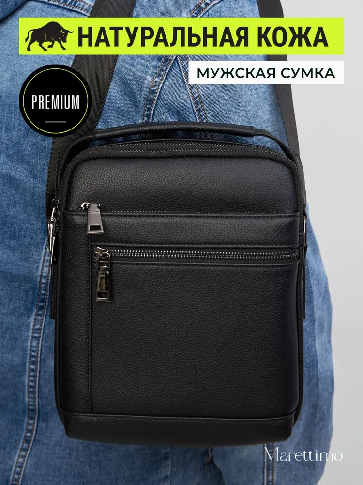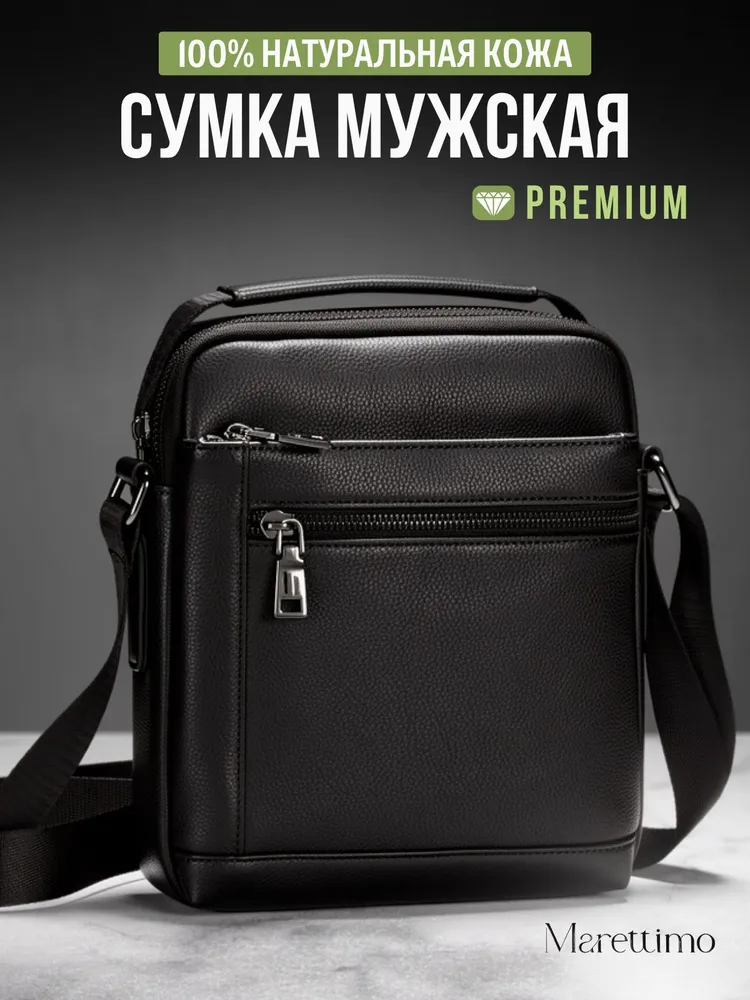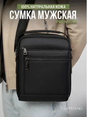 Сумка мужская кожаная натуральная через плечо от бренда MARETTIMO — идеальный аксессуар для современного мужчины, который ценит стиль и комфорт. Эта сумка выполнена из натуральной кожи, что обеспечивает ей долговечность и изысканный внешний вид. Модель сумки предлагает удобство ношения на плече, а также возможность использования как кожаной барсетки, делая её универсальным аксессуаром для повседневных поездок. Качественные молнии обеспечивают быстрый доступ к содержимому, а приятный на ощупь материал делает её комфортной в использовании. Эта кожаная натуральная барсетка через плечо отличается высоким качеством пошива, имеет ровные строчки и надёжную фурнитуру. Чёрная кожаная мужская сумка на плечо оснащена регулируемым ремнём. Прочная подкладка сумки мужской для документов из качественного текстиля легко очищается и прослужит долгие годы. Наплечная кожаная мужская сумка вмещает документы, есть карман для ключей, телефона. Мужская кожаная сумка кросс-боди отлично держит форму, а насыщенный чёрный цвет гарантированно не потускнеет. Сумка мужская натуральная кожаная это отличный подарок на любой праздник. Ее будет приятно получить вашему мужчине, мужу, папе, брату, сыну, отцу, любимому, коллеге. Выбирайте сумку MARETTIMO для тех моментов, когда важно быть стильным и функциональным одновременно.