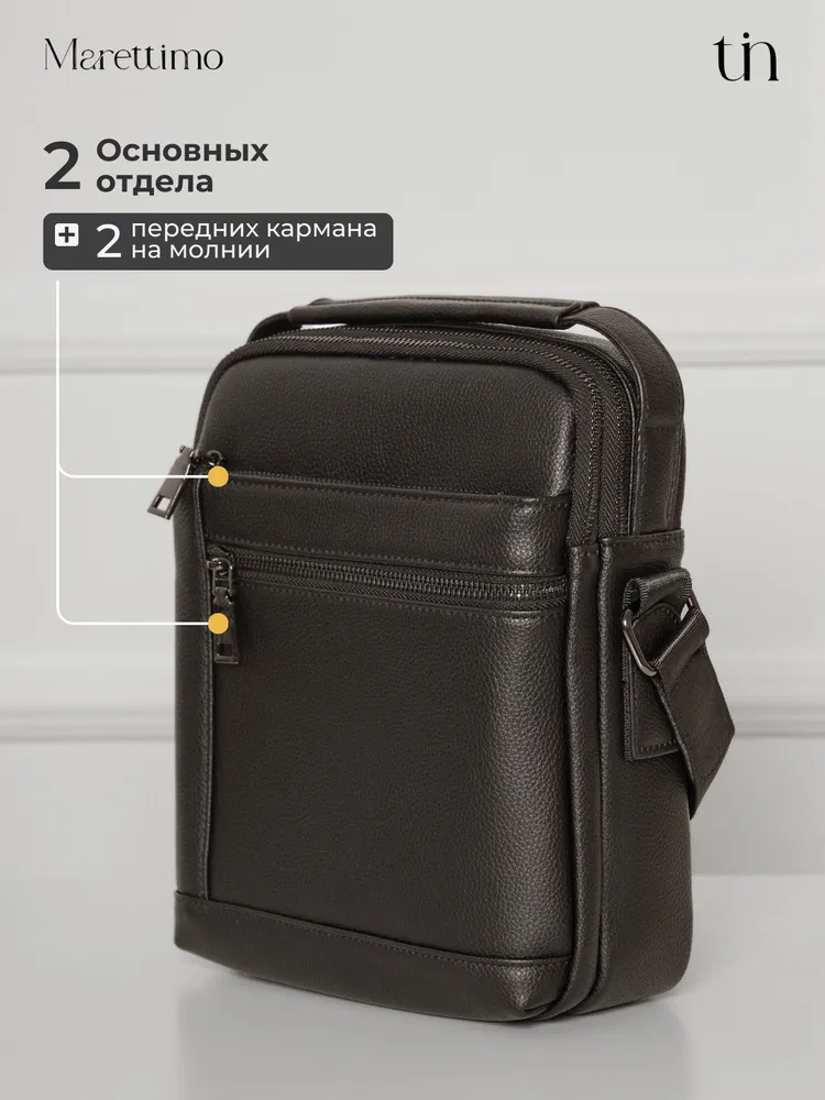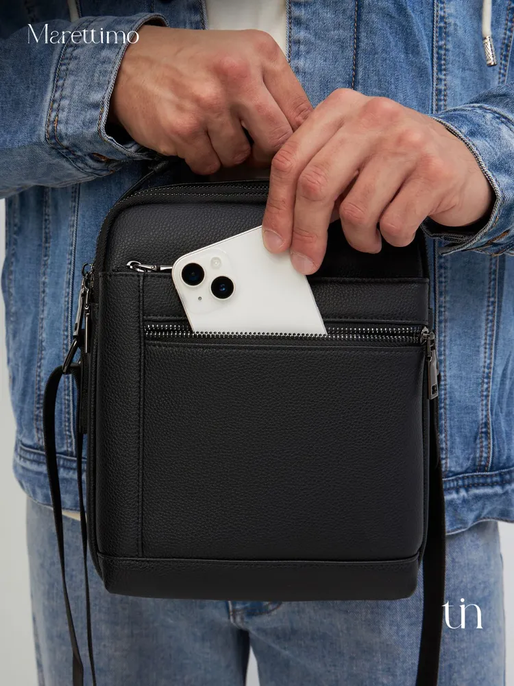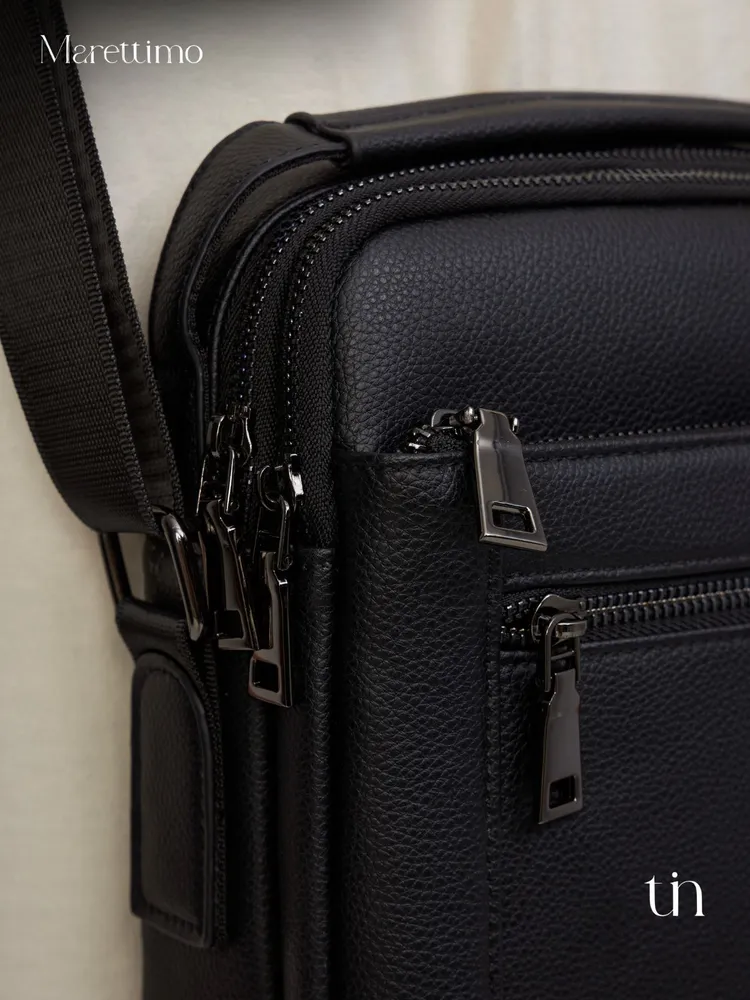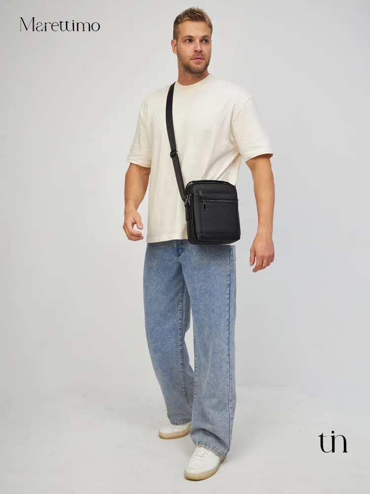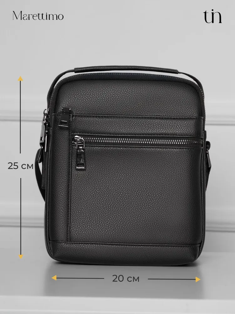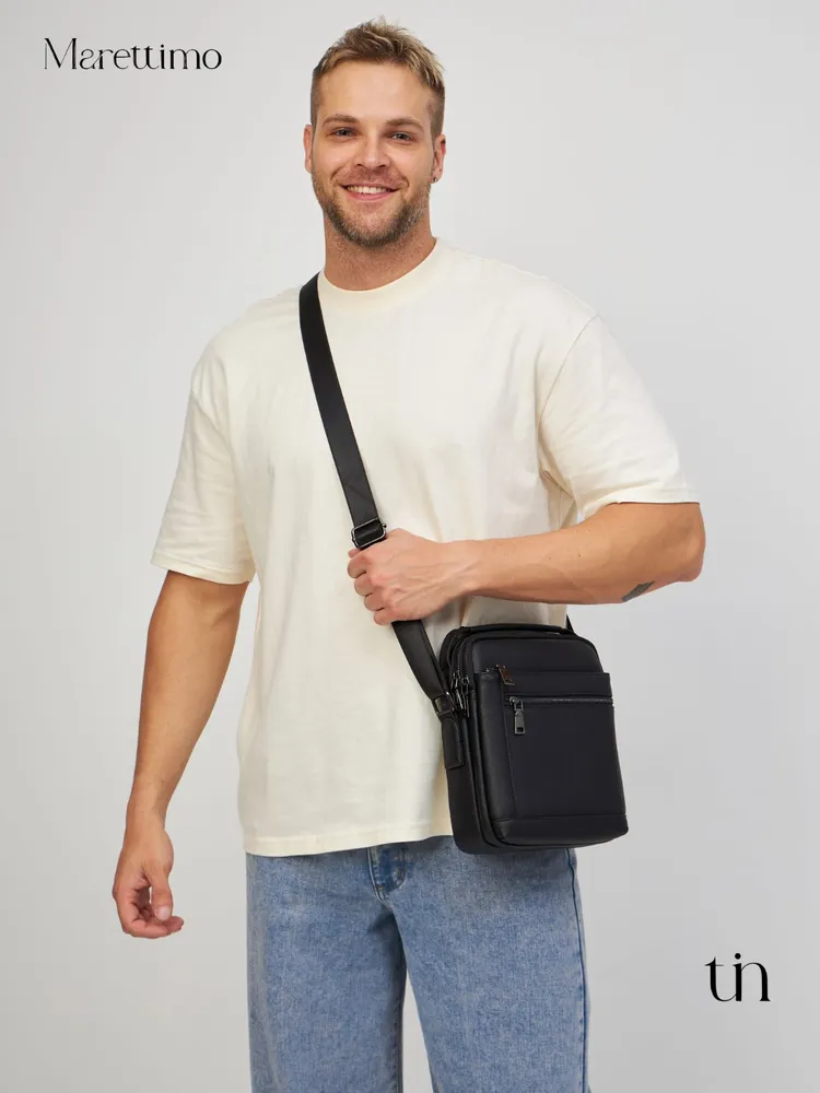 Сумка мужская кожаная натуральная через плечо от бренда MARETTIMO — идеальный аксессуар для современного мужчины, который ценит стиль и комфорт. Эта сумка выполнена из натуральной кожи, что обеспечивает ей долговечность и изысканный внешний вид. Модель сумки предлагает удобство ношения на плече, а также возможность использования как кожаной барсетки, делая её универсальным аксессуаром для повседневных поездок. Качественные молнии обеспечивают быстрый доступ к содержимому, а приятный на ощупь материал делает её комфортной в использовании. Эта кожаная натуральная барсетка через плечо отличается высоким качеством пошива, имеет ровные строчки и надёжную фурнитуру. Чёрная кожаная мужская сумка на плечо оснащена регулируемым ремнём. Прочная подкладка сумки мужской для документов из качественного текстиля легко очищается и прослужит долгие годы. Наплечная кожаная мужская сумка вмещает документы, есть карман для ключей, телефона. Мужская кожаная сумка кросс-боди отлично держит форму, а насыщенный чёрный цвет гарантированно не потускнеет. Сумка мужская натуральная кожаная это отличный подарок на любой праздник. Ее будет приятно получить вашему мужчине, мужу, папе, брату, сыну, отцу, любимому, коллеге. Выбирайте сумку MARETTIMO для тех моментов, когда важно быть стильным и функциональным одновременно.