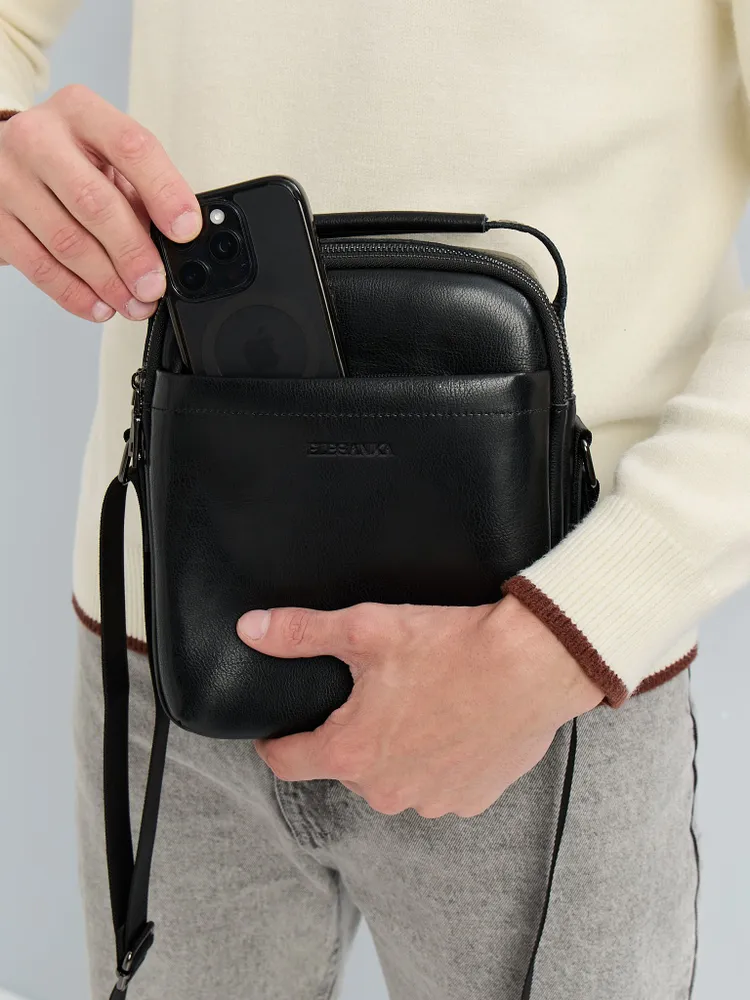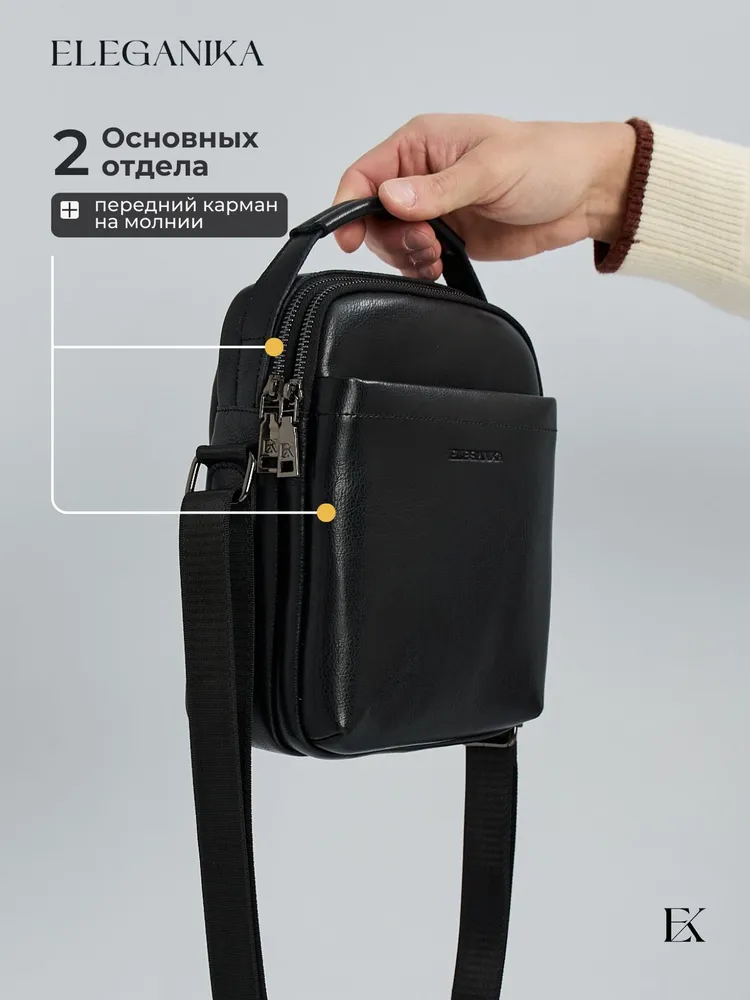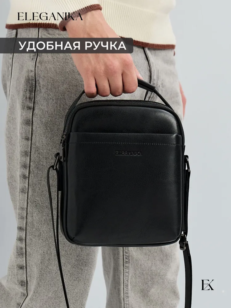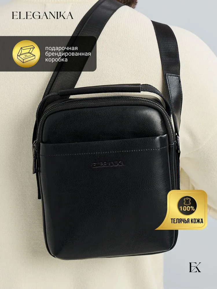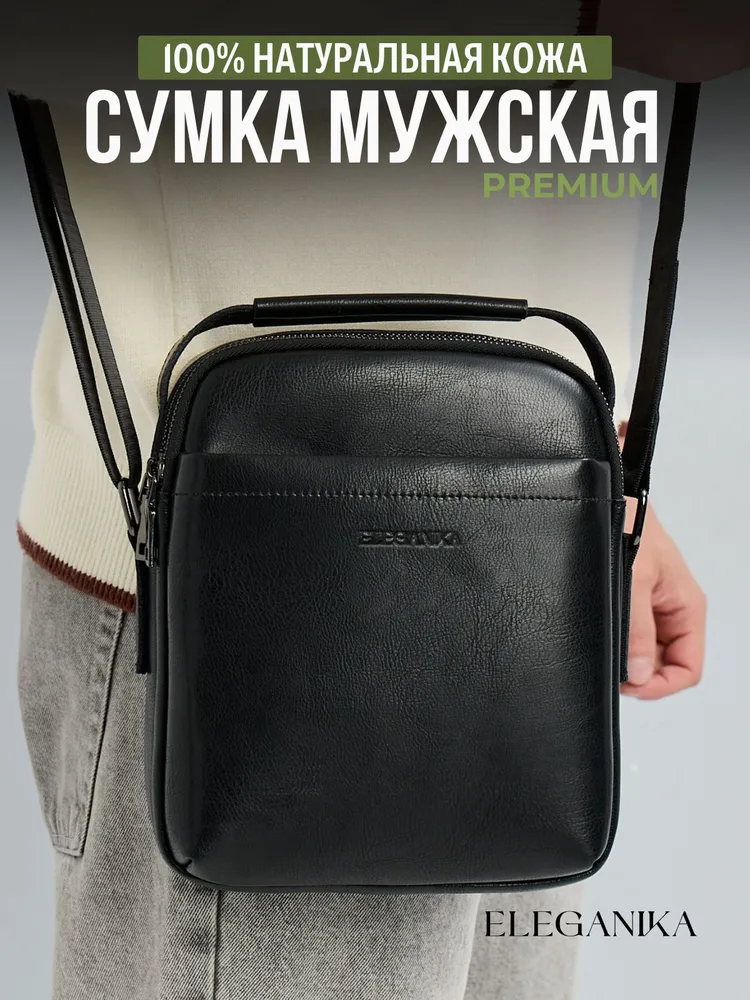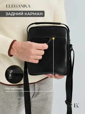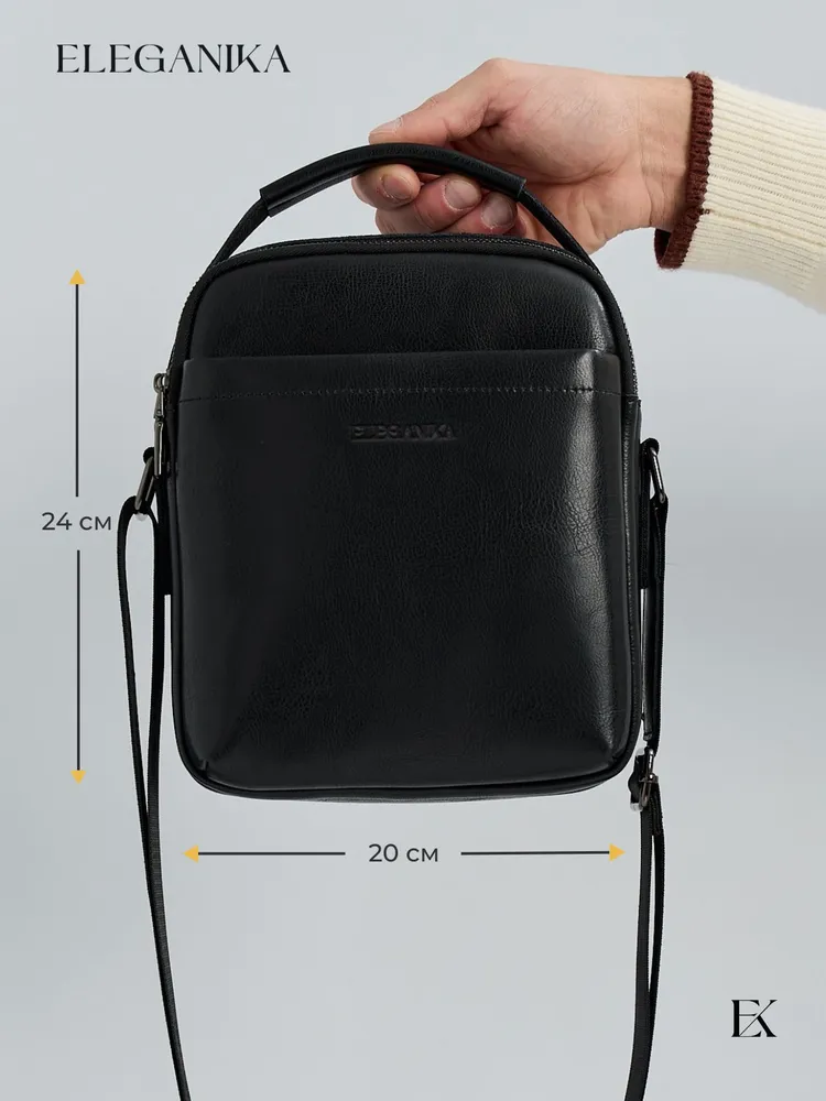 Сумка мужская кожаная через плечо от бренда ELEGANIKA – идеальный аксессуар для современного мужчины, который ценит стиль и комфорт. Эта сумка выполнена из премиальной 100% натуральной кожи, что обеспечивает ей долговечность и изысканный внешний вид. Модель сумки предлагает удобство ношения на плече, а также возможность использования как кожаной барсетки, делая её универсальным аксессуаром для повседневных поездок. Качественные молнии обеспечивают быстрый доступ к содержимому, а приятный на ощупь материал делает её комфортной в использовании. Сумка мужская через плечо высокого качества пошива, имеет ровные строчки и надежную фурнитуру. Черная кожаная мужская сумка на плечо оснащена регулируемым широким ремнем. Прочная подкладка барсетки через плечо из качественного текстиля легко очищается и прослужит долгие годы. Наплечная сумка-барсетка вмещает документы, есть карман под ключи, телефон, планшет и тетради. Мессенждер мужской отлично держит форму, а насыщенный черный цвет гарантированно не потускнеет. Кожаные сумки мужские - отличный подарок для мужчин на Новый год, день рождения, день влюбленных, 23 февраля. Такой подарок приятно будет получить вашему мужчине, мужу, папе, брату, сыну, отцу, любимому, коллеге. Ручка сумки удобна и практична: можно носить и на плече, и в руке. Подойдет студентам для учебных материалов в университете. Выбирайте сумку ELEGANIKA для тех моментов, когда важно быть стильным и функциональным одновременно.