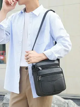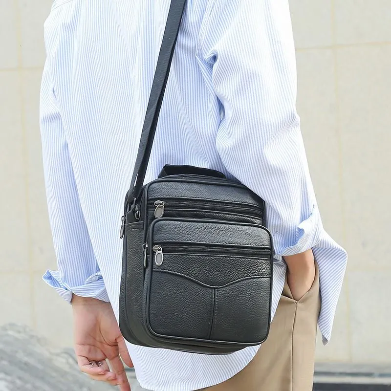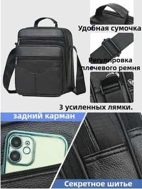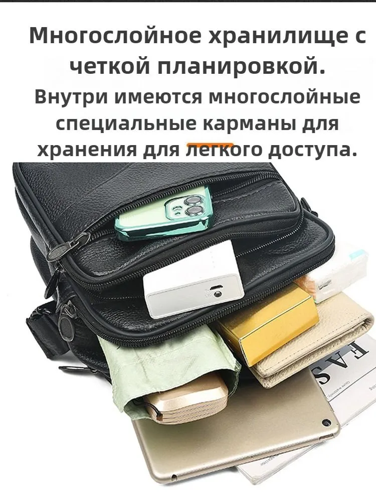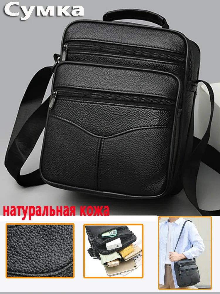 Сумка мужская через плечо кожаная, натуральная кожа,сумка на плечо кросс-боди мужская, барсетка для документов черная
