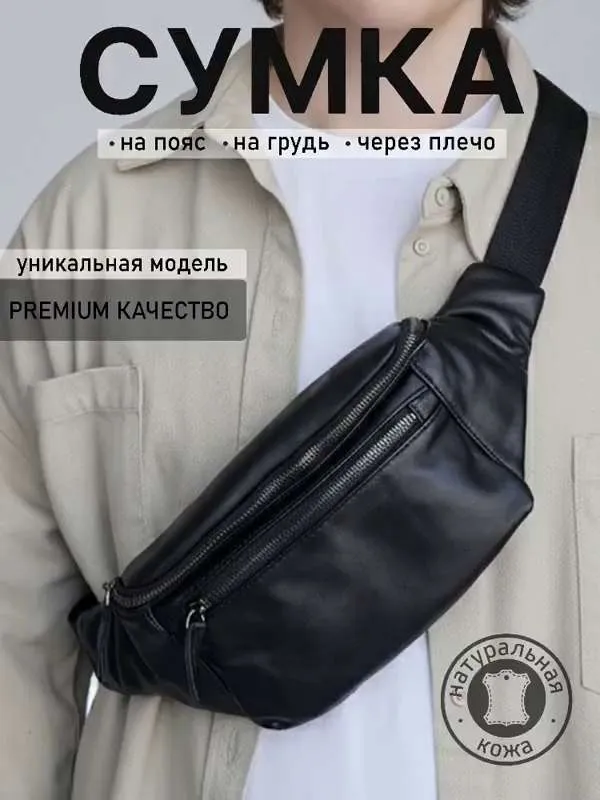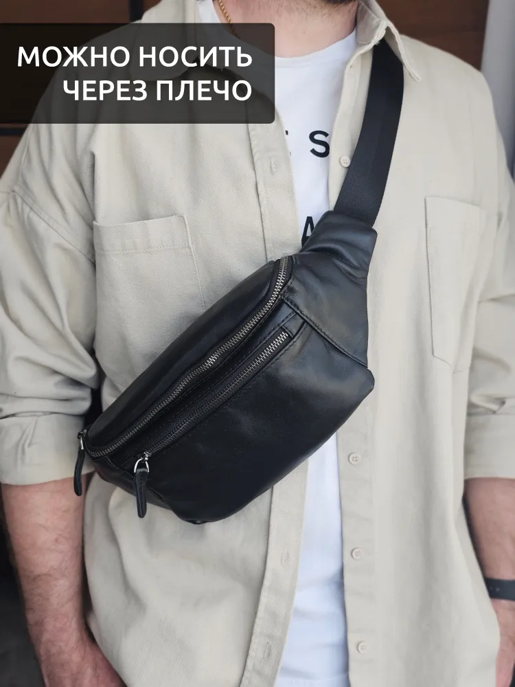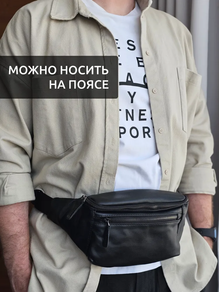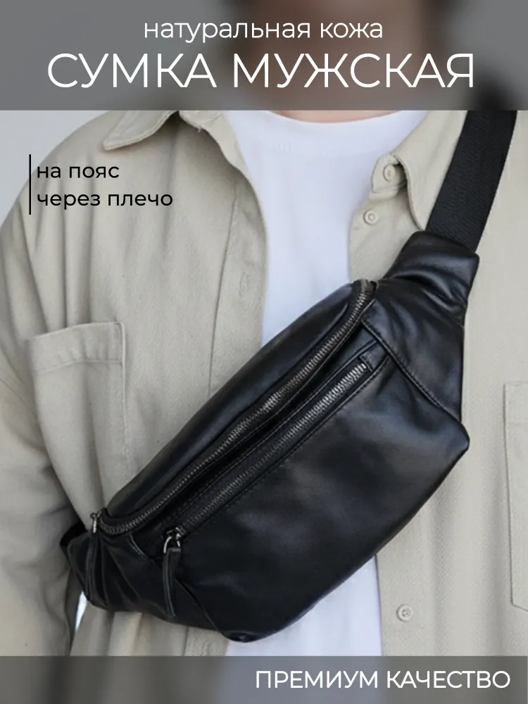 Сумка мужская через плечо кожаная поясная бананка