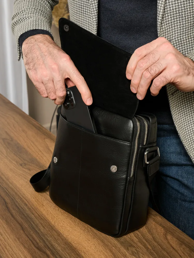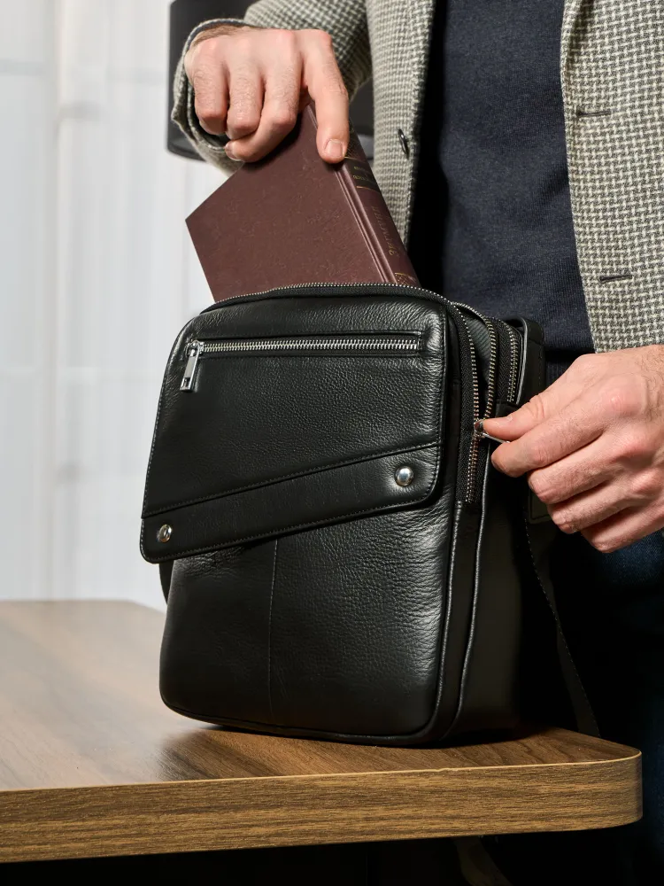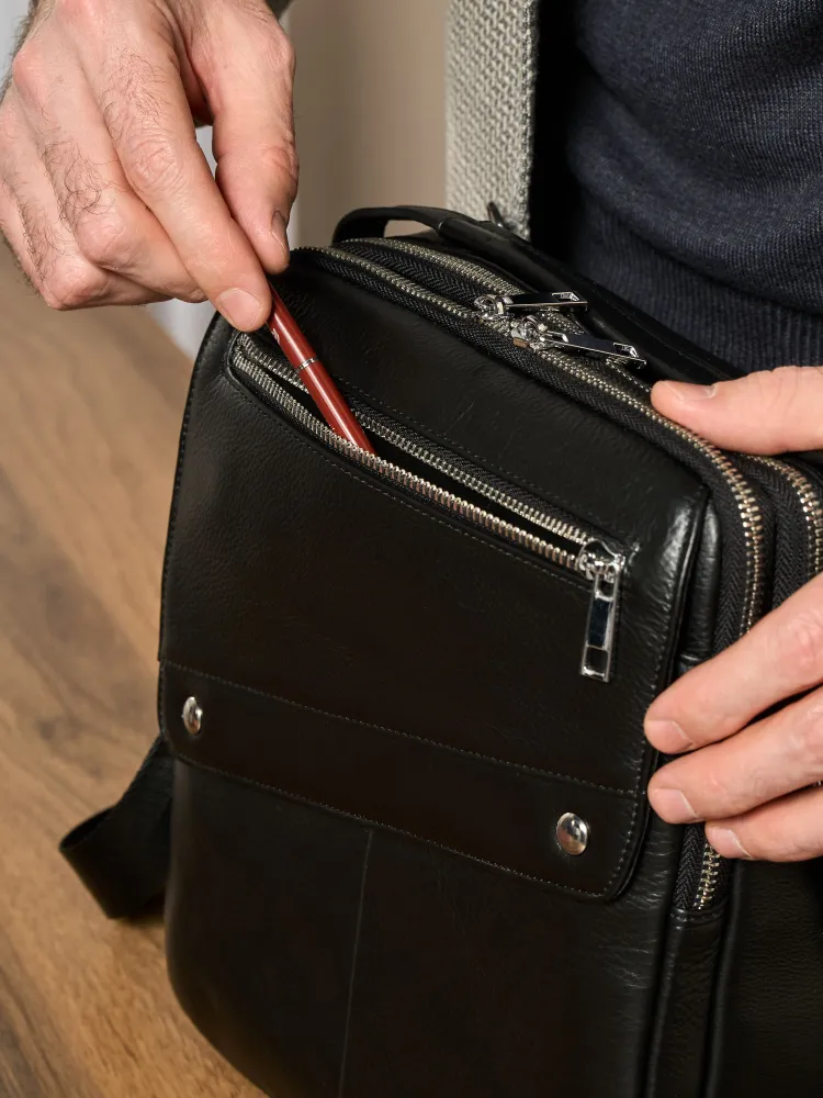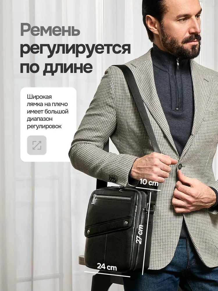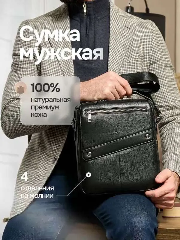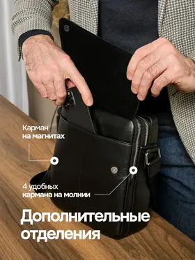 КАЧЕСТВО И СТИЛЬ Сумка мужская через плечо выполнена из натуральной кожи. Выполнена в классическом стиле и дополнит практически любой мужской образ. ДОПОЛНИТЕЛЬНЫЕ КАРМАНЫ С передней части расположен скрытый карман для хранения ценных вещей. ПРАКТИЧНОСТЬ Помимо основного вместительного отделения сумка для документов мужская имеет дополнительные карманы для хранения личных вещей. теперь нет необходимости сваливать все вещи в одну кучу, расположите их по разным отделениям.