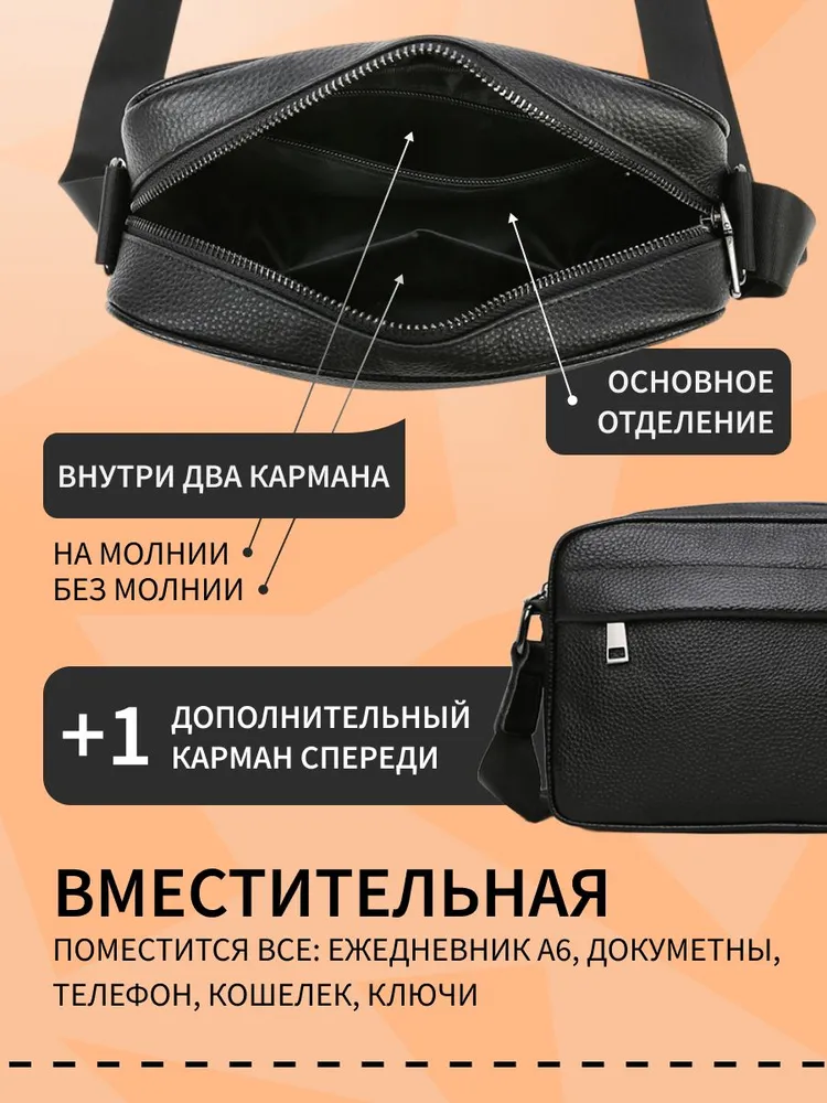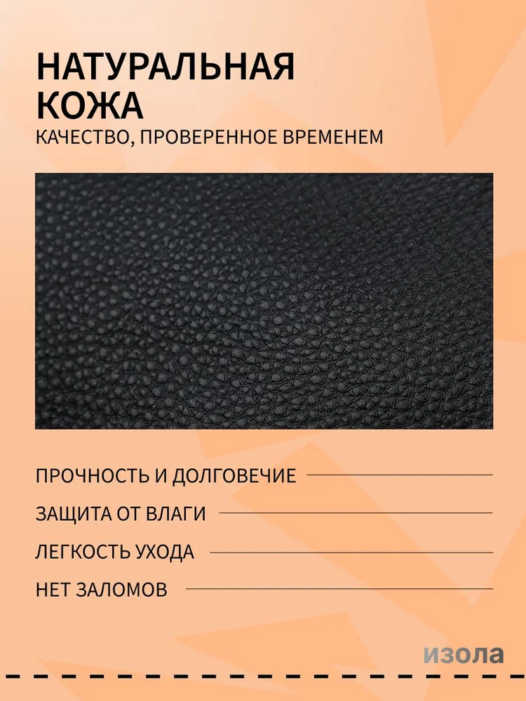 100% натуральная кожа - надёжность и долговечность Благодарим Вас за выбор сумки из натуральной кожи от ИЗОЛА Фэшн. Данное изделие изготовлено из 100% натуральной кожи коровы первого слоя, а это значит, что сумка прослужит Вам долго - кожа это один из самых износостойких материалов, она проста в уходе - загрязнение легко можно устранить влажной салфеткой. Компактная... Сумка имеет компактные внешние размеры 24х16х7 см. ...и вместительная При этом она довольно вместительная и функциональная - посмотрите видеообзор в карточке - сколько всего помещается в сумку. За счет того, что она имеет одно большое отделение, в сумку можно поместить более габаритные вещи. Лёгкость Сумка не будет стеснять Вас, ведь она очень легкая и компактная. Вес изделия - 365 граммов. Не боится воды Изделия из натуральной кожи гораздо меньше подвержены воздействию осадков, чем из текстиля - Вы можете быть спокойны за сохранность Ваших вещей. Стиль Сумка изготовлена с учетом современных тенденций, при этом сохраняет классический дизайн, что позволит Вам всегда оставаться актуальным, и чувствовать себя уверенно в любой ситуации - на деловой встрече, в путешествии, на прогулке.