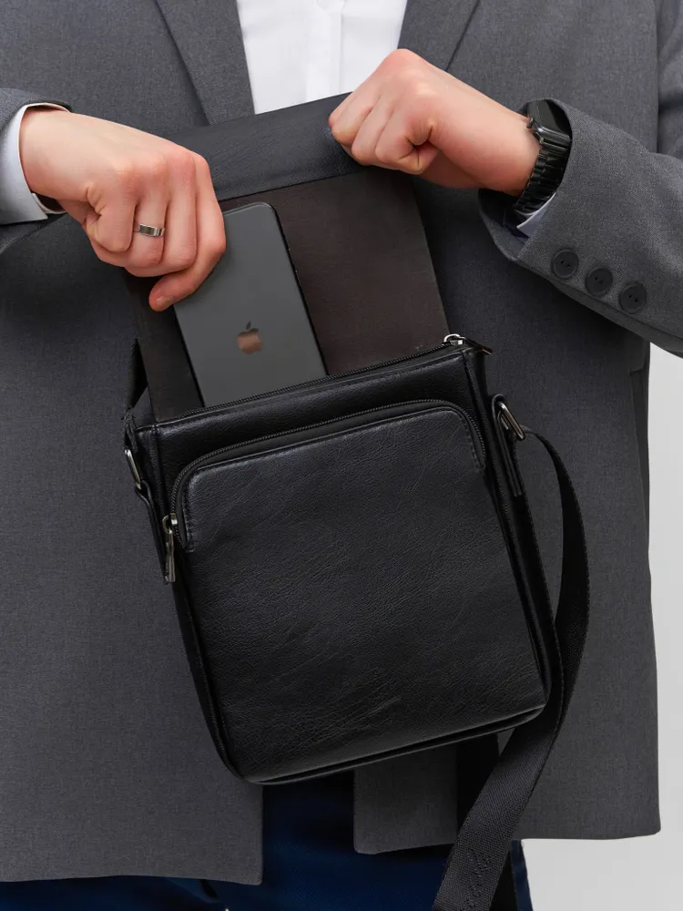 Сумка мужская через плечо выполнена из натуральной телячьей кожи и мягкой экокожи премиум-класса.Барсетка мужская из натуральной кожи это преимущества в виде неприхотливости в уходе, универсальности, популярности и долговечности. Сумка через плече это классическая сумка в офис, на работу, прогулку, каждый деньНаплечный ремень обладает надежной фурнитурой, что позволит пользоваться сумкой для мужчин из натуральной кожи долгое время. Мужские кросс боди сумки гармонично подчеркивают деловой статус, а так же подходят к повседневному стилю одежды на прогулке и в путешествиях. В автомобиле сумка планшет станет незаменимым предметом для водителей - вы теперь не забудете документы, кошелек, телефон и ключи от машины. Сумка через плечо хорошо подойдет в школу для учебы или в институт. Сумка кросс боди будет отличным подарком вашим близким и любимым мужчинам на день рождение, 23 февраля или Новый год. Мужская кожаная сумка на плечо упакована в чехол для дополнительной защиты при транспортировке. В нашем магазине присутствует ассортимент из нескольких сумок. Дорожная сумка, кроссбоди школьная, барсетка на учебу, сумочка для телефона, сумочки для планшета, барсетка кожаная для документов, мужские кроссбоди, барсетки для школы, подарок мужчине.