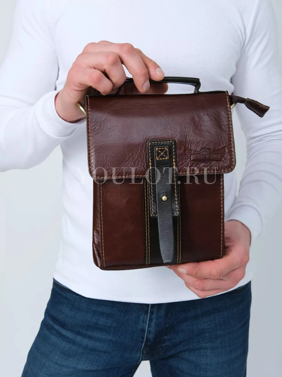 Сумка изготовлена из качественной натуральной кожи, которая гарантирует долговечность и солидный внешний вид. Прочная текстильная подкладка увеличивает срок службы аксессуара. Регулируемый ремень длиной от 80 до 160 см можно полностью отсоединить, превратив сумку в элегантный планшет с удобной верхней ручкой.