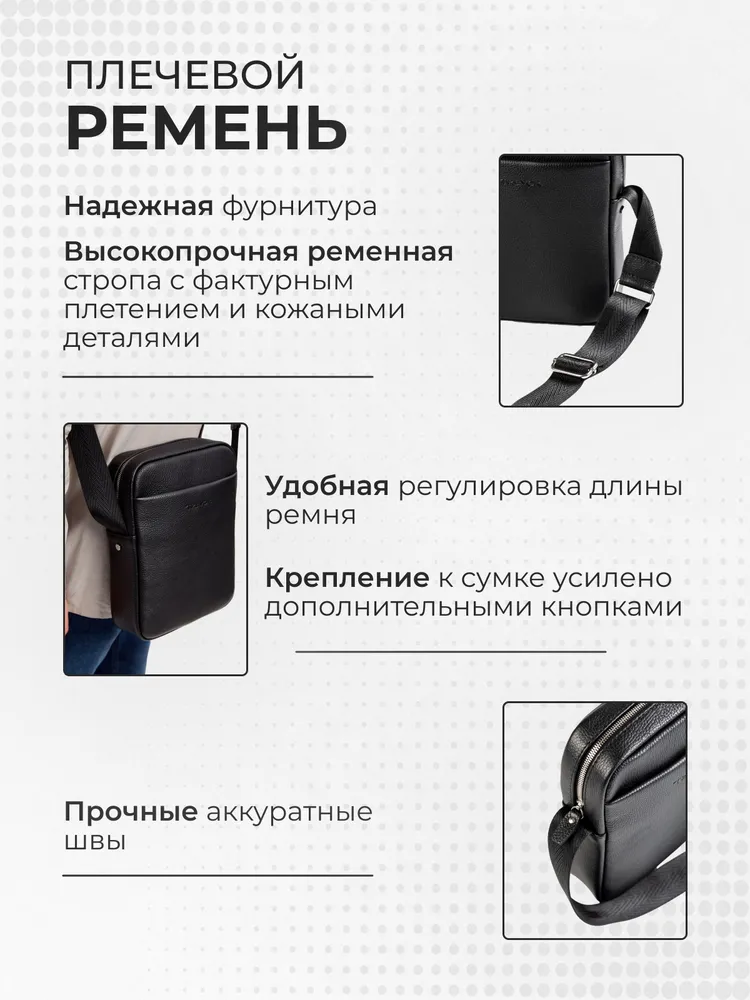Представляем вашему вниманию стильную мужскую сумку через плечо, выполненную из качественной натуральной кожи. Эта сумка отлично подойдет для повседневного использования, сочетая в себе функциональность и элегантный внешний вид. Изготовленная из прочного материала, она гарантирует долговечность и сохраняет свой первозданный вид даже после продолжительного использования. Кожаная текстура добавляет сумке особого шарма, а классический черный цвет делает её универсальным аксессуаром. Сумка на плечо обладает оптимальными размерами, что позволяет разместить в ней все необходимые вещи. Эргономичный дизайн и регулируемый ремень обеспечивают комфорт при носке, а возможность носить её как на плече, так и кроссбоди добавляет практичности в использование. Эта барсетка идеально подойдет как для деловой атмосферы, так и для неформальных встреч с друзьями. Стильный аксессуар станет отличным дополнением к вашему образу, подчеркнув чувство стиля и индивидуальность. Выбирая сумку через плечо из натуральной кожи, вы получаете качественный продукт, который будет радовать вас своим видом и функциональностью на протяжении долгого времени. Не упустите возможность стать обладателем этой элегантной и практичной сумки, способной удовлетворить все ваши потребности.