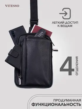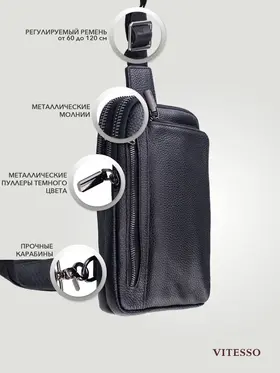 Сумка мужская через плечо VITESSO с металлическими пуллерами кожаная для документов мессенджер