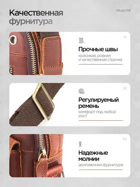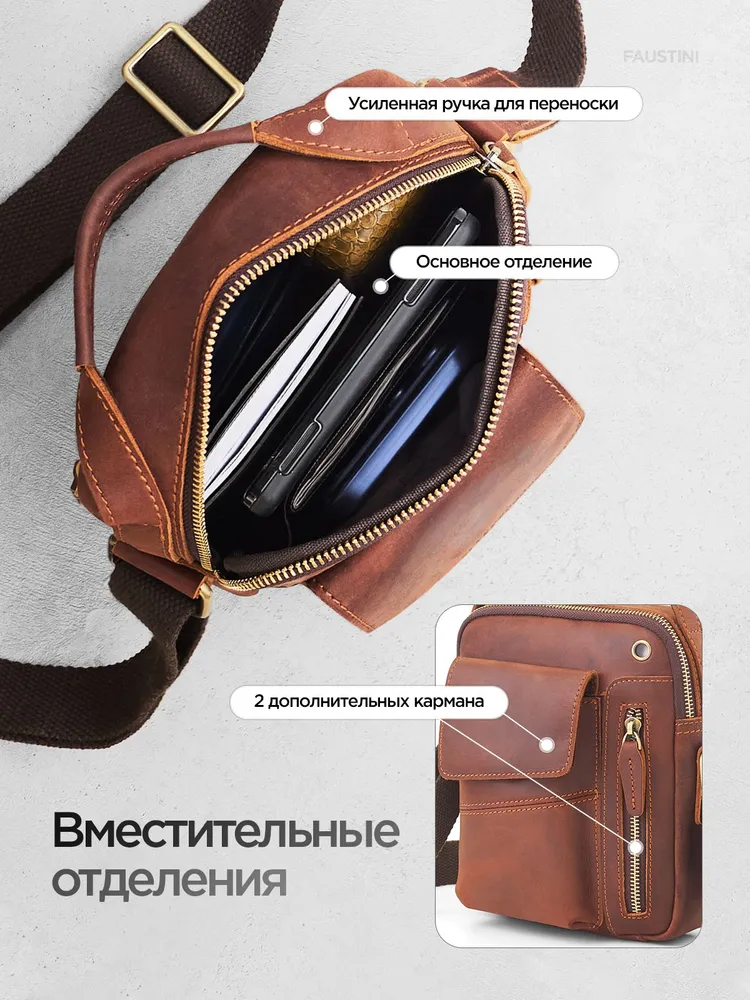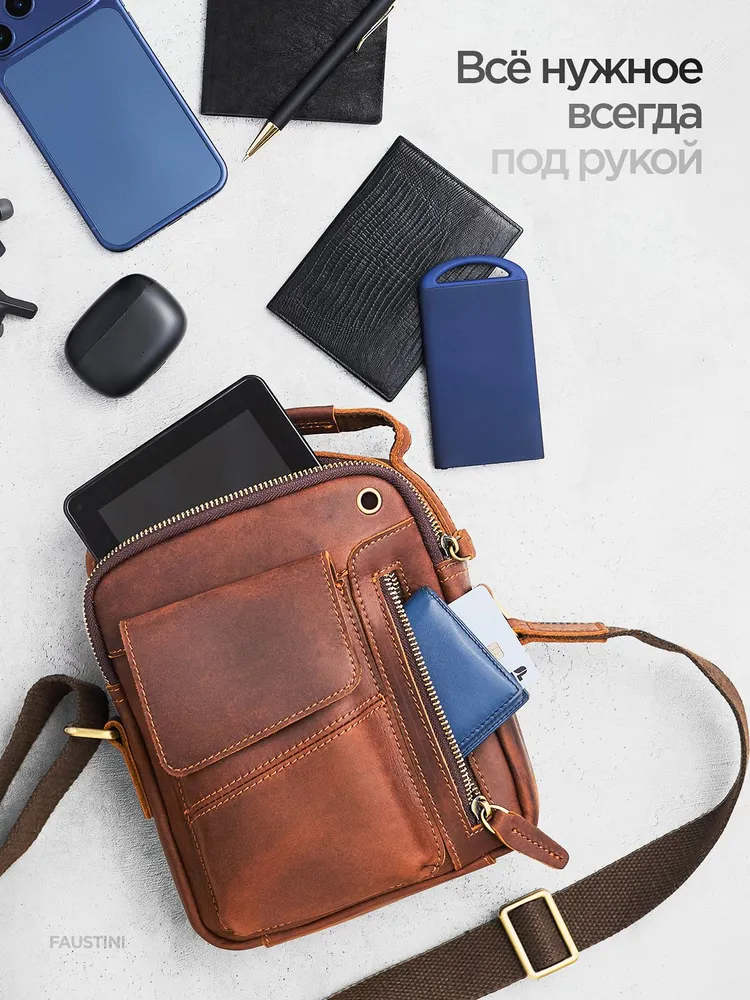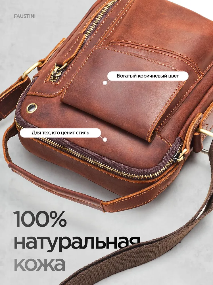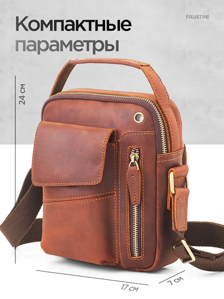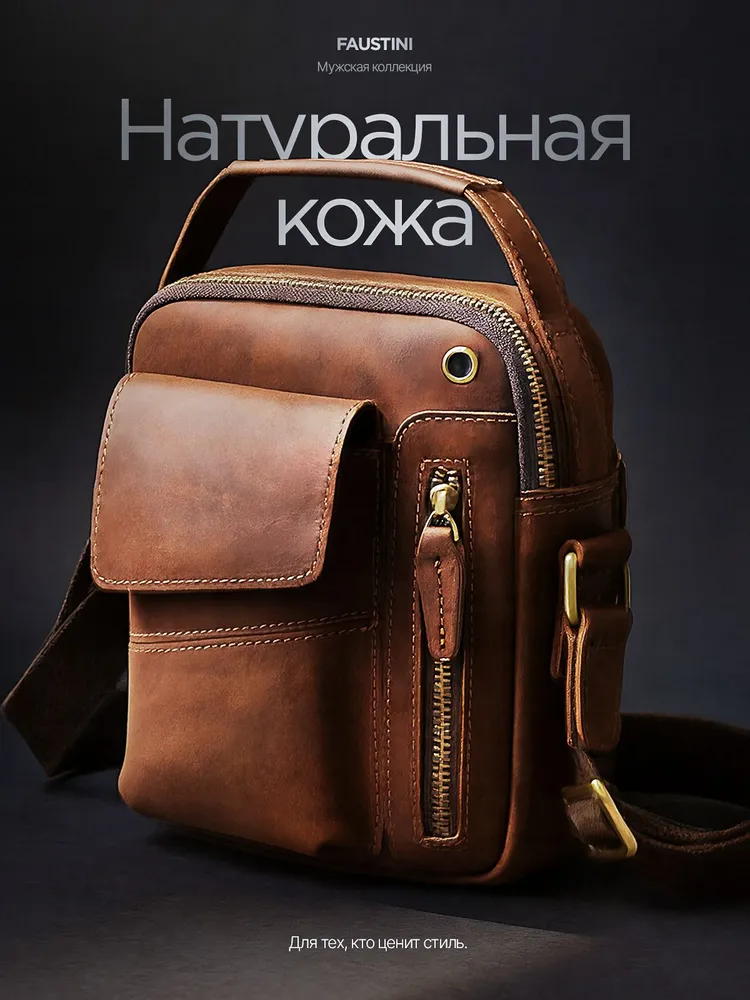 Сумка через плечо кожаная Faustini Представляем вашему вниманию стильную и практичную сумку мужскую через плечо кожаную от Faustini! Эта модель идеально подходит для тех, кто ценит удобство и элегантность в одном аксессуаре. Сумка изготовлена из высококачественной натуральной кожи, что гарантирует её долговечность и устойчивость к износу. Эта сумка через плечо мужская подходит для повседневного использования, деловых встреч или путешествий. Регулируемый плечевой ремень обеспечивает комфорт ношения, позволяя подстроить аксессуар под любой рост и предпочтения. Кожаная мужская сумка легко сочетается с любым стилем одежды – от делового костюма до casual-образа. Преимущества сумки мужской кожаной от Faustini: - Высококачественная натуральная кожа - Продуманный функциональный дизайн с несколькими отделениями - Регулируемый плечевой ремень для максимального комфорта - Элегантный внешний вид, подчёркивающий индивидуальный стиль Габариты: ширина 18 см, высота 21 см. Эта барсетка мужская через плечо станет отличным выбором для современных мужчин, ценящих качество и практичность. Сумка Faustini – это не просто аксессуар, это отражение вашего стиля и статуса. Благодаря своему универсальному дизайну, она станет незаменимым помощником в любых обстоятельствах и подчеркнёт вашу индивидуальность. Дарите себе и близким качественные вещи, которые будут радовать долгие годы.