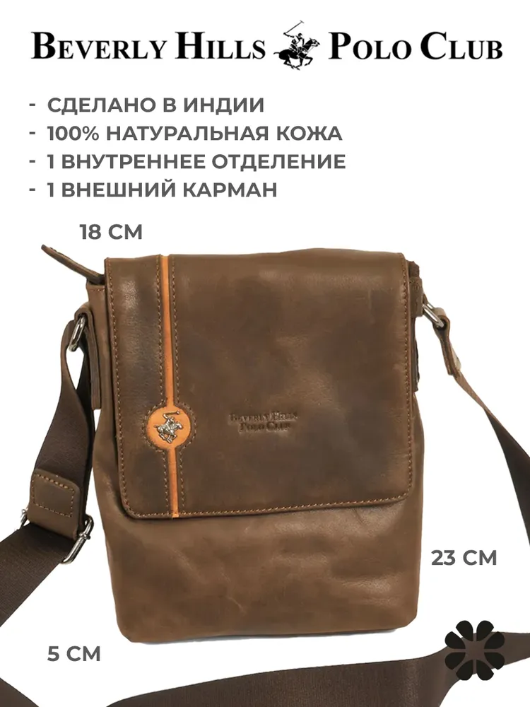 Сумка мужская кожаная дорожная из натуральной кожи Beverly Hills Polo Club, BH-383-MO