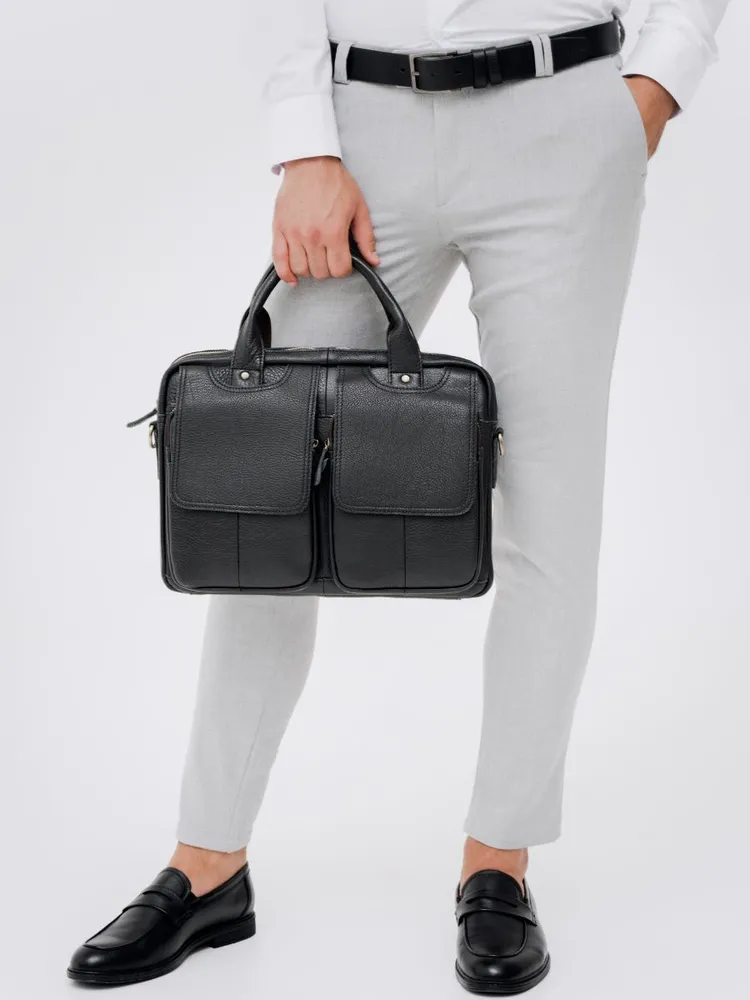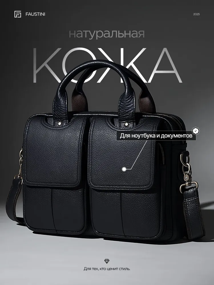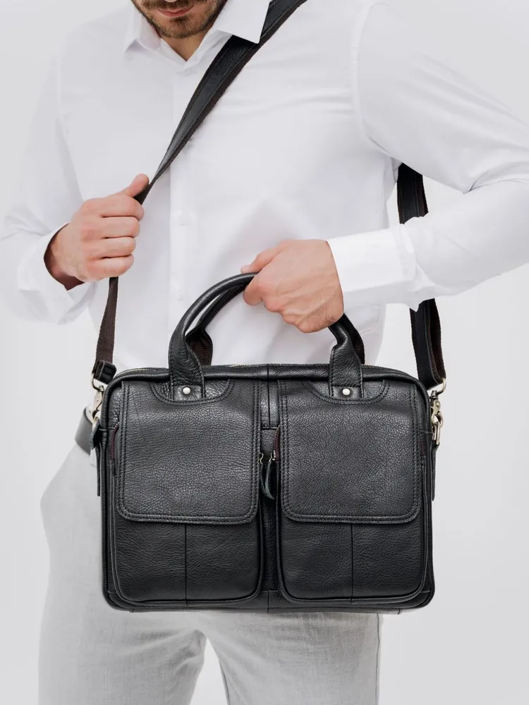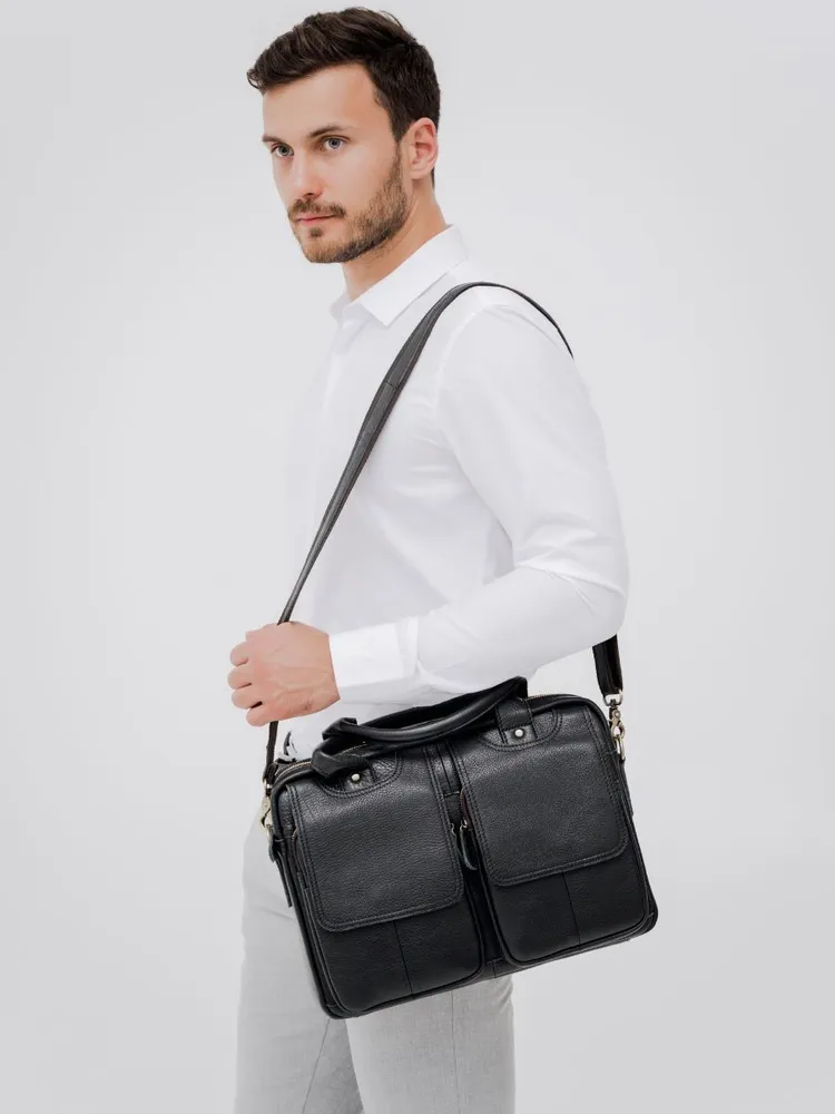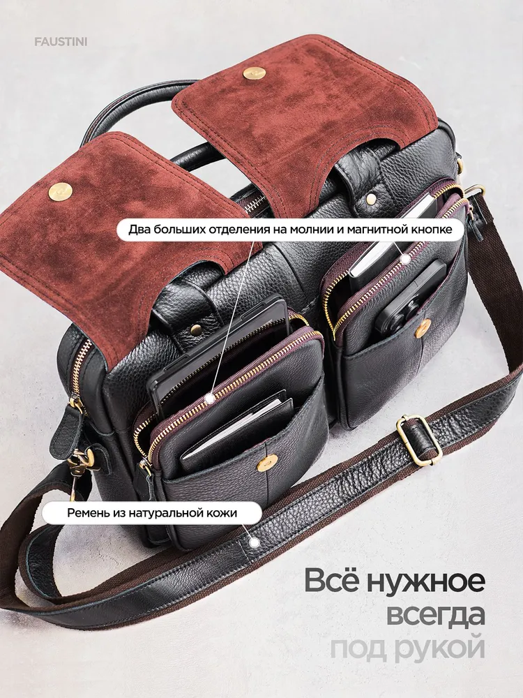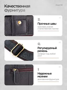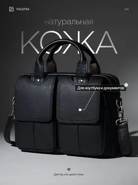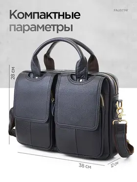 Сумка мужская кожаная Faustini Dream Представляем вашему вниманию стильную и практичную кожаную мужскую сумку для документов формата A4 и ноутбука до 14 дюймов. Эта сумка станет идеальным спутником для деловых встреч, поездок и повседневного использования, сочетая в себе элегантный дизайн и функциональность. Изготовленная из высококачественной кожи, эта модель не только выглядит роскошно, но и обещает долговечность в использовании. Прочный материал защищает ваши документы и аксессуары от внешних воздействий, сохраняя их в идеальном состоянии. Ваши рабочие бумаги и личные вещи всегда будут под надежной защитой. Сумка имеет удобные ручки и дополнительно оснащена длинным ремнем, что позволяет носить её как в руке, так и на плече. Это делает её универсальной и удобной в повседневной эксплуатации, а стильный дизайн подойдет как для офисной среды, так и для деловых встреч. Она станет отличным дополняющим элементом вашего образа. Почему стоит выбрать эту сумку? - Удобство: Идеально подходит для деловых людей, студентов и всех, кто ценит порядок и стиль. - Качество: Высококачественные материалы и тщательная обработка гарантируют долговечность и надежность. - Стиль: Элегантный внешний вид делает сумку отличным дополнением к любому образу. Не упустите возможность приобрести эту кожаную мужскую сумку от бренда FAUSTINI DREAM и подчеркнуть свой стиль и статус!