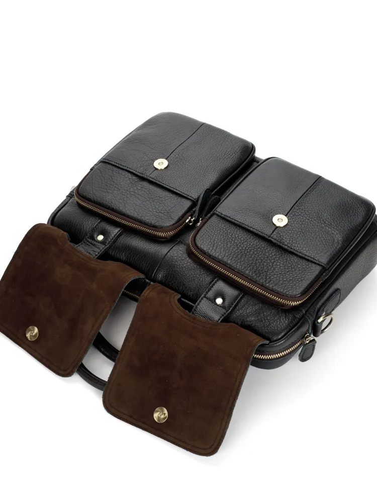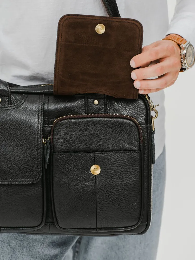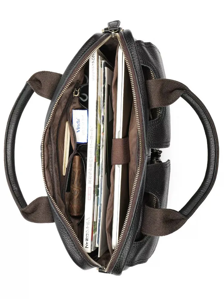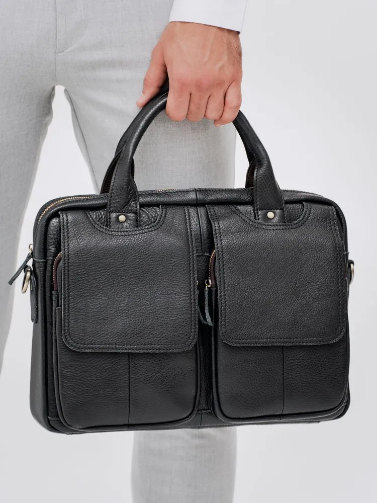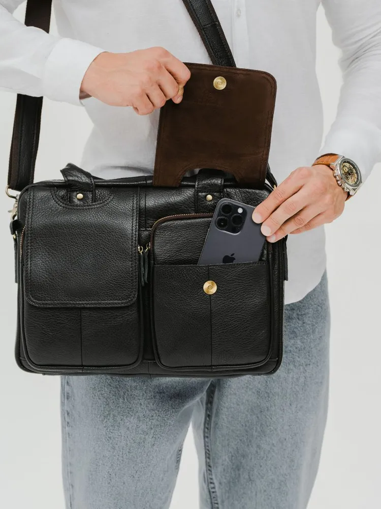 Сумка мужская кожаная Faustini Dream Представляем вашему вниманию стильную и практичную кожаную мужскую сумку для документов формата A4 и ноутбука до 14 дюймов. Эта сумка станет идеальным спутником для деловых встреч, поездок и повседневного использования, сочетая в себе элегантный дизайн и функциональность. Изготовленная из высококачественной кожи, эта модель не только выглядит роскошно, но и обещает долговечность в использовании. Прочный материал защищает ваши документы и аксессуары от внешних воздействий, сохраняя их в идеальном состоянии. Ваши рабочие бумаги и личные вещи всегда будут под надежной защитой. Сумка имеет удобные ручки и дополнительно оснащена длинным ремнем, что позволяет носить её как в руке, так и на плече. Это делает её универсальной и удобной в повседневной эксплуатации, а стильный дизайн подойдет как для офисной среды, так и для деловых встреч. Она станет отличным дополняющим элементом вашего образа. Почему стоит выбрать эту сумку? - Удобство: Идеально подходит для деловых людей, студентов и всех, кто ценит порядок и стиль. - Качество: Высококачественные материалы и тщательная обработка гарантируют долговечность и надежность. - Стиль: Элегантный внешний вид делает сумку отличным дополнением к любому образу. Не упустите возможность приобрести эту кожаную мужскую сумку от бренда FAUSTINI DREAM и подчеркнуть свой стиль и статус!