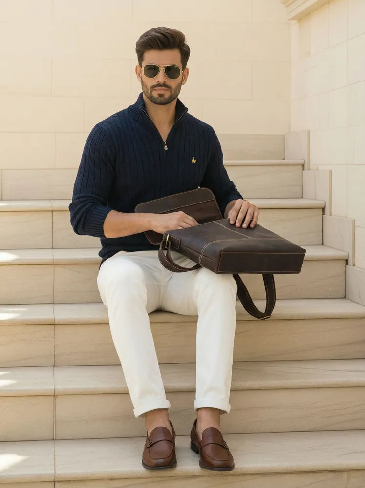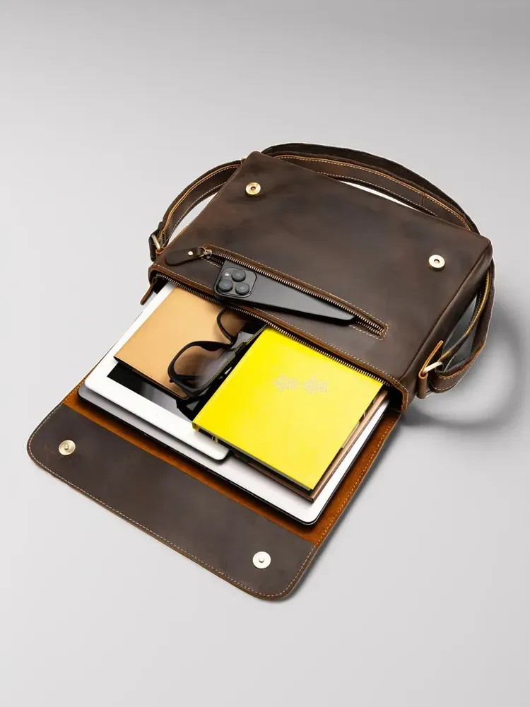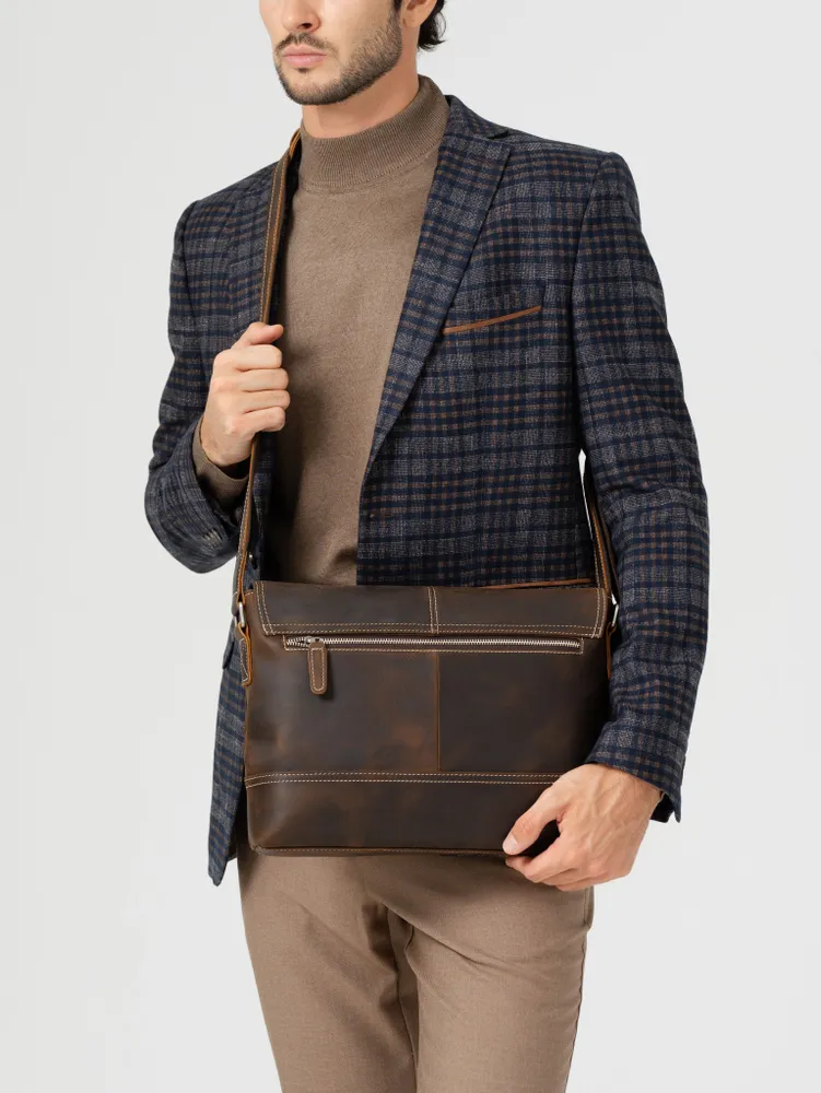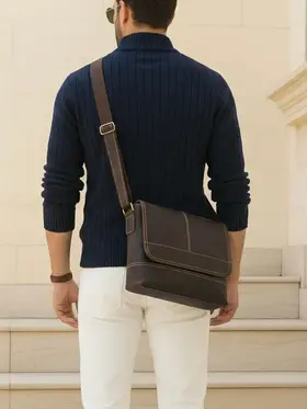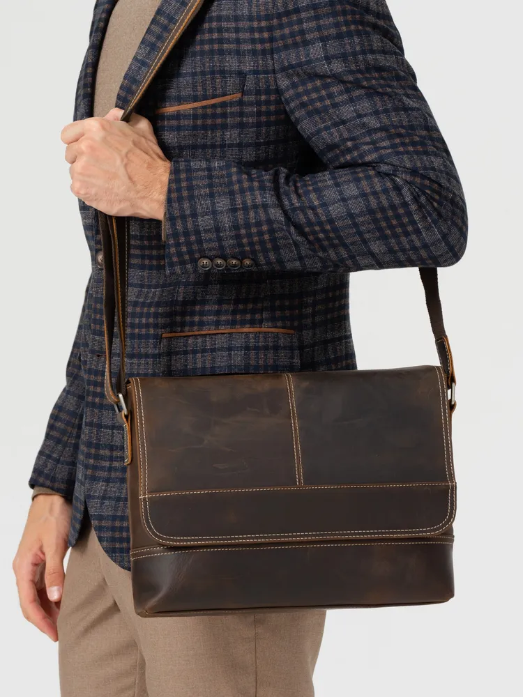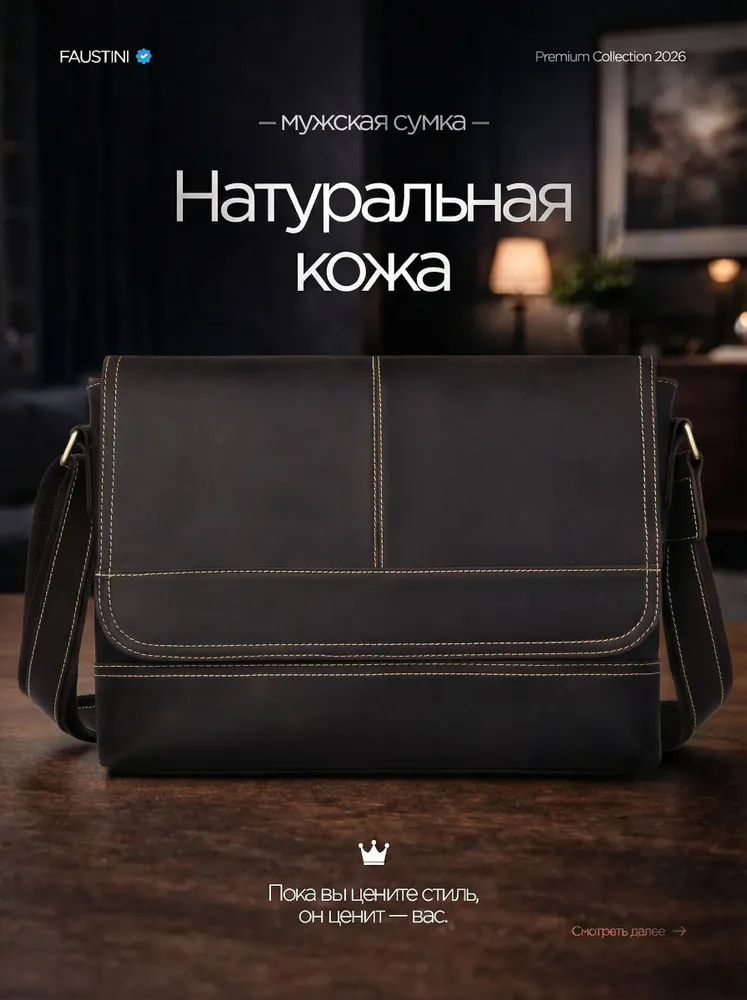 Сумка мужская кожаная для документов Faustini Сумка мужская кожаная для документов A4 изготовлена из высококачественной натуральной кожи премиум класса в эксклюзивном дизайне. Выбирая бренд FAUSTINI - вы выбираете качество, роскошный и неповторимый стиль. Разрешите себе использовать надежные аксессуары премиального бренда FAUSTINI, которые будут служить вам долгие годы. Кожаная сумка мужская легко вмещает документы формата А4 и ноутбука до 15 дюймов. Внутри прочная тканевая подкладка, два основных отделения, разделенных перегородкой на молнии. Также имеется два открытых кармана на передней стенке. На обратной стороне сумки для ноутбука расположен довольно большой карман на молнии. В комплект входит регулируемый по длине ремень. Достойный подарок мужчине на любой праздник!