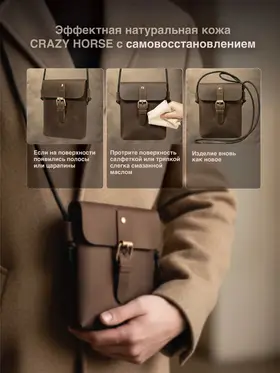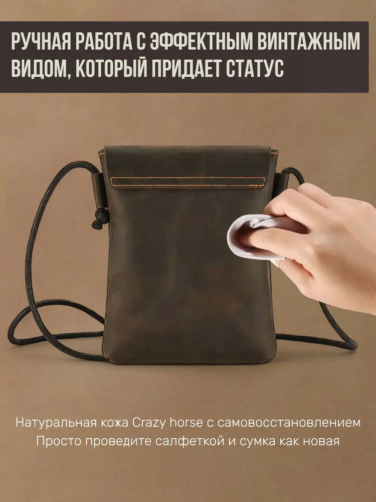 Стиль и качество. Эта сумка не просто аксессуар, это стильная и удобная вещь, которая станет незаменимым помощником в повседневной жизни. Сумка выполнена вручную из натуральной долговечной кожи crazy horse и является настоящим предложением для мужчин, которые ценят практичность, качество и стиль. Удобная форма. Сумка подходит для любых случаев - от повседневной носки до мини путешествий. Благодаря регулируемому поясному ремню, можно настроить сумку на любую высоту вашего тела. Прочная и долговечная. Сверхпрочная фурнитура гарантирует безопасность и сохранность ваших вещей. Компактная сумка поможет вам держать все в порядке и быстро находить нужные вещи, например, ключи, смартфон или бумажник, находясь при этом за рулем в машине или катаясь на велосипеде. Ваш комфорт и надежность. Мужская сумка клатч изготовлена из натуральной кожи, что делает ее не только прочной и долговечной, но и экологически безопасной. Благодаря качественному материалу и обработки crazy horse, сумка с каждым годом приобретает еще более дорогой вид. Модная. Удобная. Отличный презент! Сумка мессенджер - это универсальный аксессуар, который подойдет как для мужчин, так и для подростков и молодежи. Выбирая нашу сумку, вы получаете универсальный и модный аксессуар на все случаи жизни. Вы можете использовать сумку как повседневно, так и в качестве презента коллегам, а также важным или близким вам людям. Добро пожаловать в наш магазин бренда TECUM! Все наши изделия выполнены из качественных материалов, а также из натуральной кожи высокого качества и прошли все этапы сертификации. Кликайте на фото, заходите к нам на страничку и выбирайте подходящие для вас или ваших близких аксессуары нашего магазина под ваш стиль жизни. Носите с удовольствием наши изделия! Спасибо за выбор нашего магазина. Ваш бренд TECUM!