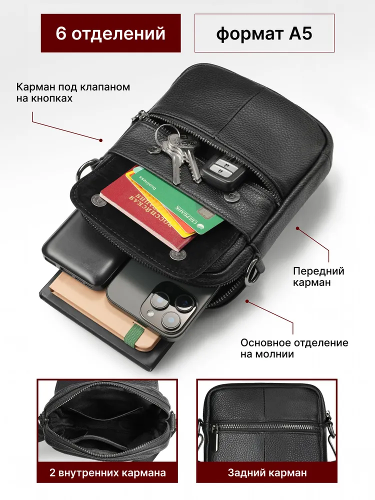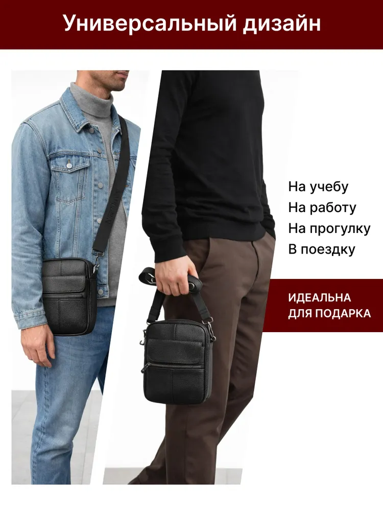 Стиль и качество. Эта сумка не просто аксессуар, это стильная и удобная вещь, которая станет незаменимым помощником в повседневной жизни. Сумка выполнена из натуральной кожи Premium качества и является настоящим предложением для мужчин, которые ценят практичность, качество и стиль. Комфортная форма. Сумка подходит для любых случаев - от повседневной носки до особых мероприятий. Благодаря регулируемому поясному ремню, можно настроить сумку на любую высоту вашего тела. Надежная и долговечная. Прочная фурнитура гарантирует безопасность и сохранность ваших вещей. Компактная и вместительная сумка состоит из 6 отделений, которые помогут держать все вещи в порядке и быстро находить нужные вещи, находясь при этом за рулем в машине или передвигаясь по городу. Практичная. Выбирая нашу сумку, вы получаете универсальный и модный аксессуар на все случаи жизни. Удобная. Отличный презент! Сумка мессенджер - это универсальный аксессуар на все случаи жизни. Вы можете использовать сумку как повседневно, так и в качестве презента коллегам, а также важным или близким вам людям. Добро пожаловать в наш магазин бренда TECUM! Все наши изделия выполнены из качественных материалов, а также из натуральной кожи высокого качества и прошли все этапы сертификации. Кликайте на фото, заходите к нам на страничку и выбирайте подходящие для вас или ваших близких аксессуары нашего магазина под ваш стиль жизни. Носите с удовольствием наши изделия! Спасибо за выбор нашего магазина. Ваш бренд TECUM!