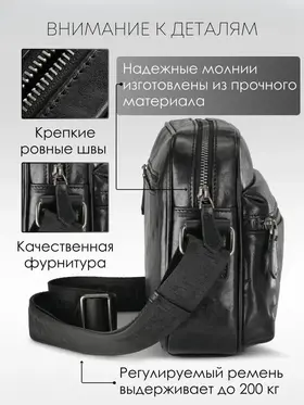 Стиль и качество. Эта сумка не просто аксессуар, это стильная и удобная вещь, которая станет незаменимым помощником в повседневной жизни. Сумка выполнена вручную из натуральной долговечной кожи и является настоящим предложением для мужчин, которые ценят практичность, качество и стиль. Удобная форма. Сумка подходит для любых случаев - от повседневной носки до мини путешествий. Благодаря регулируемому ремню, можно настроить сумку на любую высоту вашего тела. Прочная и долговечная. Сверхпрочная фурнитура гарантирует безопасность и сохранность ваших вещей. Компактная сумка поможет вам держать все в порядке и быстро находить нужные вещи, например, ключи, смартфон или бумажник, находясь при этом за рулем в машине или катаясь на велосипеде. Ваш комфорт и надежность. Мужская сумка изготовлена из натуральной кожи, что делает ее не только прочной и долговечной, но и экологически безопасной. Благодаря качественному материалу и обработки, сумка с каждым годом приобретает еще более дорогой вид. Модная. Удобная. Отличный презент! Сумка мессенджер - это универсальный аксессуар, который подойдет как для мужчин, так и для подростков и молодежи. Выбирая нашу сумку, вы получаете универсальный и модный аксессуар на все случаи жизни. Вы можете использовать сумку как повседневно, так и в качестве презента коллегам, а также важным или близким вам людям. Добро пожаловать в наш магазин бренда TECUM! Все наши изделия выполнены из качественных материалов, а также из натуральной кожи высокого качества и прошли все этапы сертификации. Кликайте на фото, заходите к нам на страничку и выбирайте подходящие для вас или ваших близких аксессуары нашего магазина под ваш стиль жизни. Носите с удовольствием наши изделия! Спасибо за выбор нашего магазина. Ваш бренд TECUM!