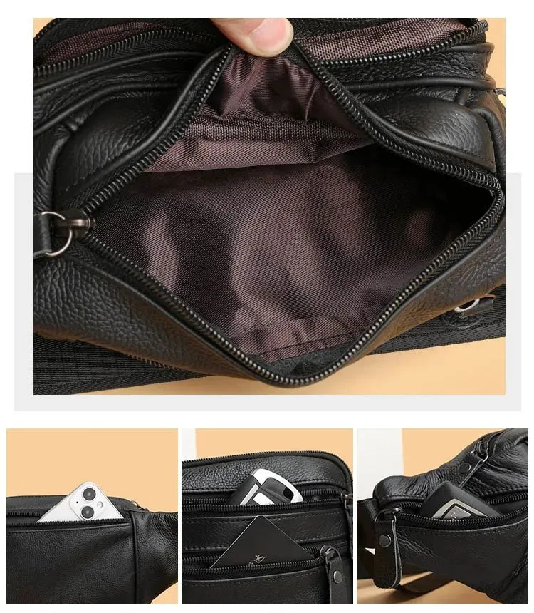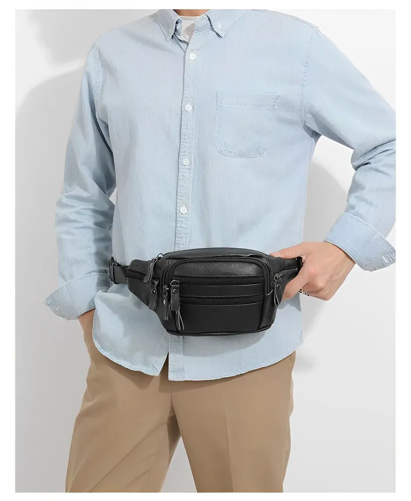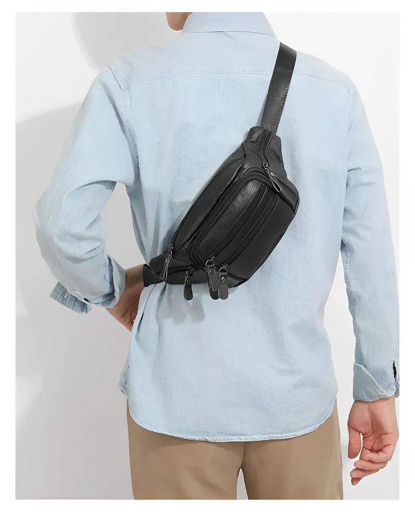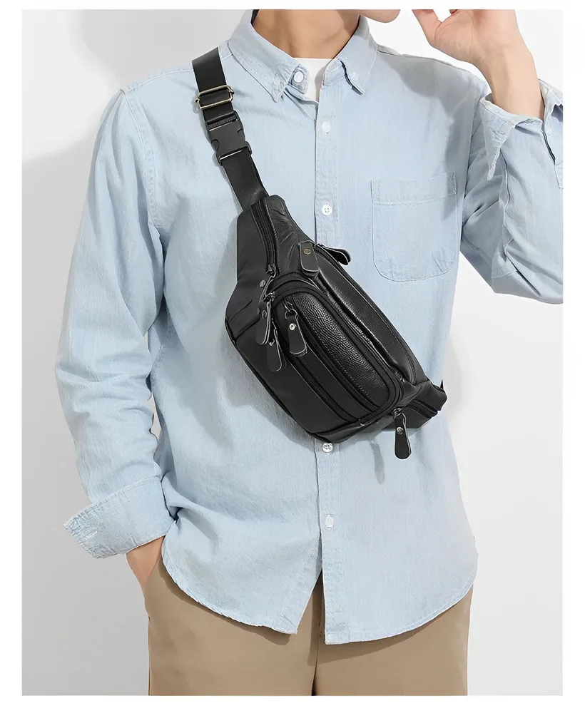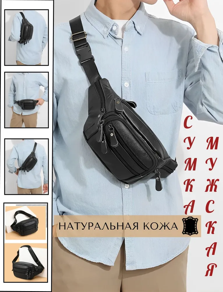 Элегантная и практичная мужская сумка-бананка из натуральной кожи станет неотъемлемой частью вашего повседневного образа. Этот стильный аксессуар выполнен в классическом черном цвете и имеет три удобных варианта носки: на поясе, через плечо или на плече. Сумка изготовлена из 100% натуральной кожи, что гарантирует ее прочность и долговечность. Благодаря качественной фурнитуре, крепким карабинам и регулируемому поясному ремню, вы сможете настроить сумку под свои индивидуальные предпочтения. Молния плавно застегивается, обеспечивая легкий доступ к вашим вещам, а специальный карман-антивор сзади гарантирует безопасность ценностей. Ее размеры (15 в высоту, 30 в ширину и 5 в глубину)позволят вам комфортно разместить все необходимое для ежедневного использования. Влагонепроницаемая водоотталкивающая пропитка и износостойкий материал обеспечат защиту ваших вещей в любых погодных условиях.Эта мужская сумка-бананка из натуральной кожи станет прекрасным подарком для ваших друзей, родственников или коллег. Отличный подарок на майские праздники, 1 мая, 9 мая, день победы, пасху на новый год 23 февраля