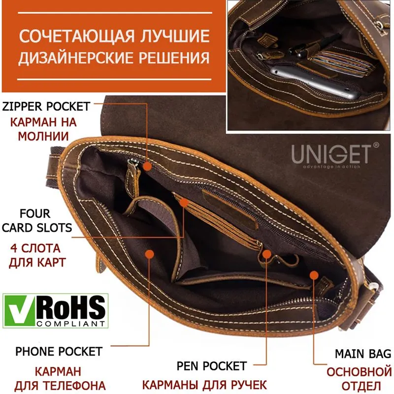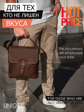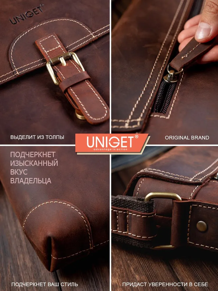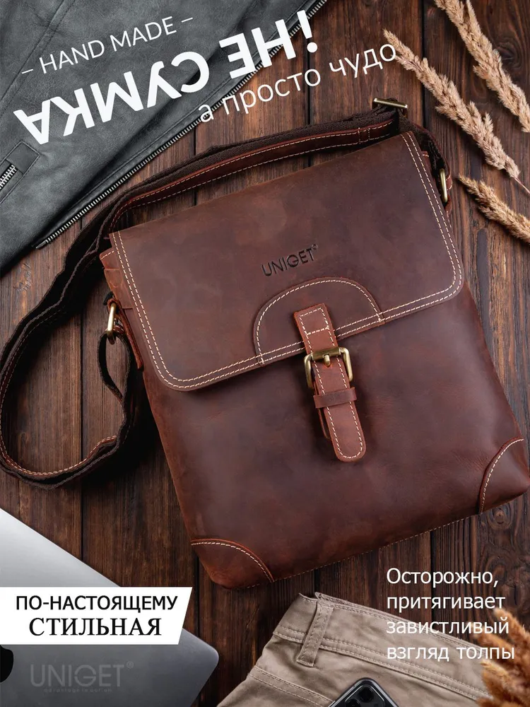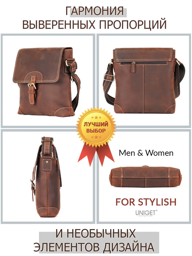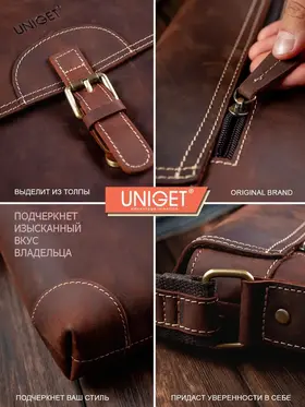 Стильная сумка UNIGET® из натуральной кожи Цените комфорт, стиль, лаконичность и натуральные материалы? Представляем вашему вниманию кожаную сумку-планшет в легком винтажном стиле. ✦ Компактная по своим размерам, она способна вместить все, что необходимо современному жителю мегаполиса и не только. Ее размеры 30х7х28 см позволят вам взять с собой важные документы и, конечно же, телефон и планшет – как без них? UNIGET® Официально зарегистрированный Торговый Знак ✦ Качественная сумка на плечо выполнена из натуральной кожи Crazy Horse высокой категории. Надежная отстрочка не порвется, поэтому ваш аксессуар долгие годы будет выглядеть так, словно вы только вчера его купили. ✦ В некоторых сумках часто протираются уголки. Мы обратили внимание на этот момент и дополнительно укрепили нижнюю часть этой сумки стильным накладным кожаным уголком. Получился дополнительный дизайнерский элемент и более надежная защита от появления дефектов. ✦ Нижняя и боковая часть сумки укреплена плотным швом, который не только все эффективно фиксирует, но и является декоративным элементом. ОСТЕРЕГАЙТЕСЬ ПОДДЕЛОК ПО НИЗКОЙ ЦЕНЕ BEWARE OF FAKES AT A LOW PRICE! ✦ Эту мужскую кожаную сумку удобно носить через плечо благодаря специальной обработке ремня дополнительной тканевой лентой из 100% хлопка. ✦ Соприкасаясь даже в жаркую погоду с обнаженными частями вашего тела, он не будет доставлять дискомфорт и портиться от влаги. ✦ Язычок небольшого закрывающего механизма тщательно укреплен. Он не оторвется и не повредится во время регулярного использования. ✦ Все элементы сумки ручной работы продуманы под ваши ожидания. ✦ Мы организовали в ней достаточно открытых и закрывающихся на молнии отделов, чтобы вы смогли комфортно для себя разместить все, что необходимо. ✦ Благодаря своему лаконичному стилю эта сумка подходит для мужчин и женщин. ✦ Покупая такую сумку унисекс на подарок, вы дарите не просто дизайнерское изделие, а качественный и надежный аксессуар, как пожелание стабильности и процветания. ✦ Не раздумывайте! Заказывайте прямо сейчас кожаную сумку через плечо UNIGET™, и уже через несколько дней она будет у вас! ОСТЕРЕГАЙТЕСЬ ПОДДЕЛОК ПО НИЗКОЙ ЦЕНЕ BEWARE OF FAKES AT A LOW PRICE!