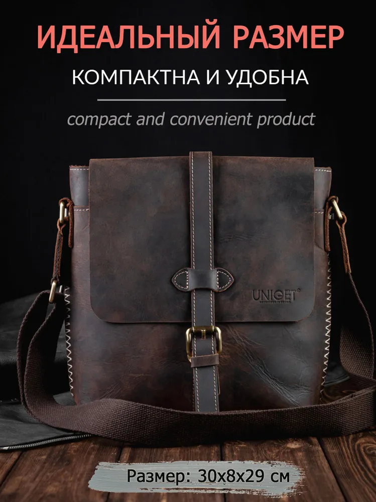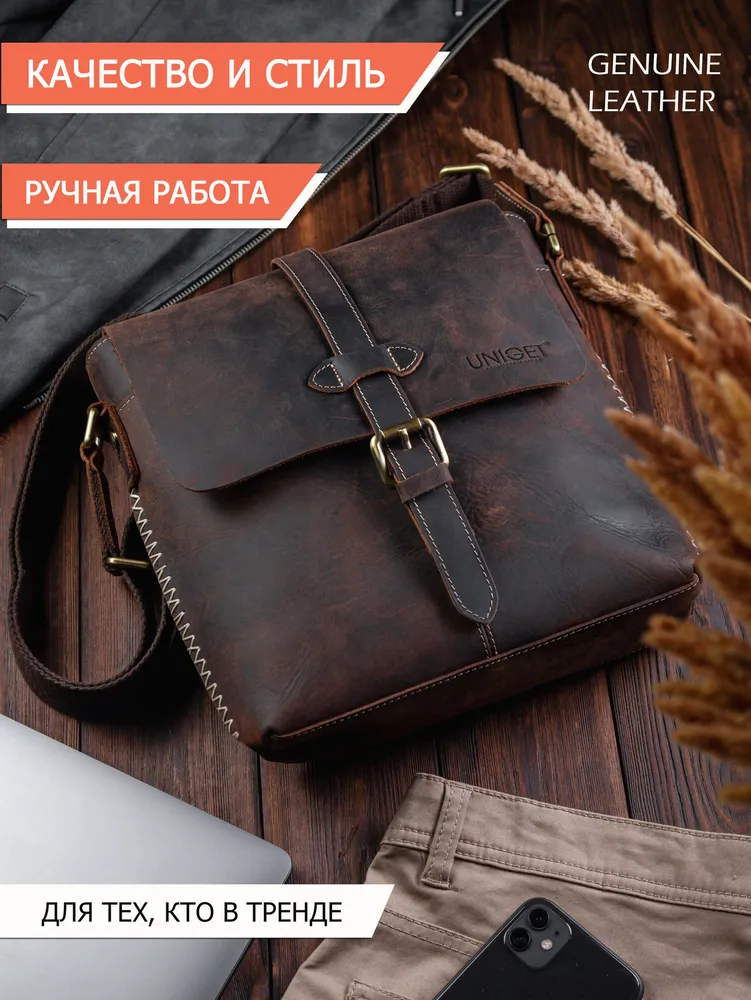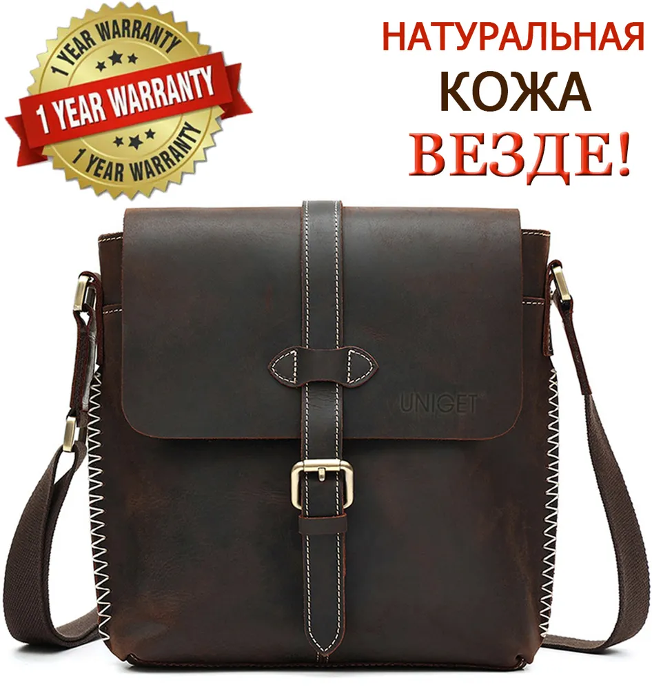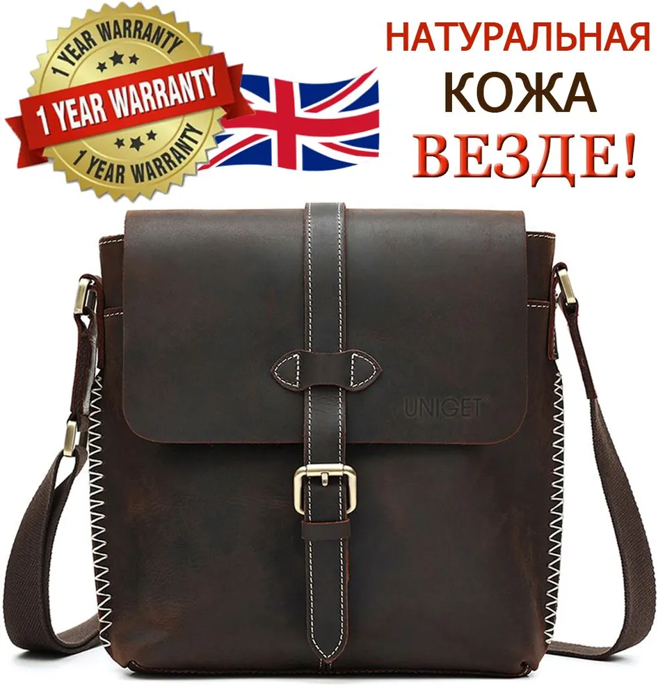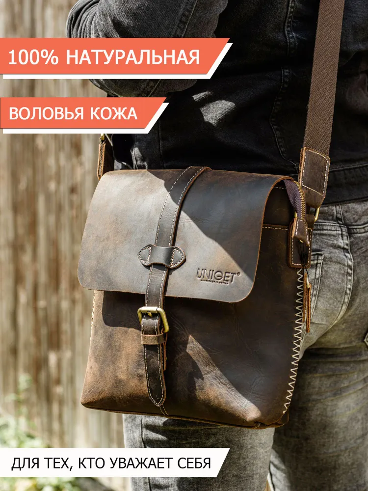 Сумка из натуральной кожи UNIGET® Ищите стильную, современную и эффектную сумку через плечо? Обратите внимание на модель ручной работы из натуральной кожи UNIGET® Универсальная ✦ В меру вместительная, но не громоздкая, она понравится, как мужчинам, так и женщинам. Особенно тем, кто ценит высокое качество материала, отделки и изысканный стиль. Удобная ✦ Сумка унисекс комплектуется тканевым ремнем с кожаными вставками, который легко регулируется под любой рост. ✦Имеет множество отделений под различные аксессуары. Натуральная кожа имеет приятную бархатистую текстуру. ✦ Практична в использовании. Вы всегда сможете ее легко привести в порядок с помощью сухой или влажной чистки. Стильная ✦ Эта качественная сумка планшет для из 100% натуральной кожи высокой выделки сохраняет форму и подчеркивает статус своего владельца. Ее комфортно брать с собой не только в офис и на деловые встречи, но и для прогулок по городу и загородных поездок. Вместительная ✦ Просто укомплектуйте эту дизайнерскую сумку необходимыми вам мелочами или документами, и все необходимое всегда будет у вас под рукой. Отличный подарок ✦ Благодаря своему универсальному размеру наша модная сумка UNIGET® подходит для мужчин и женщин. Наши покупатели активно выбирают ее как для личного пользования, так и в качестве желанного подарка. ОСТЕРЕГАЙТЕСЬ ПОДДЕЛОК ПО НИЗКИМ ЦЕНАМ BEWARE OF KNOCKOFFS AT LOW PRICES! Эффектная ✦ Уникальность модели и ее hand made происхождение подчеркивает стильная строчка, выделяющаяся на фоне кожи, из которой она изготовлена. Качественная ✦ При этом, обратите внимание, качество исполнения касается также внутренней подкладки и ее фурнитуры. ✦ Плотный и при этом не маркий материал позволит вам долго и с удовольствием использовать эту брендовую сумку. Она всегда будет как новая. Поместится все! ✦ Вместительность кожаной сумки-планшета представлена на фото. Если же вам важен точный размер изделия, спешим сообщить, что в закрытом виде высота сумки составляет 30 см., при этом ширина – 29 см. Подойдет каждому ✦ Вы можете прямо сейчас измерить гаджеты и документы, которые планируете часто брать с собой и убедиться, что мужская сумка UNIGET® идеально вам подходит. Покупка, которая не разочарует Закажите ее с доставкой прямо сейчас, и уже через несколько дней стильная мужская сумка на плечо станет частью вашего стильного образа! НЕ ВСЕ СУМКИ ОДИНАКОВЫЕ, ВЫБИРАЙТЕ ЛУЧШЕЕ! UNIGET®
