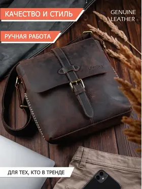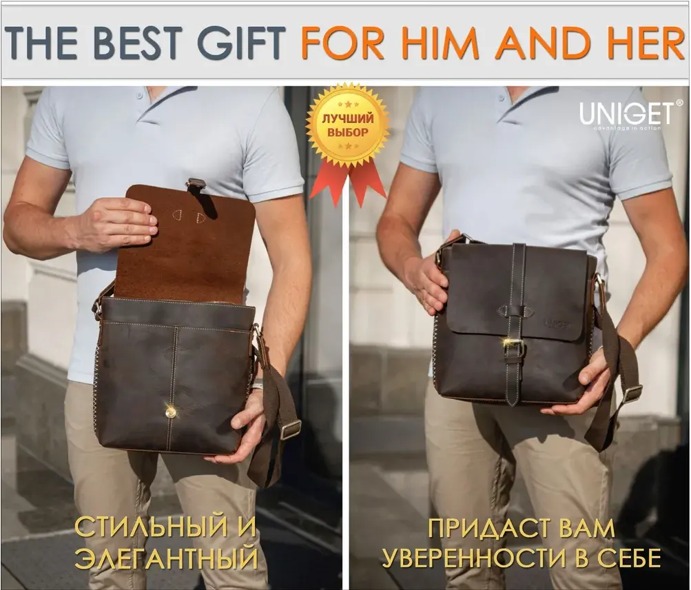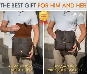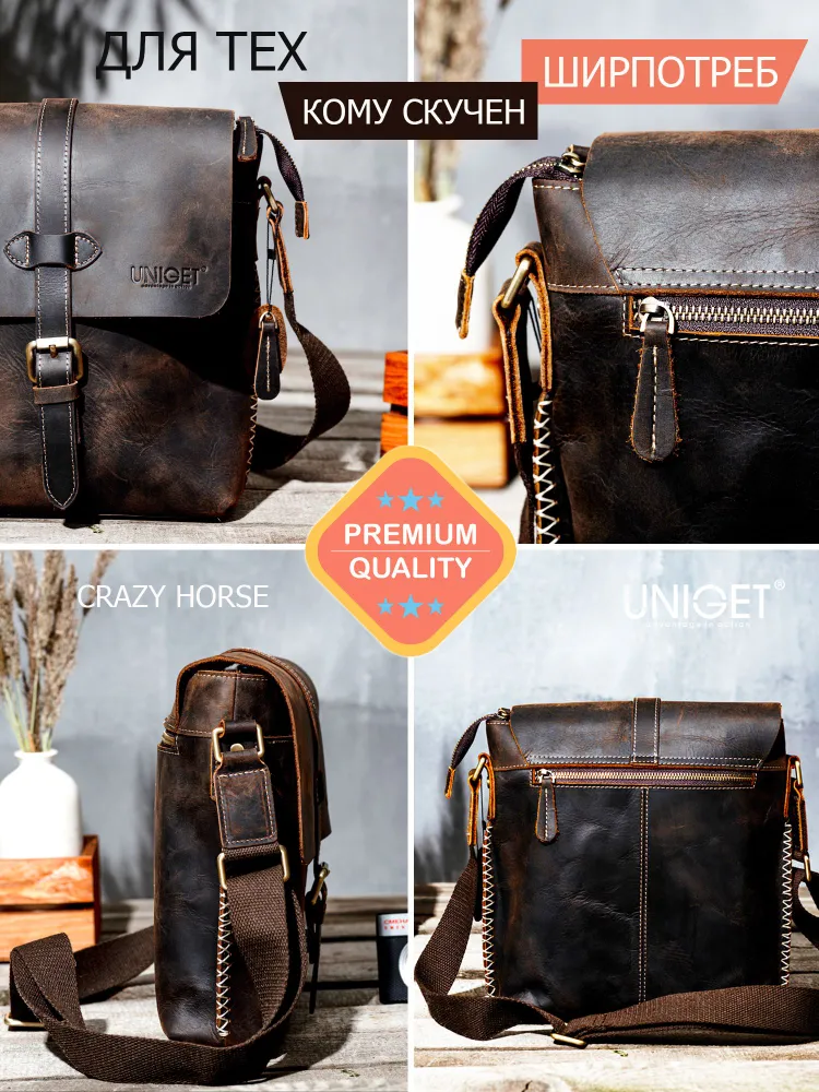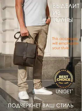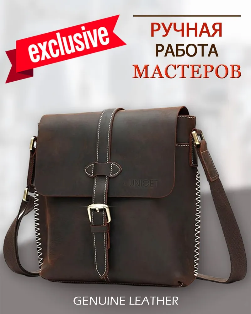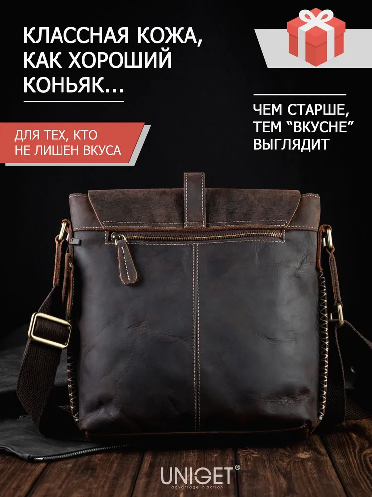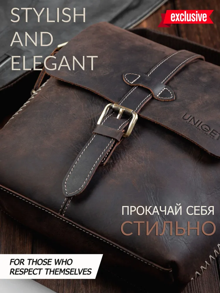Сумка из натуральной кожи UNIGET® Ищите стильную, современную и эффектную сумку через плечо? Обратите внимание на модель ручной работы из натуральной кожи UNIGET® Универсальная ✦ В меру вместительная, но не громоздкая, она понравится, как мужчинам, так и женщинам. Особенно тем, кто ценит высокое качество материала, отделки и изысканный стиль. Удобная ✦ Сумка унисекс комплектуется тканевым ремнем с кожаными вставками, который легко регулируется под любой рост. ✦Имеет множество отделений под различные аксессуары. Натуральная кожа имеет приятную бархатистую текстуру. ✦ Практична в использовании. Вы всегда сможете ее легко привести в порядок с помощью сухой или влажной чистки. Стильная ✦ Эта качественная сумка планшет для из 100% натуральной кожи высокой выделки сохраняет форму и подчеркивает статус своего владельца. Ее комфортно брать с собой не только в офис и на деловые встречи, но и для прогулок по городу и загородных поездок. Вместительная ✦ Просто укомплектуйте эту дизайнерскую сумку необходимыми вам мелочами или документами, и все необходимое всегда будет у вас под рукой. Отличный подарок ✦ Благодаря своему универсальному размеру наша модная сумка UNIGET® подходит для мужчин и женщин. Наши покупатели активно выбирают ее как для личного пользования, так и в качестве желанного подарка. ОСТЕРЕГАЙТЕСЬ ПОДДЕЛОК ПО НИЗКИМ ЦЕНАМ BEWARE OF KNOCKOFFS AT LOW PRICES! Эффектная ✦ Уникальность модели и ее hand made происхождение подчеркивает стильная строчка, выделяющаяся на фоне кожи, из которой она изготовлена. Качественная ✦ При этом, обратите внимание, качество исполнения касается также внутренней подкладки и ее фурнитуры. ✦ Плотный и при этом не маркий материал позволит вам долго и с удовольствием использовать эту брендовую сумку. Она всегда будет как новая. Поместится все! ✦ Вместительность кожаной сумки-планшета представлена на фото. Если же вам важен точный размер изделия, спешим сообщить, что в закрытом виде высота сумки составляет 30 см., при этом ширина – 29 см. Подойдет каждому ✦ Вы можете прямо сейчас измерить гаджеты и документы, которые планируете часто брать с собой и убедиться, что мужская сумка UNIGET® идеально вам подходит. Покупка, которая не разочарует Закажите ее с доставкой прямо сейчас, и уже через несколько дней стильная мужская сумка на плечо станет частью вашего стильного образа! НЕ ВСЕ СУМКИ ОДИНАКОВЫЕ, ВЫБИРАЙТЕ ЛУЧШЕЕ! UNIGET®