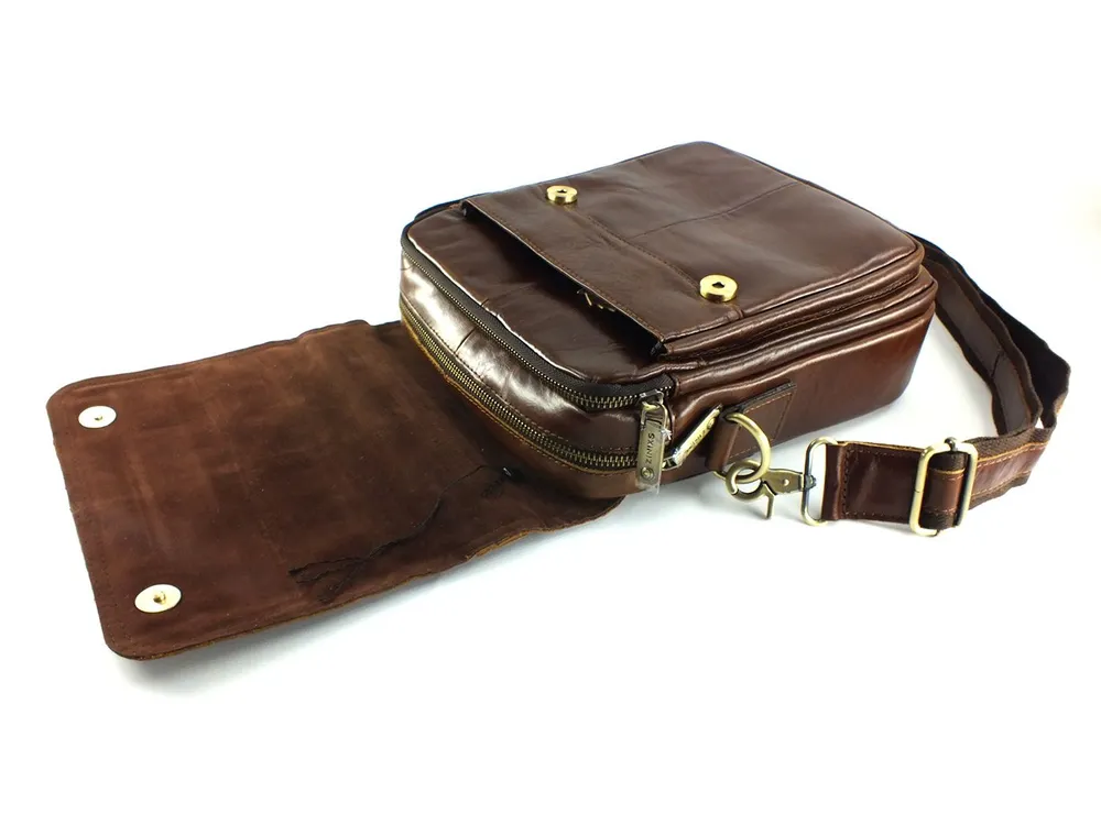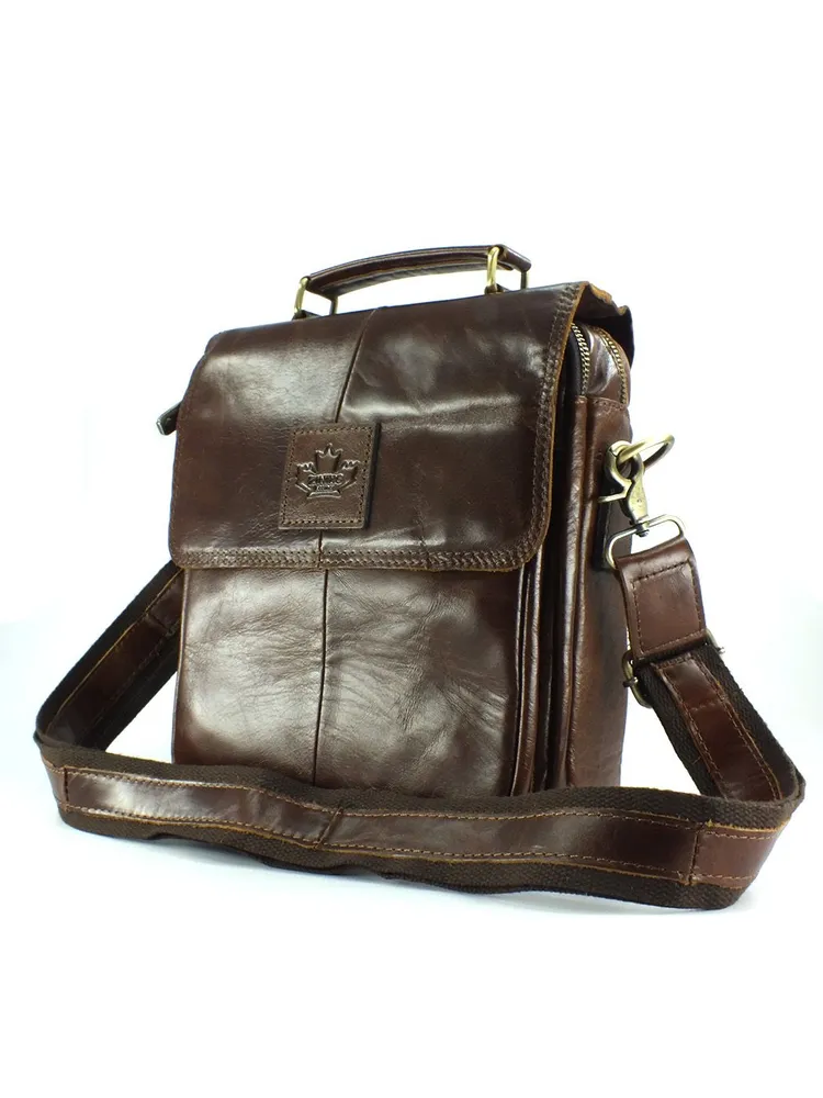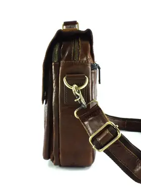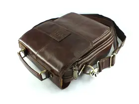 Мужская сумка из натуральной кожи коричневого цвета.Имеет два вместительных отдела на молниях. Сзади карман быстрого доступа на молнии,спереди объёмный карман под клапаном на магнитах. Кожаная ручка для переноски и регулируемый плечевой ремень. Отличное качество бренда, стильная и актуальная модель делает этот аксессуар идеальным подарком мужчине по любому поводу. Она идеально подходит для бизнеса или путешествий, как небольшая сумка для документов и вещей первой необходимости. Изготовлена на фабрике производящей продукцию под марками Znix,Znixs, Zinixs, Zinimsk, Zznick, общим логотипом которой является кленовый лист.