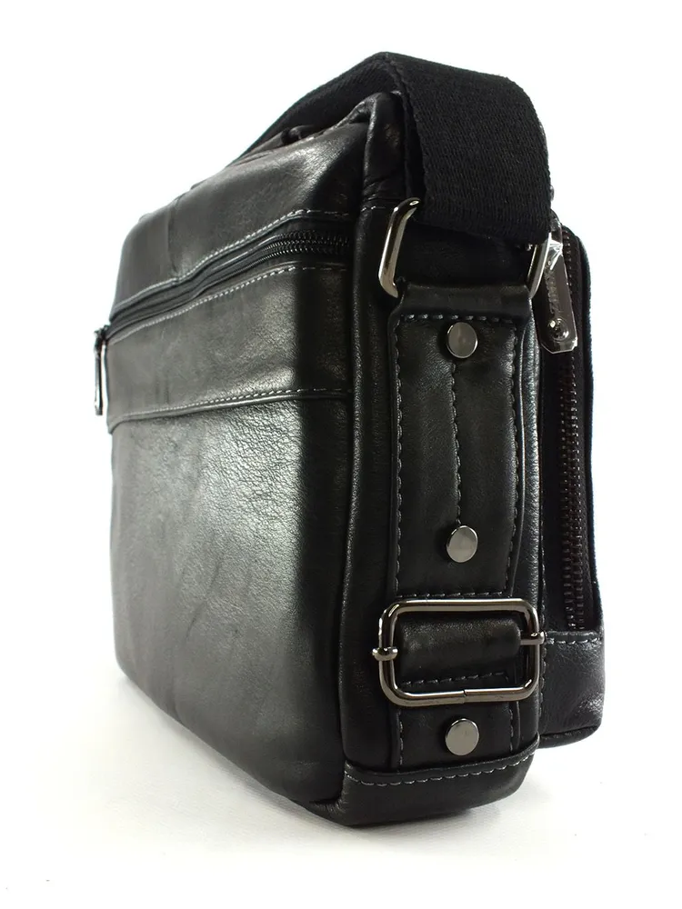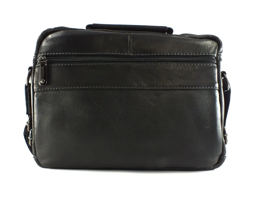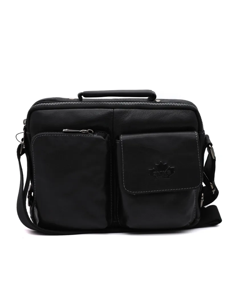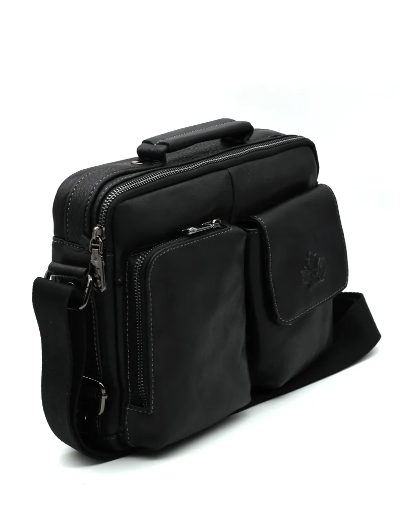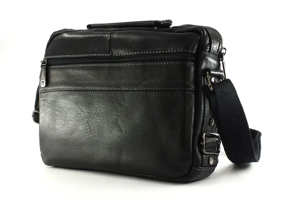 Мужская сумка из натуральной кожи имеет одно вместительное отделение, внутренний карман на молнии, два кармашка под телефон и портмоне. На задней стенке карман быстрого доступа на молнии во всю ширину сумки.С лицевой стороны два накладных объёмных кармана, один на молнии, а второй закрывается клапаном с магнитной кнопкой. Для переноски кожаная ручка и наплечный тканевый ремень. Отличное качество, стильная и актуальная модель делает этот аксессуар идеальным подарком мужчине по любому поводу. Будьте в тренде, выбирайте качество и практичность с этой вместительной и стильной барсеткой. Сумка изготовлена на фабрике производящей продукцию под марками Znixs, Zinixs,Zinimsk, Zznick общим логотипом которой является кленовый лист.