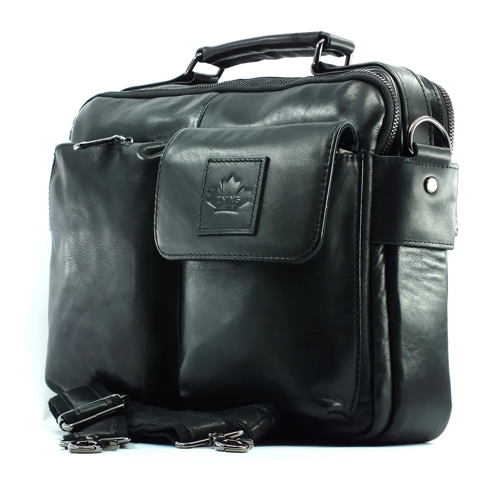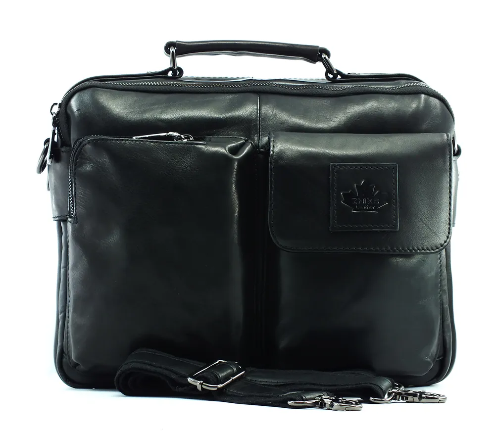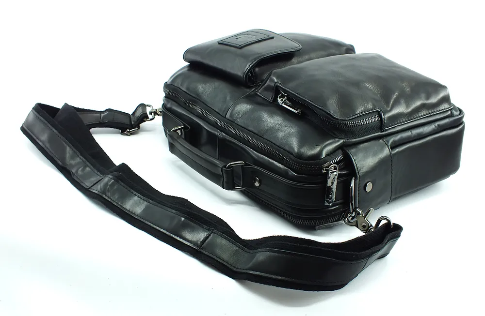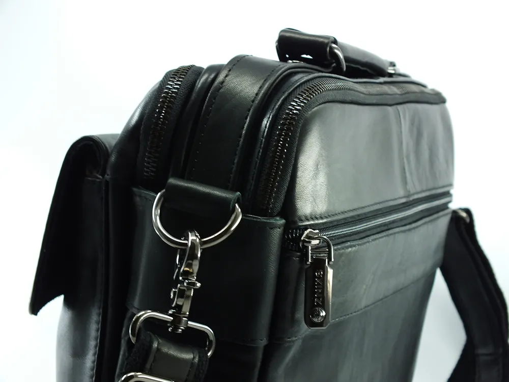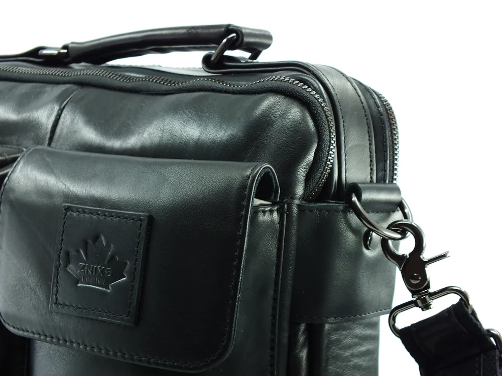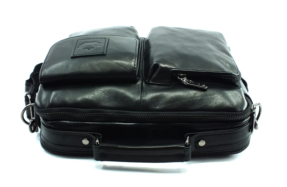 Сумка мужская из натуральной кожи, два отделения на молнии, внутри горизонтальный карман на молнии, два кармана под телефон и портмоне. На задней стенке карман на молнии во всю ширину сумки. С лицевой стороны два накладных объемных кармана, один на молнии, второй закрывается клапаном с магнитной кнопкой.Для переноски кожаная ручка и наплечный регулируемый ремень. Отличное качество бренда, стильная и актуальная модель, делают этот аксессуар идеальным подарком мужчине по любому поводу.