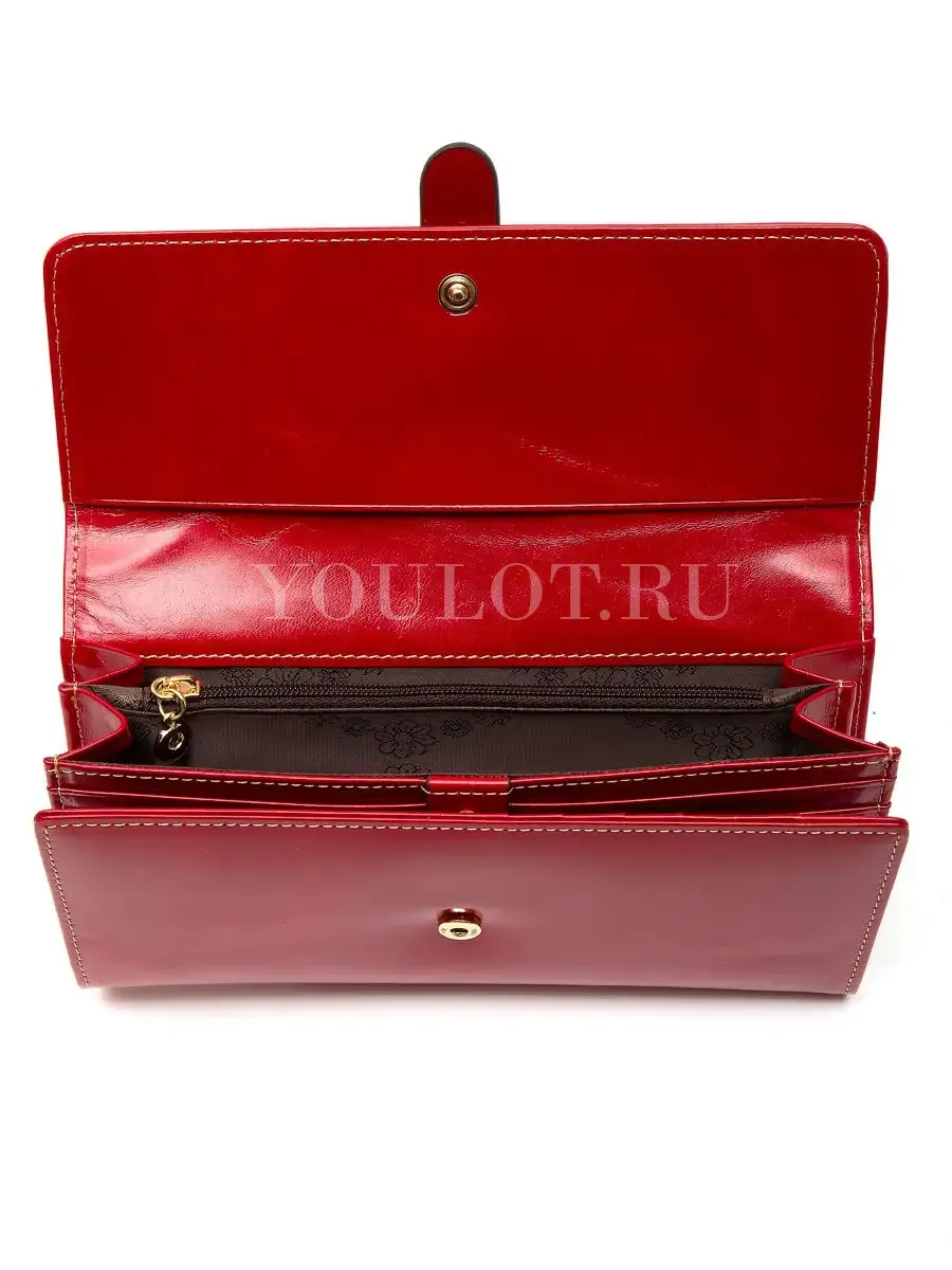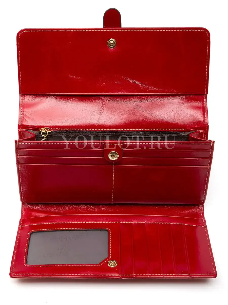 Внутри расположены два вместительных отделения для купюр, одно из которых оснащено молнией, 11 карманов для пластиковых карт, дополнительный прозрачный карман для документов или фотографий, а также несколько функциональных секций для мелочей — всё продумано для удобного хранения финансов и важных документов. Дизайн выполнен в насыщенном красном оттенке, который придаёт аксессуару выразительность и легко сочетается с любым стилем одежды.