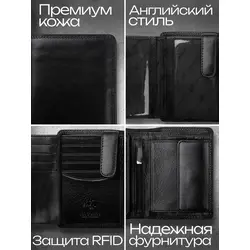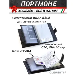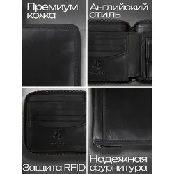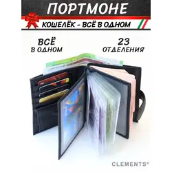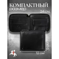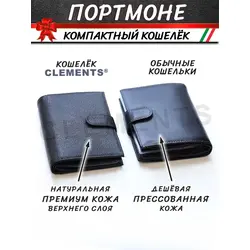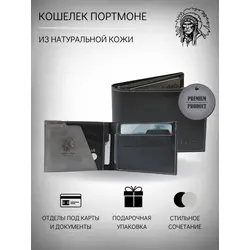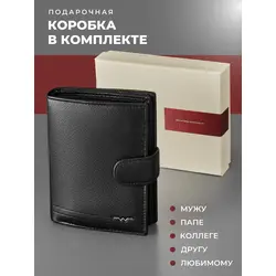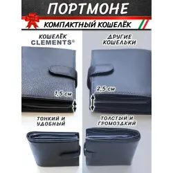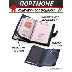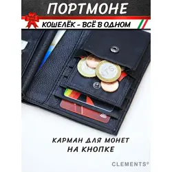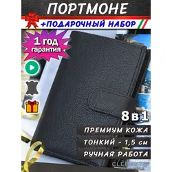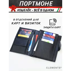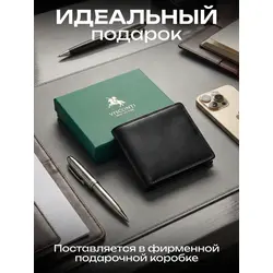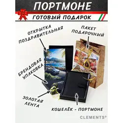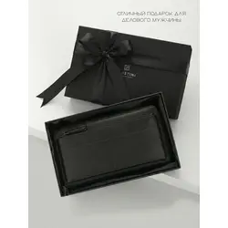 Портмоне мужское из натуральной кожи + подарочный набор, чёрный - Clements