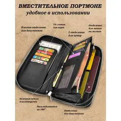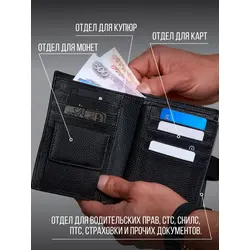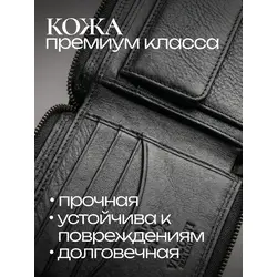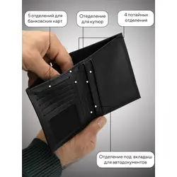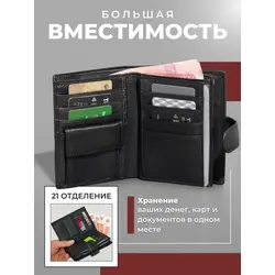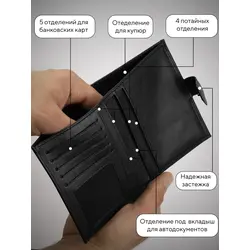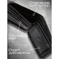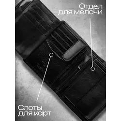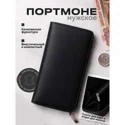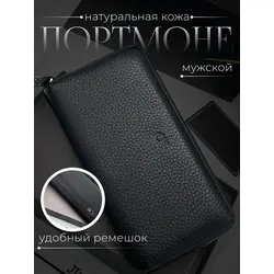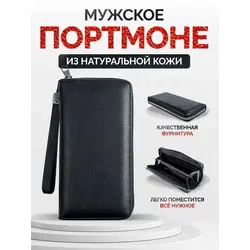 Портмоне мужское из натуральной кожи / Кошелек мужской чёрный