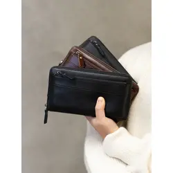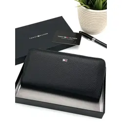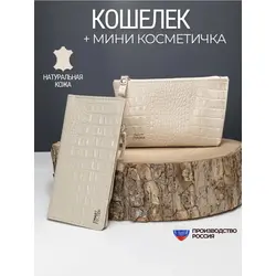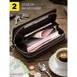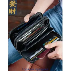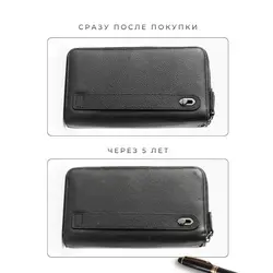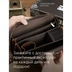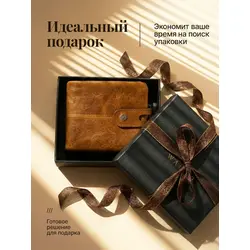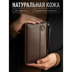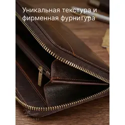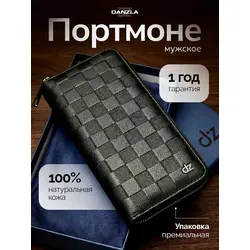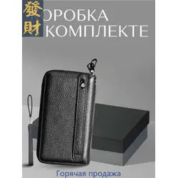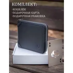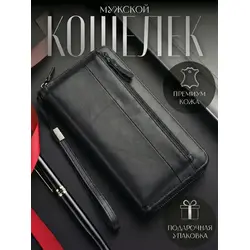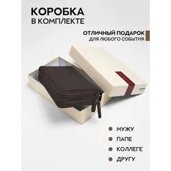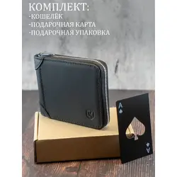 Мужской кошелек из натуральной кожи на молнии бумажник в подарочной коробке