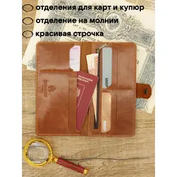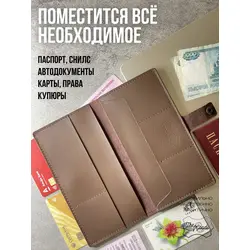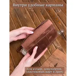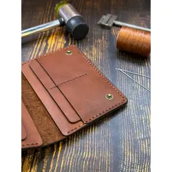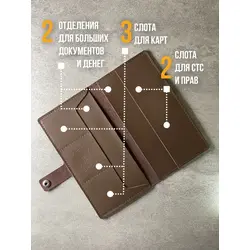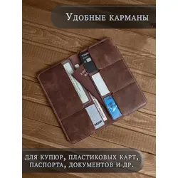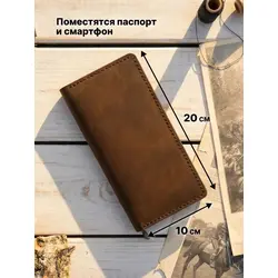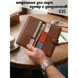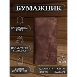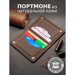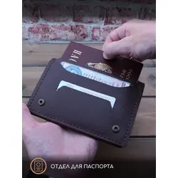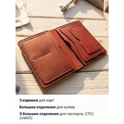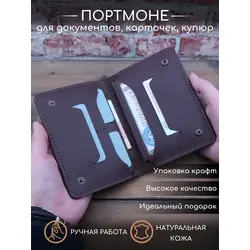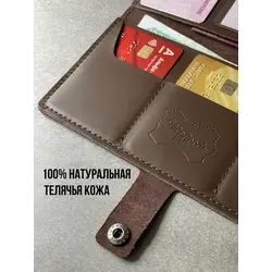 Портмоне мужское / женское из натуральной кожи, ручная работа. Для автодокументов, для паспорта, для карт и купюр. Коричневый.
