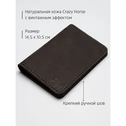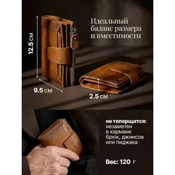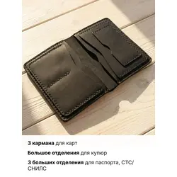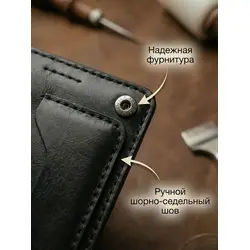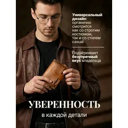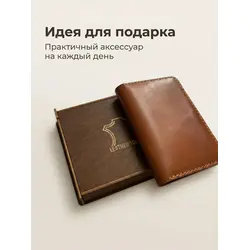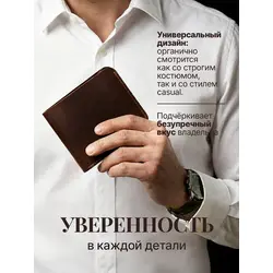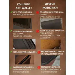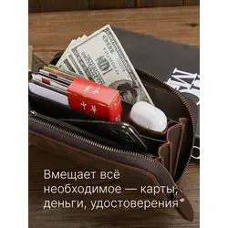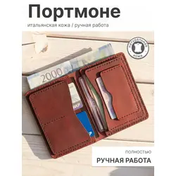 Портмоне мужское Leather Touch из натуральной кожи ручной работы / кошелек для документов, карт и денег / компактное кожаное портмоне