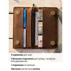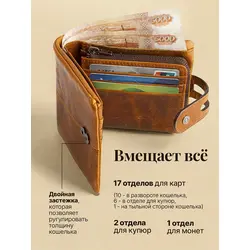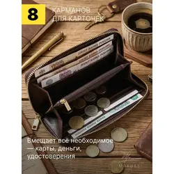 Мужской кошелек из натуральной кожи ручной работы с монетницей