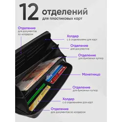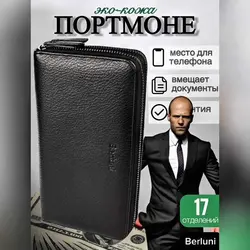 Портмоне мужское для документов, карт и денег, на молнии, Berluni