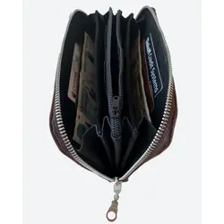 Мужской кошелек из натуральной кожи портмоне на молнии Lemoni темно-коричневый мрамор KAZA