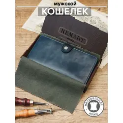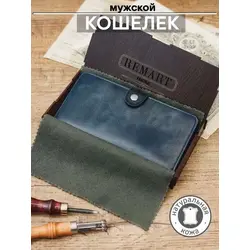 Портмоне мужское Yuzhanini из натуральной кожи, синий.