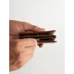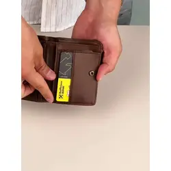 Мужской маленький кошелек из натуральной кожи бумажник KAZA Laoki темно-коричневый мрамор